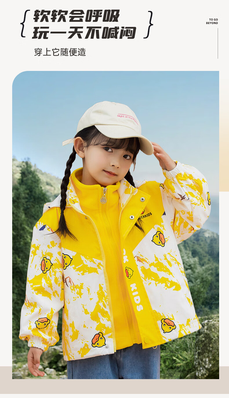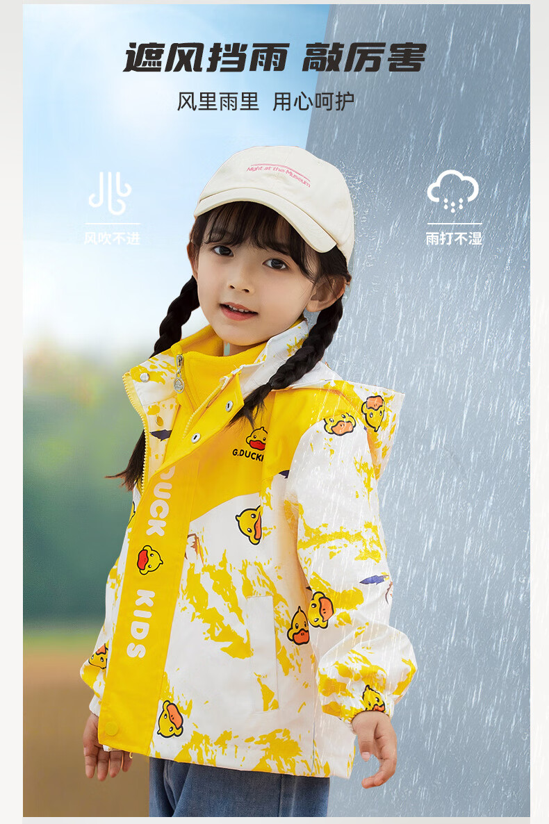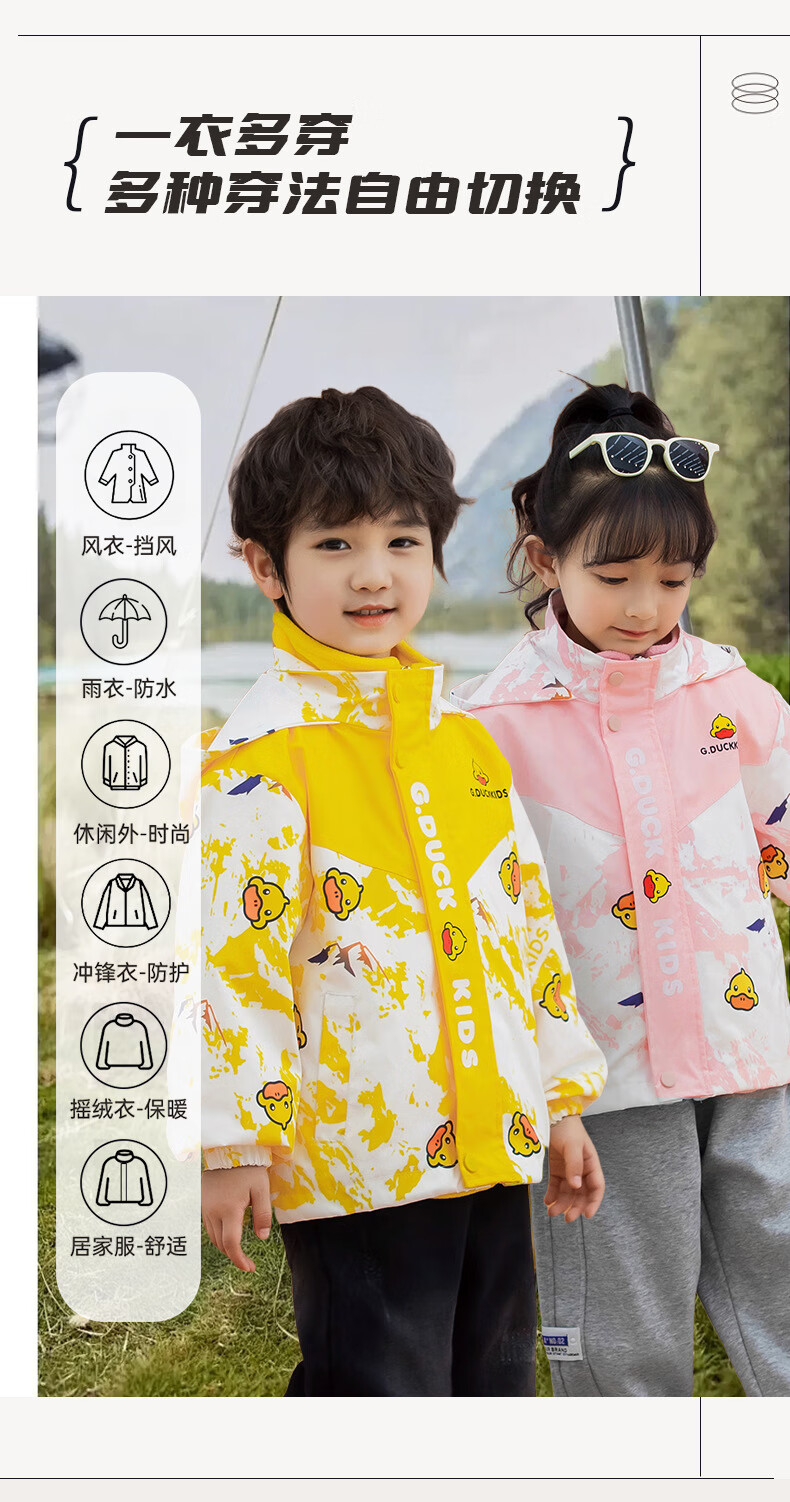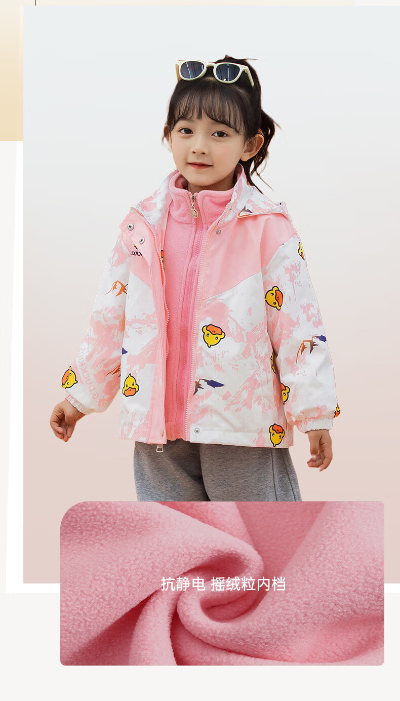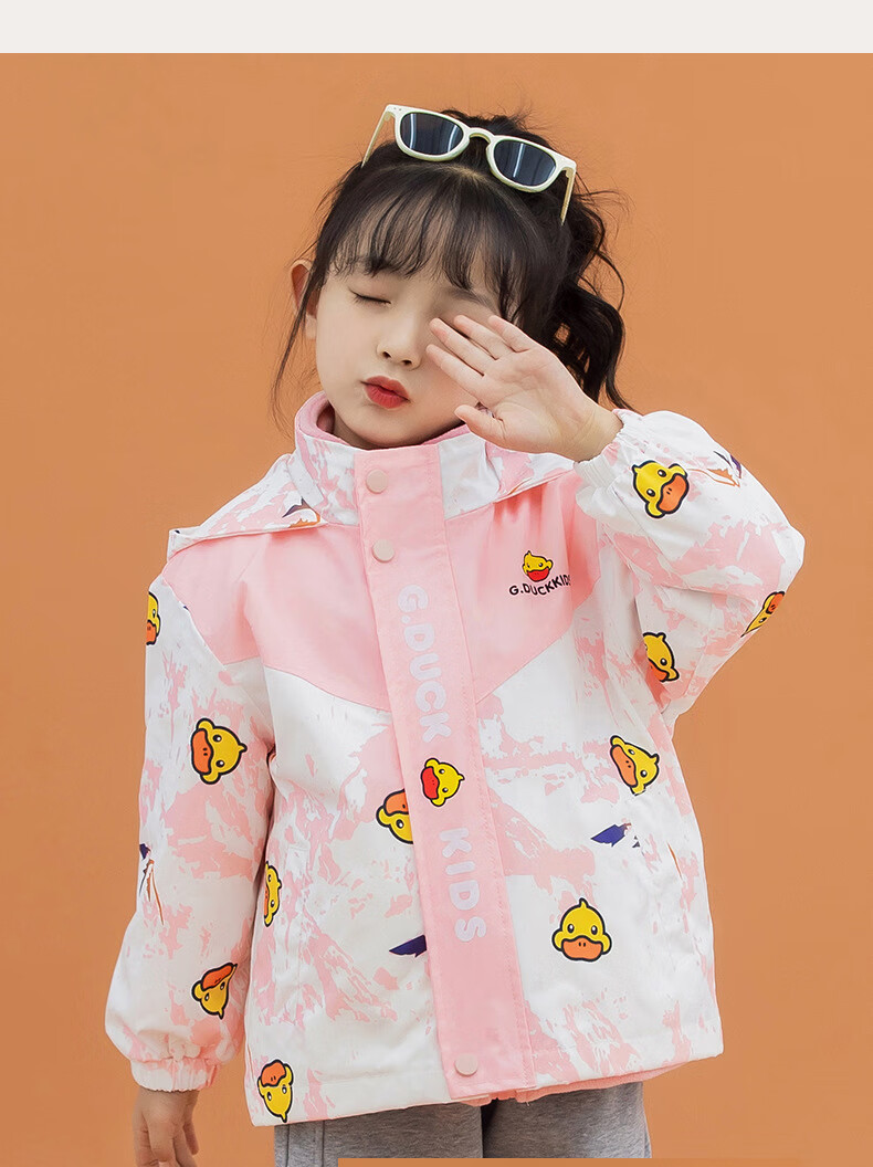 G.duck Little Yellow Duck Children's Jacket Two-piece Set 2025 Spring New Three-in-One Detachable Hooded Jacket for Boys and Girls F016 Pink Padded Jacket + Down Liner + 100 Recommended height is about 90cm