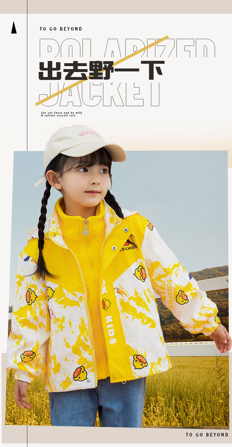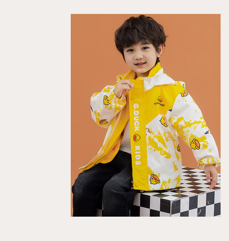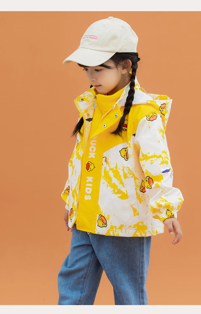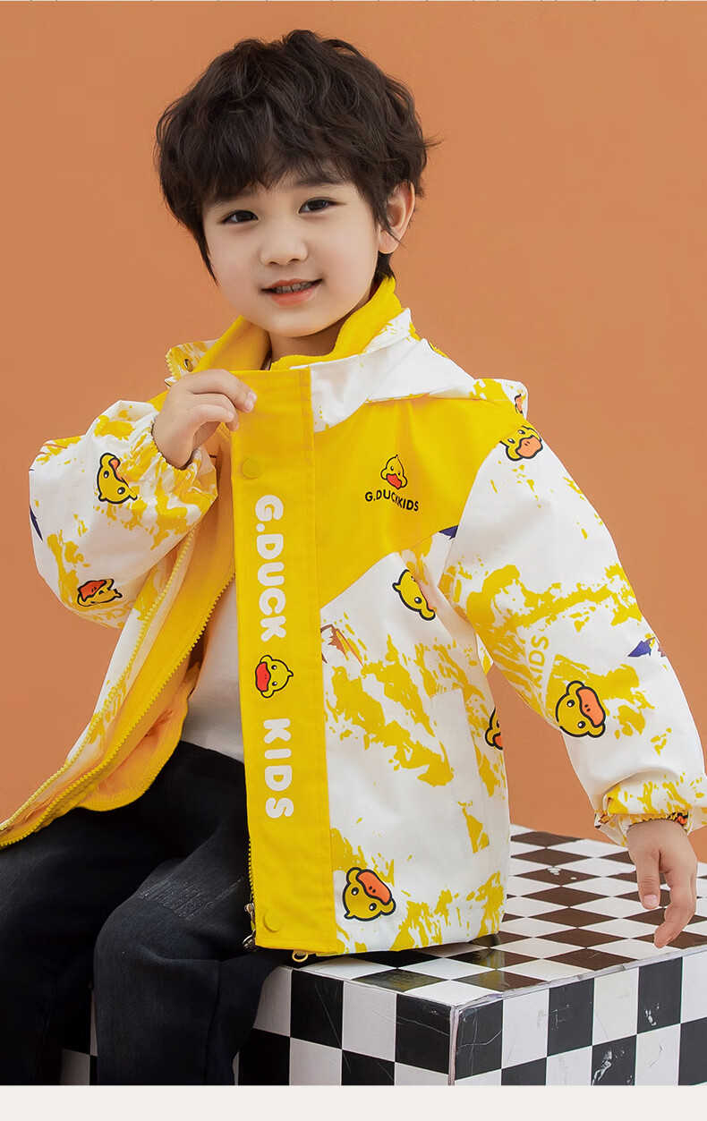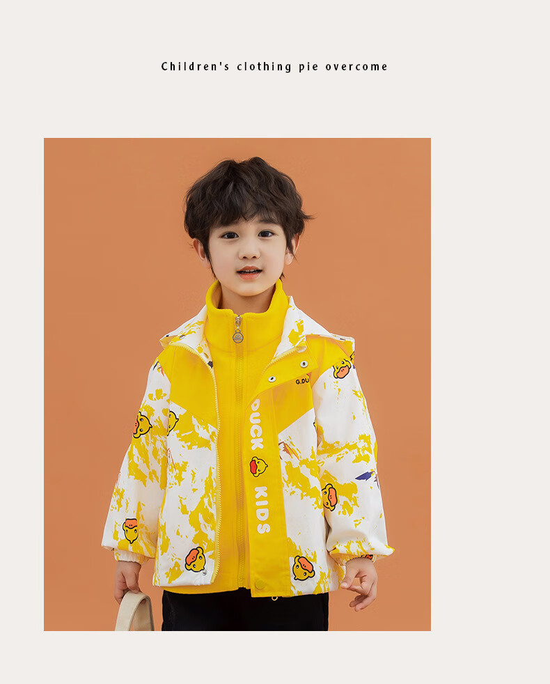 G.duck Little Yellow Duck Children's Jacket Two-piece Set 2025 Spring New Three-in-One Detachable Hooded Jacket for Boys and Girls F016 Pink Padded Jacket + Down Liner + 100 Recommended height is about 90cm
