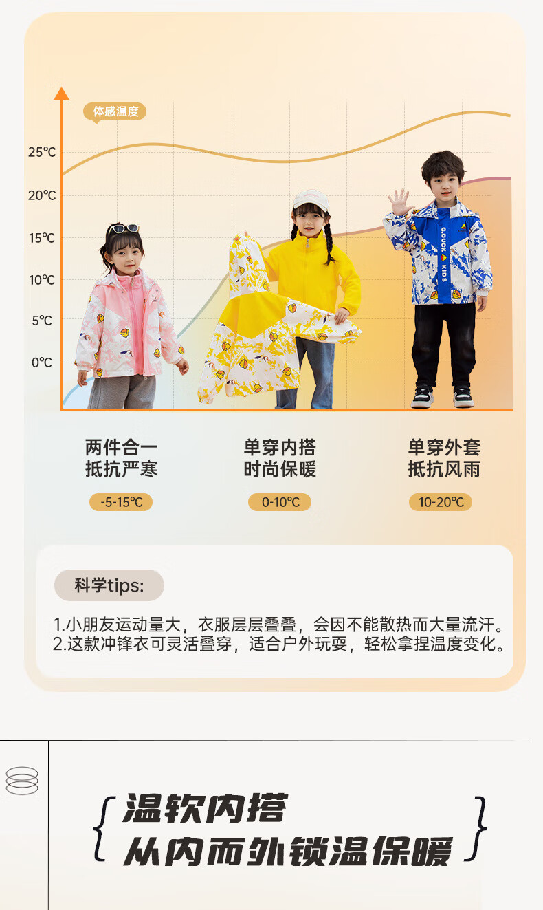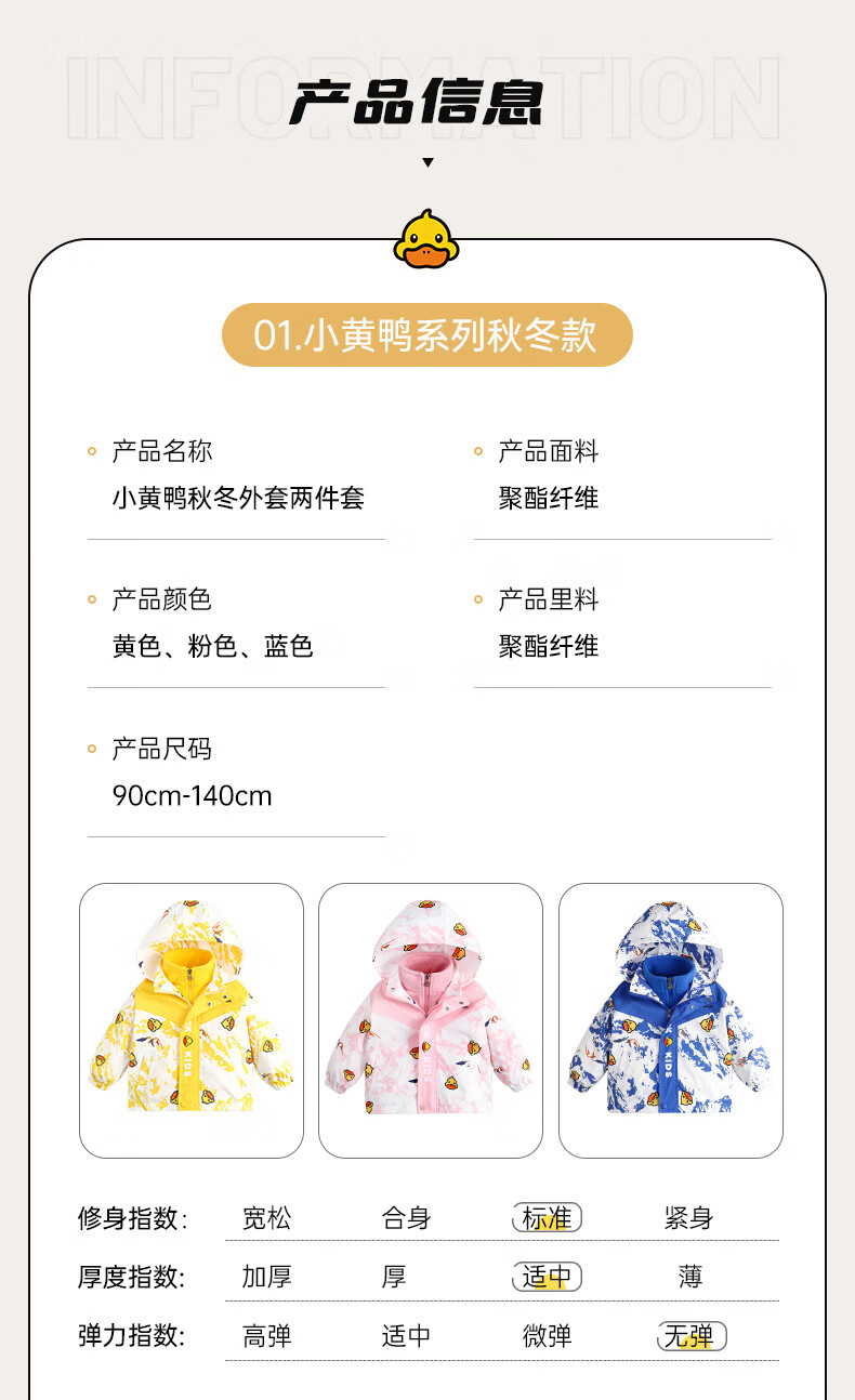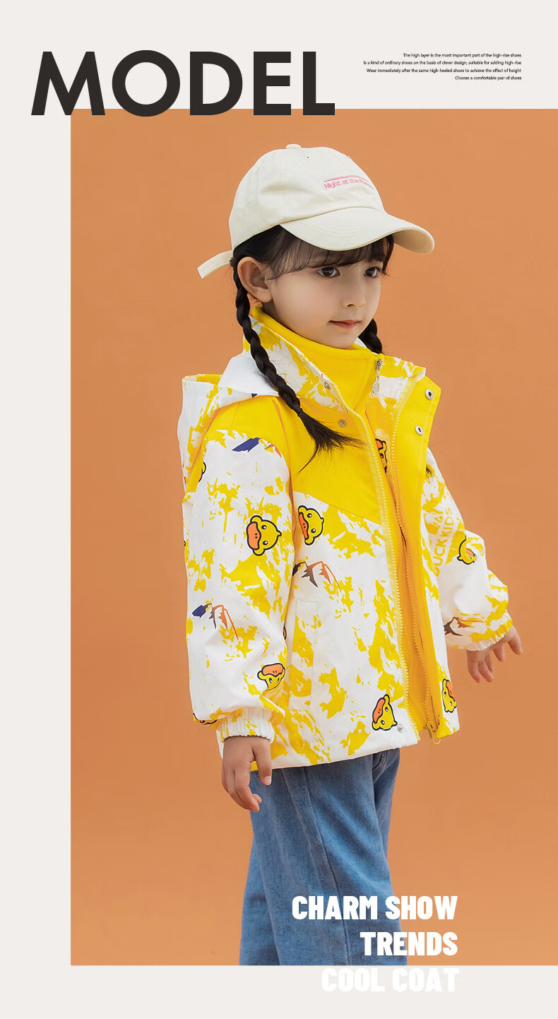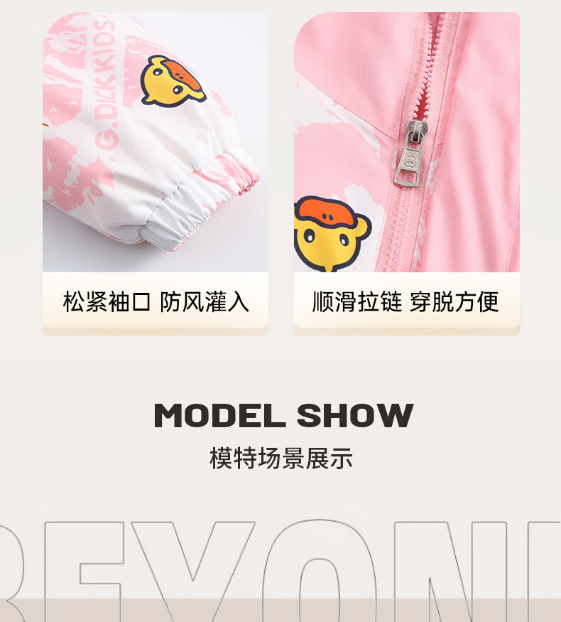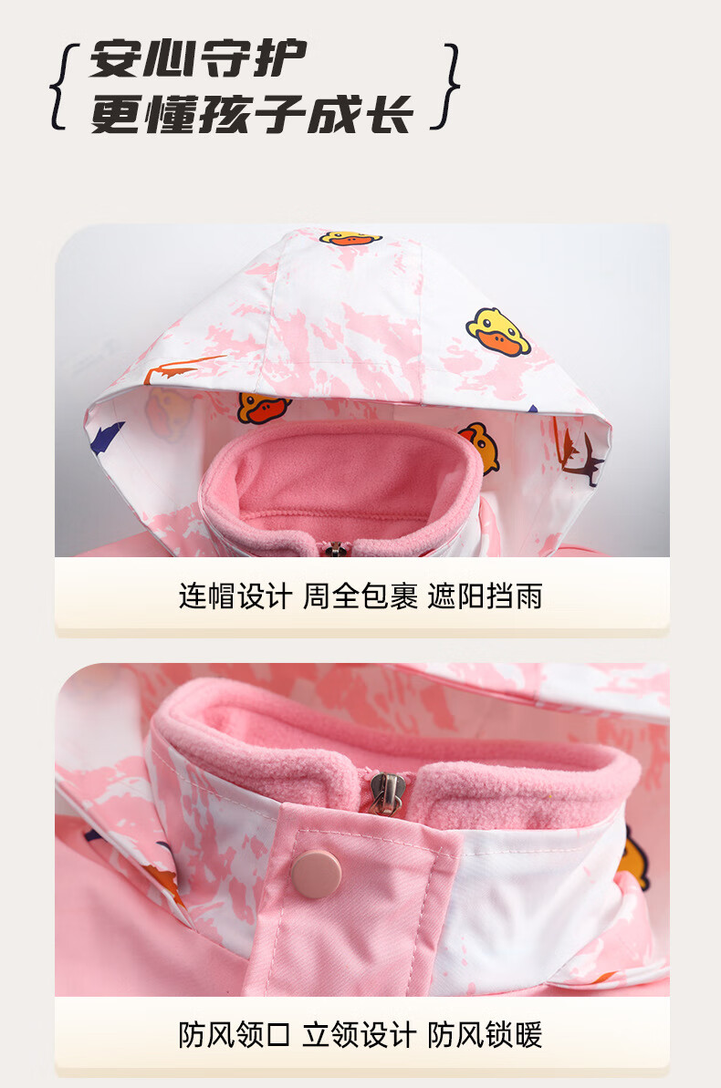 G.duck Little Yellow Duck Children's Jacket Two-piece Set 2025 Spring New Three-in-One Detachable Hooded Jacket for Boys and Girls F016 Pink Padded Jacket + Down Liner + 100 Recommended height is about 90cm