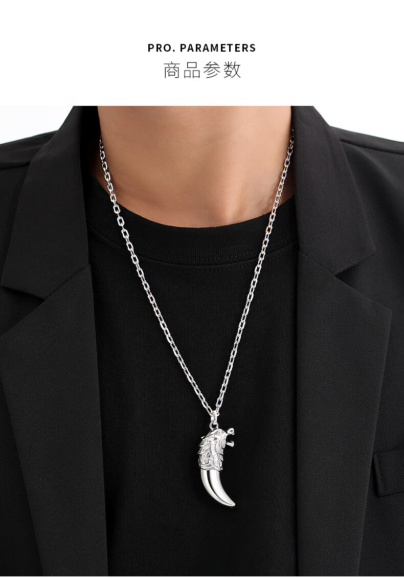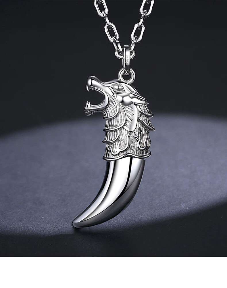 Miss JuJu platinum wolf head pendant for men, fashionable pt950 platinum wolf tooth pendant, domineering and trendy men's jewelry, weighs 29-31 grams + comes with leather cord