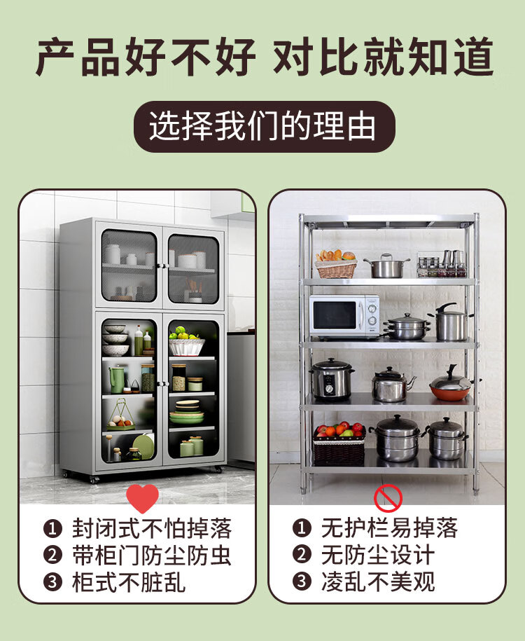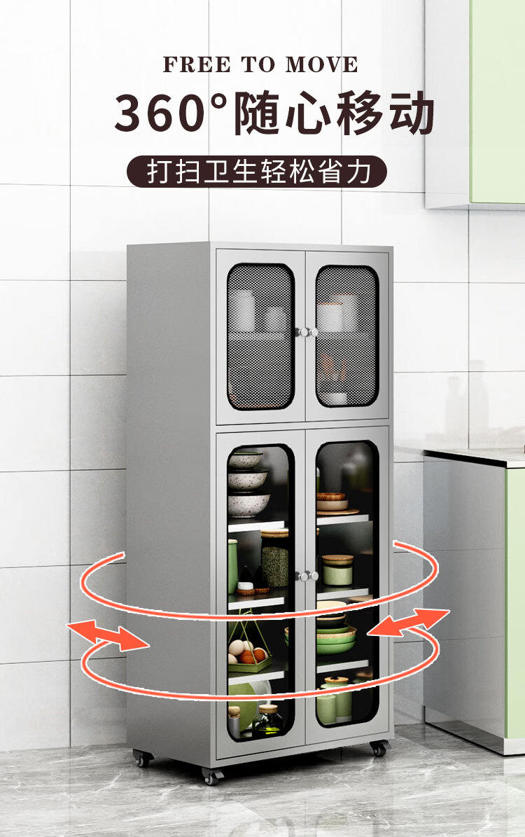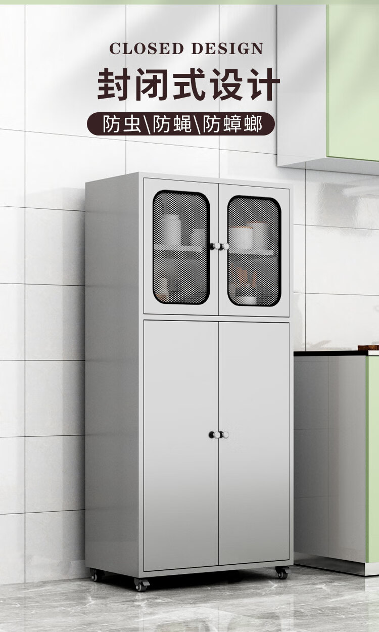 Ling Yuxun customized wholesale 304 stainless steel kitchen cupboard multi-functional kitchen storage cabinet storage kitchen cabinet rural household pot 201 stainless steel door 700 wide double door