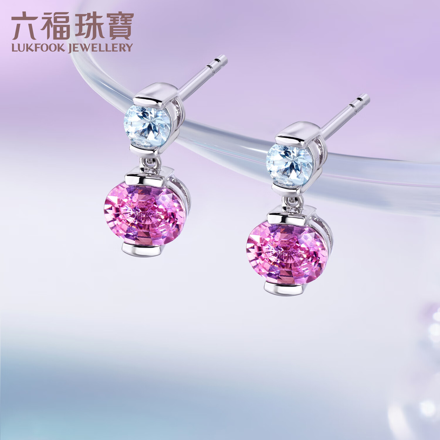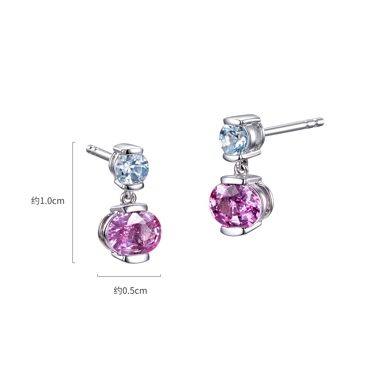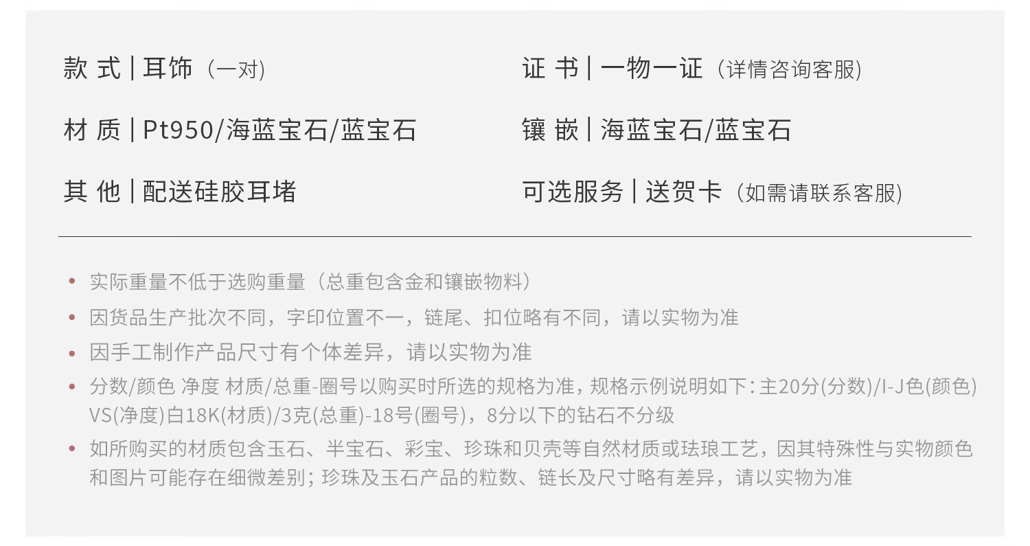 Lukfook Jewelry Platinum 950 Small Cherry Aquamarine Platinum Stud Earrings FDJ0004DS Total Weight 1.98g Comes with Silicone Ear Plugs