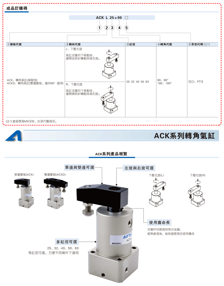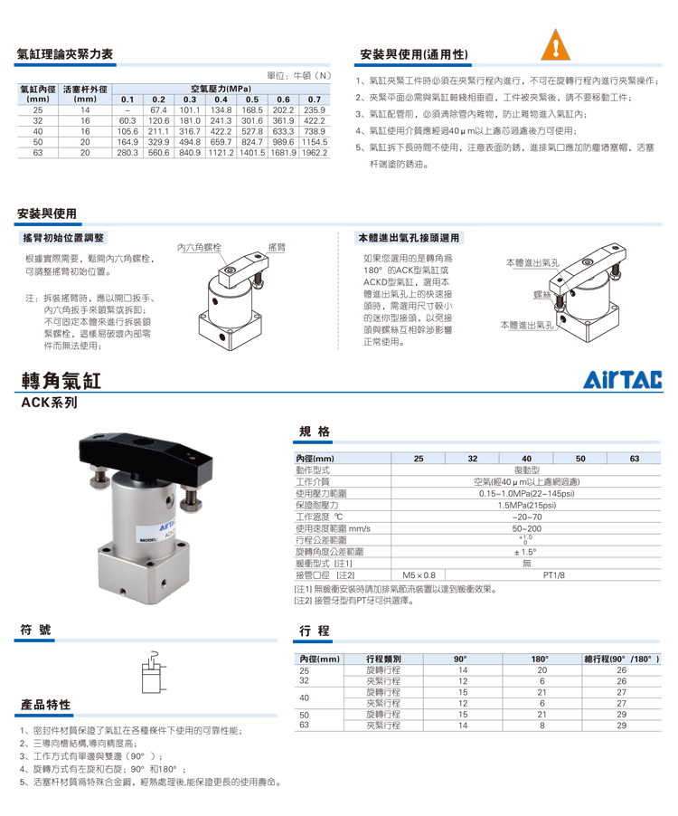 Airtac ACK corner downward pressure rotating cylinder ACKL/ACKR25/32/40/50/63X90 left-hand right-hand rotation ACKR25X90 right-hand rotation 90