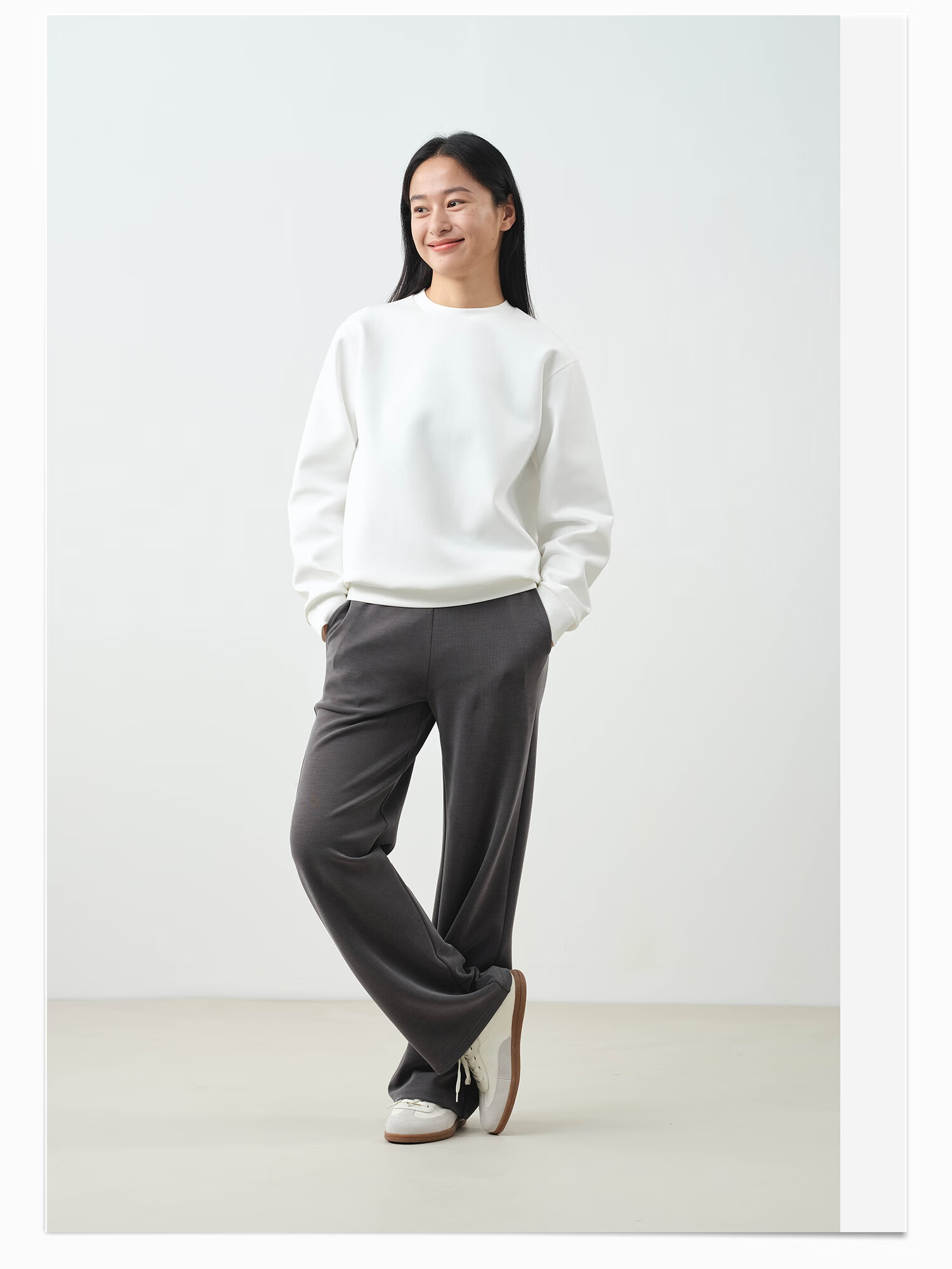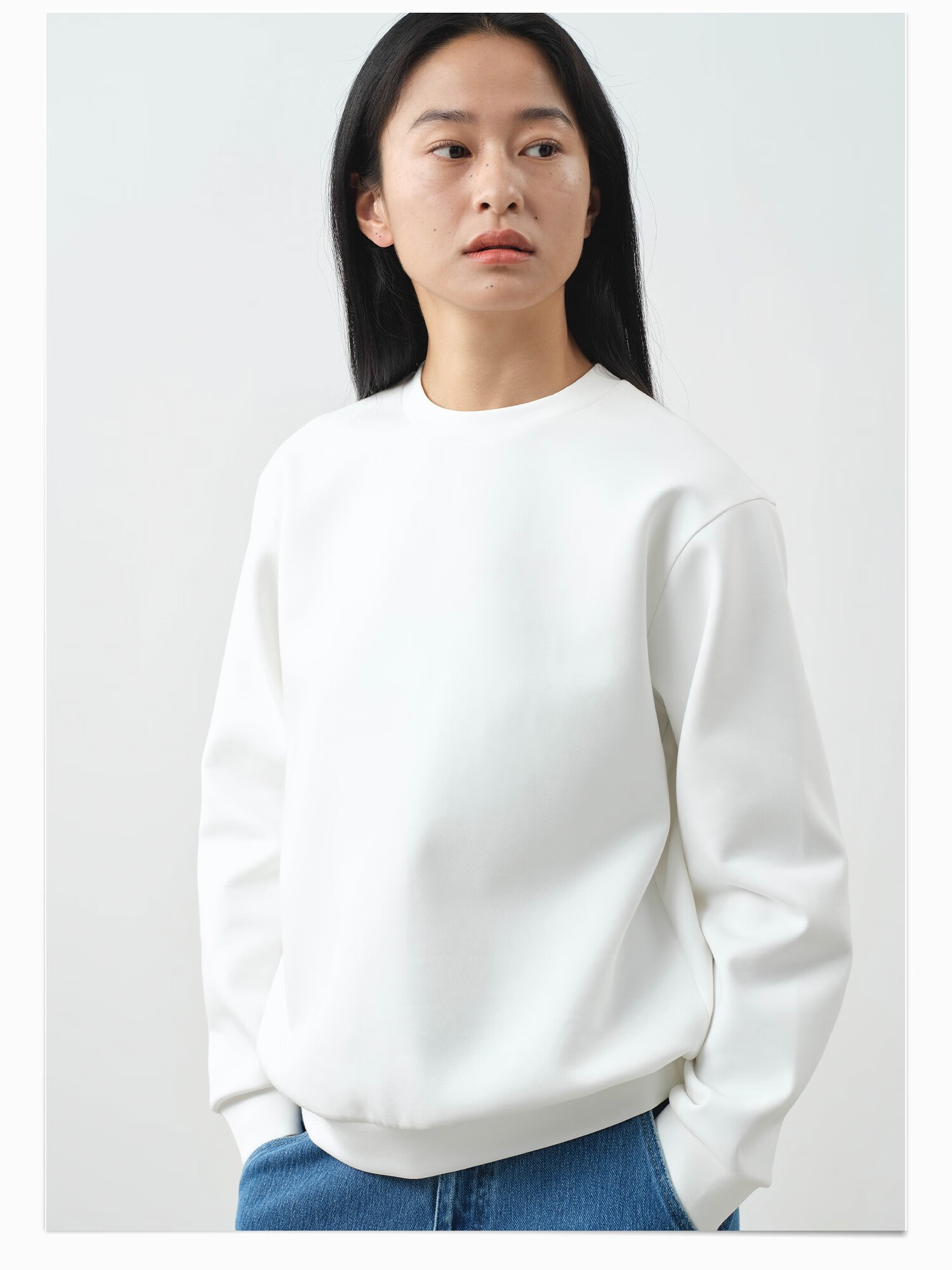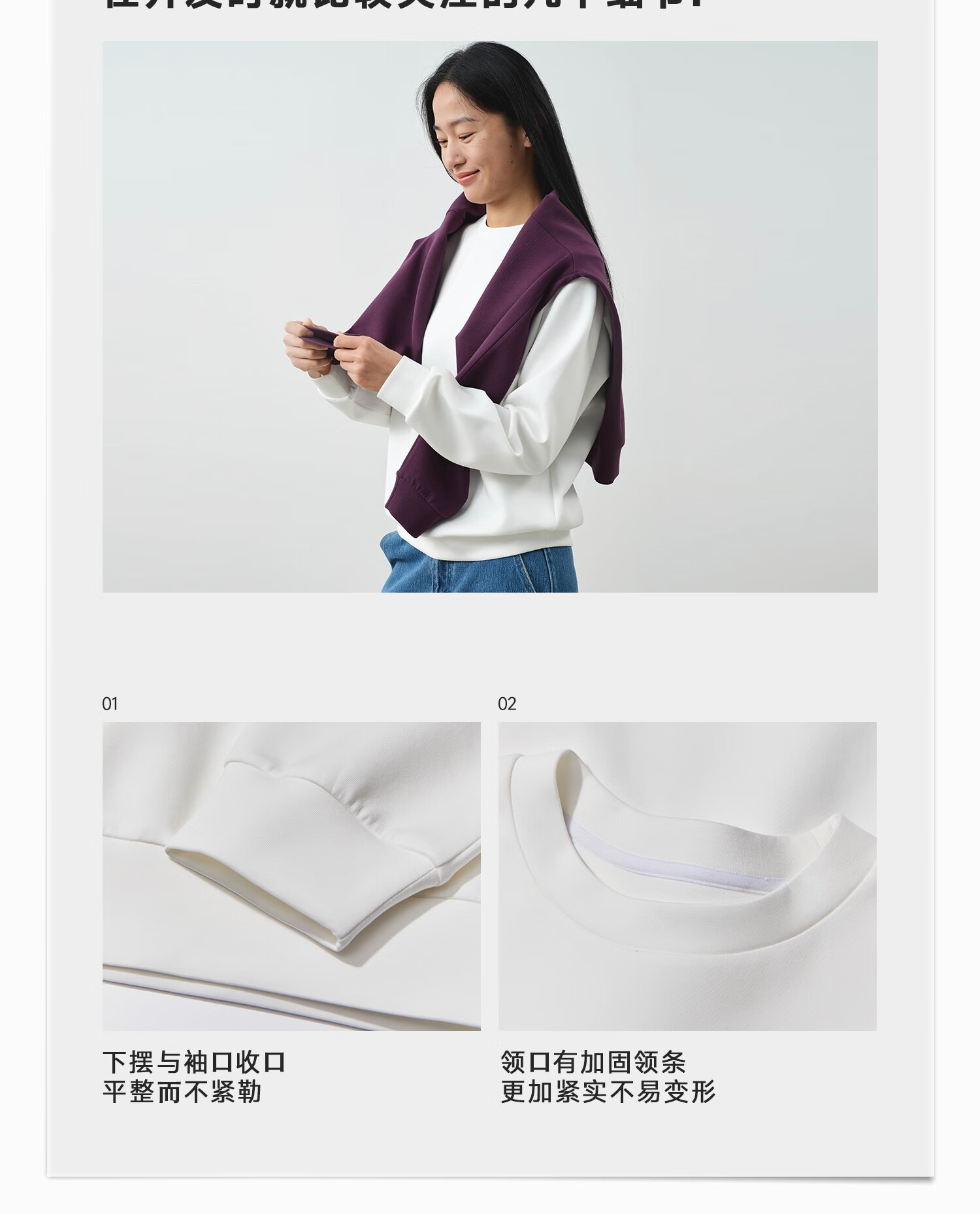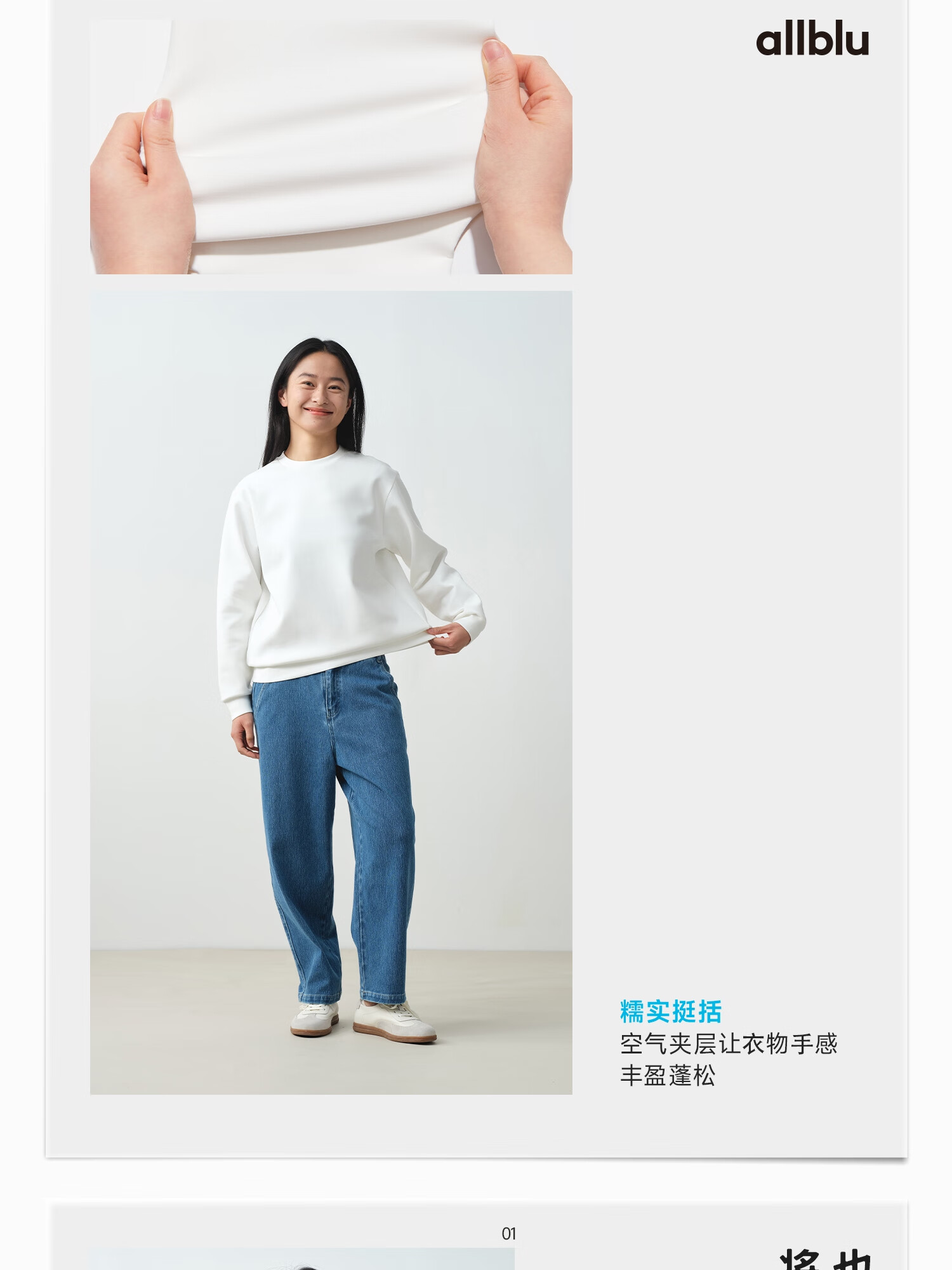 ALLBLU parent-child women's crisp and slim flat air layer sweatshirt 25 autumn and winter easy to take care of bright white 170