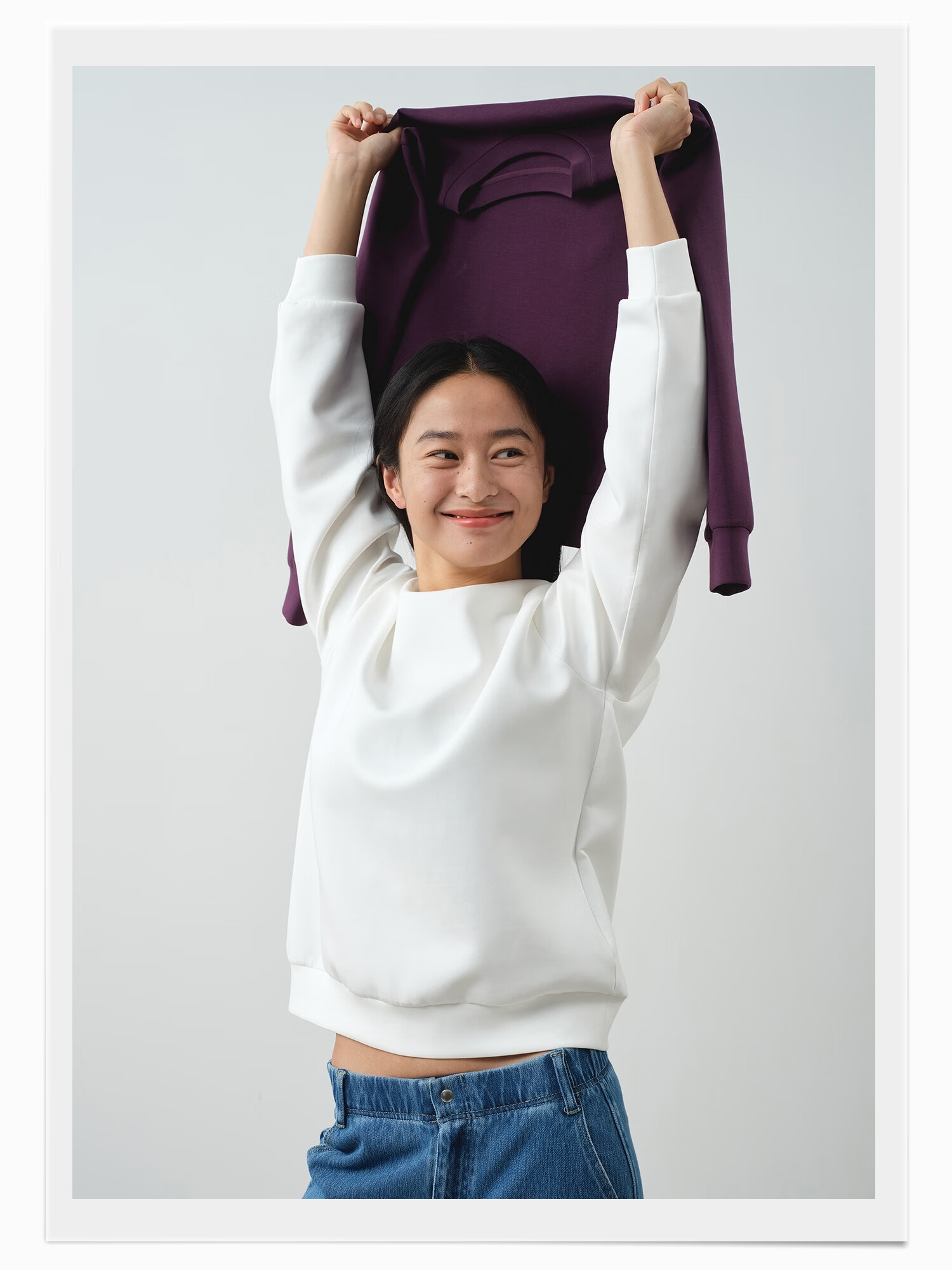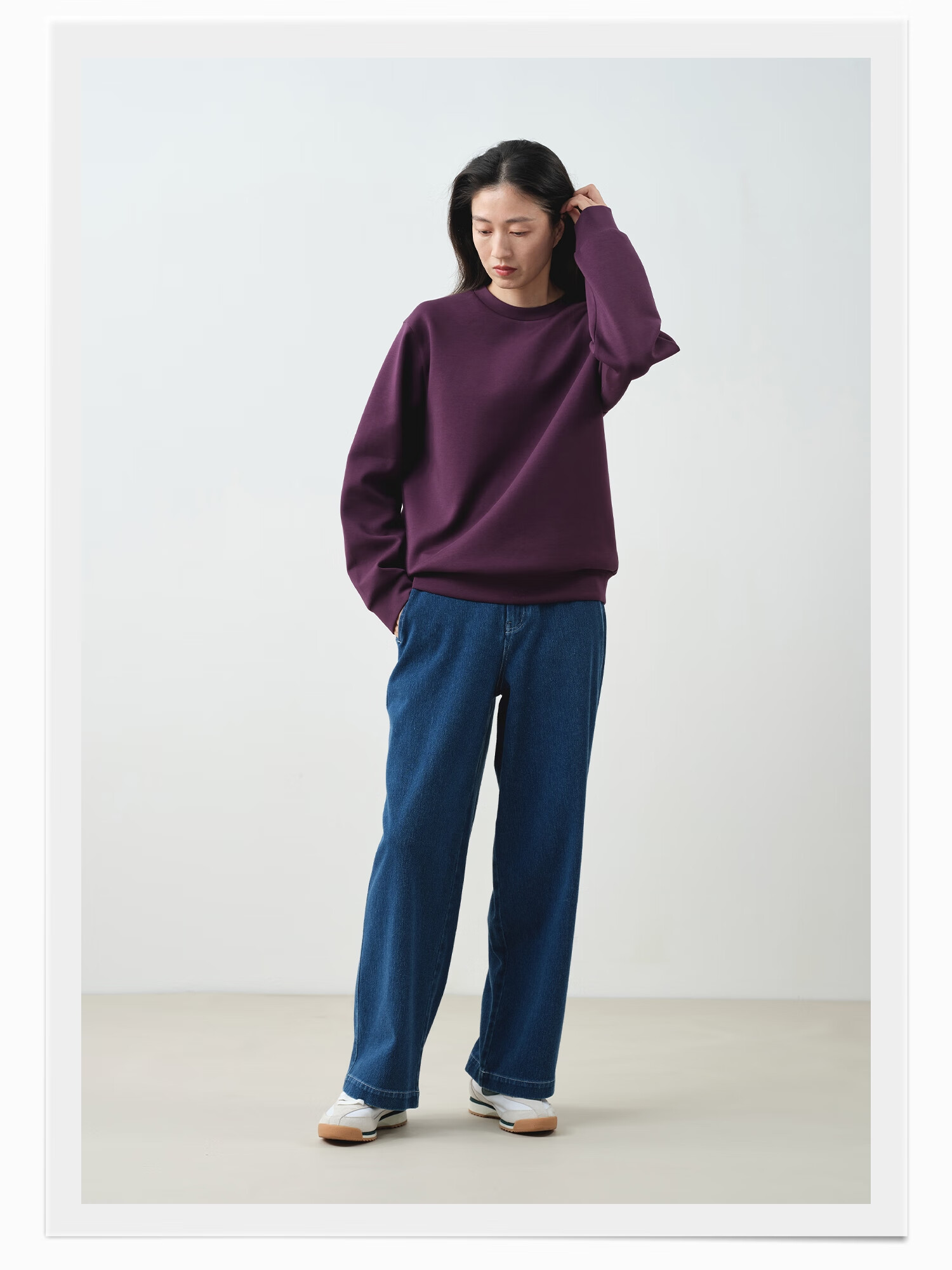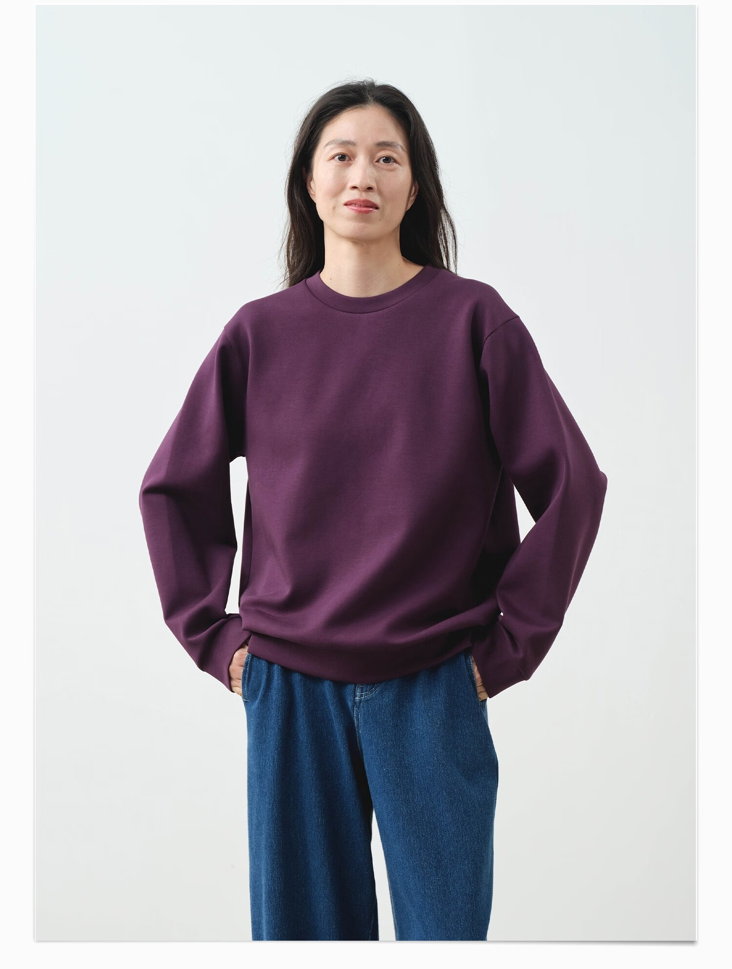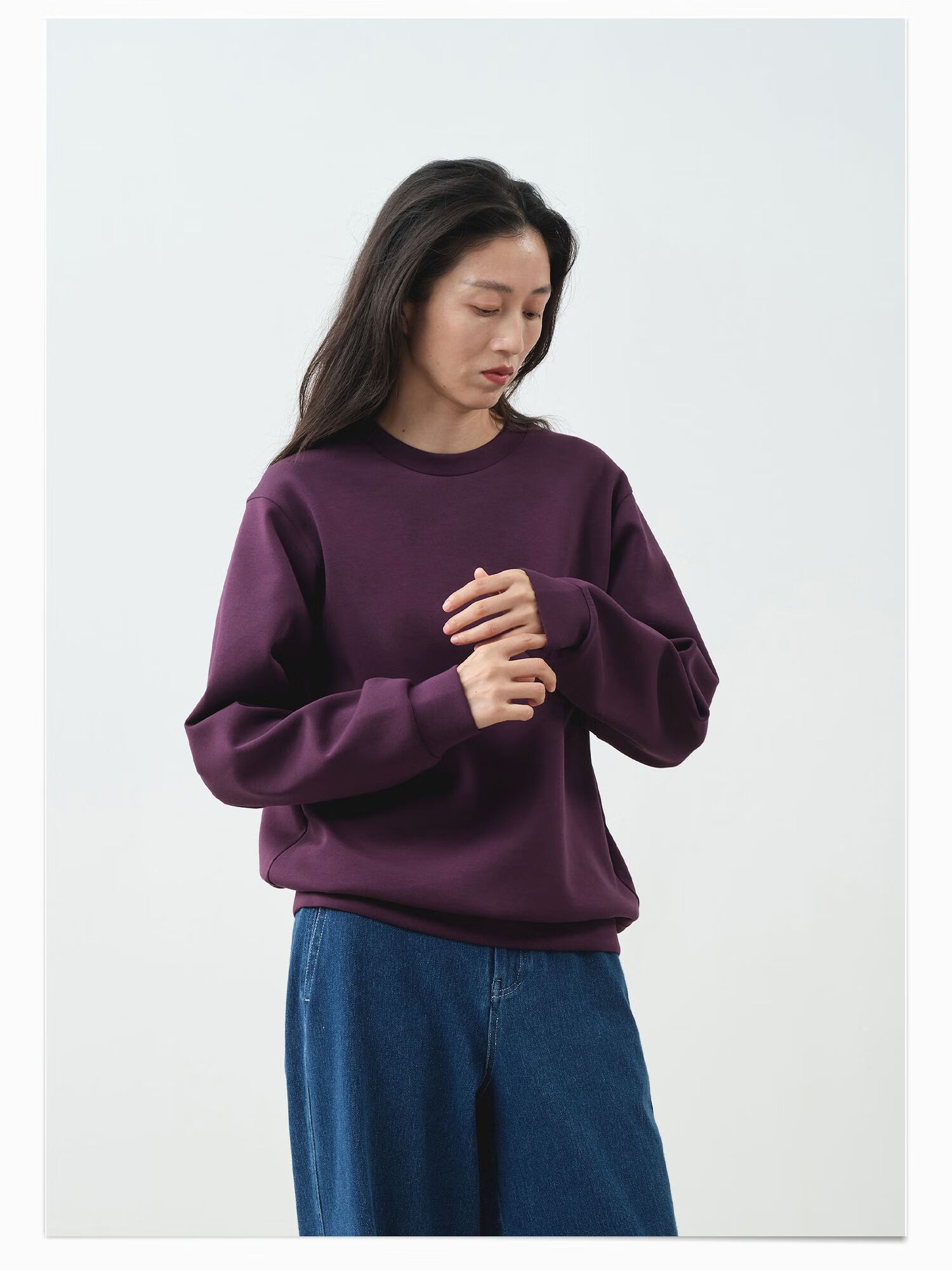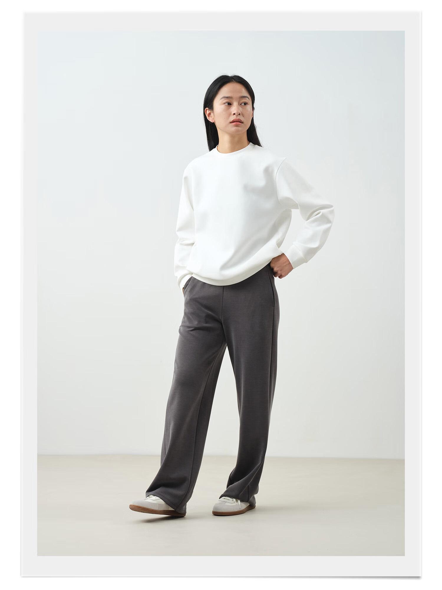 ALLBLU parent-child women's crisp and slim flat air layer sweatshirt 25 autumn and winter easy to take care of bright white 170