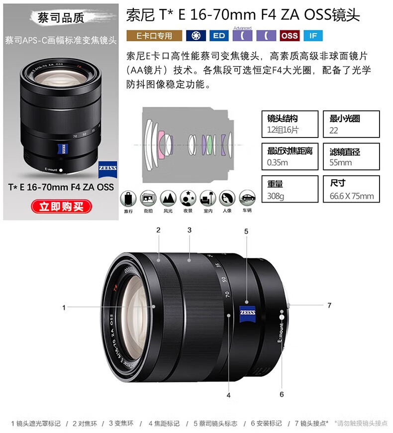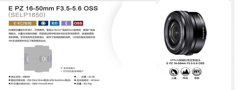 Sony (SONY) aps-c half-frame mirrorless E-mount zoom fixed focus lens a6400 a6700 zve10 lens E 16-50mm second generation black disassembled version official standard without UV/fun filters and other accessories
