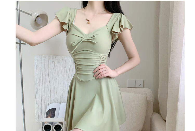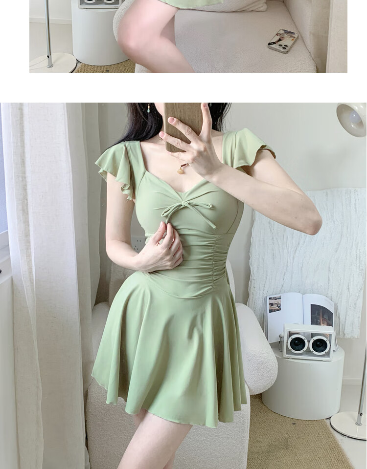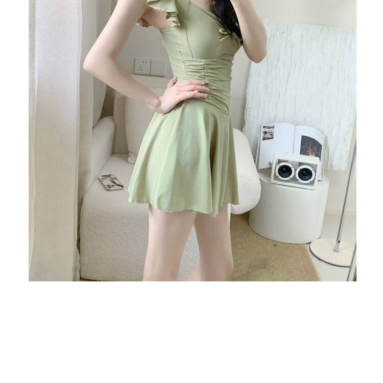 Shiguangli swimsuit women's 2025 new one-piece conservative skirt avocado green student high-end belly-covering slimming hot spring swimsuit green one size fits all recommended 80-115 Jin Jin equals 0.5 kg
