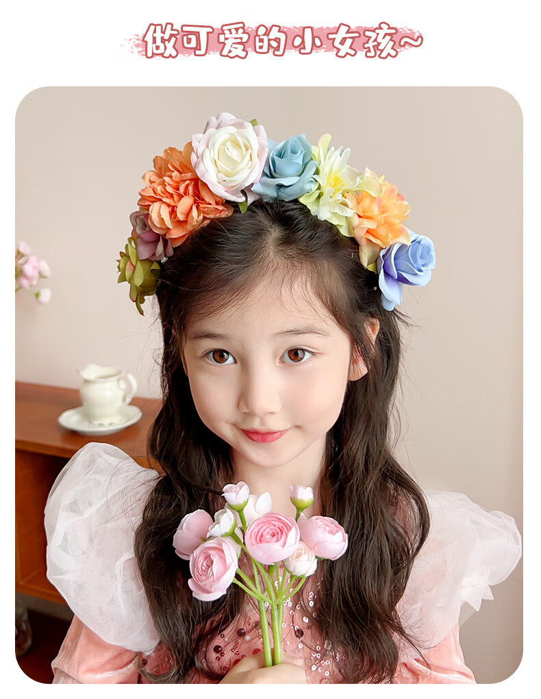 Daiyan children's imitation hairpin flower headband, flower headband, ethnic style girl's Hanfu garland hair accessory, girl's hairpin flower fairy garland, hairpin flower headband - 1 pack (random color)