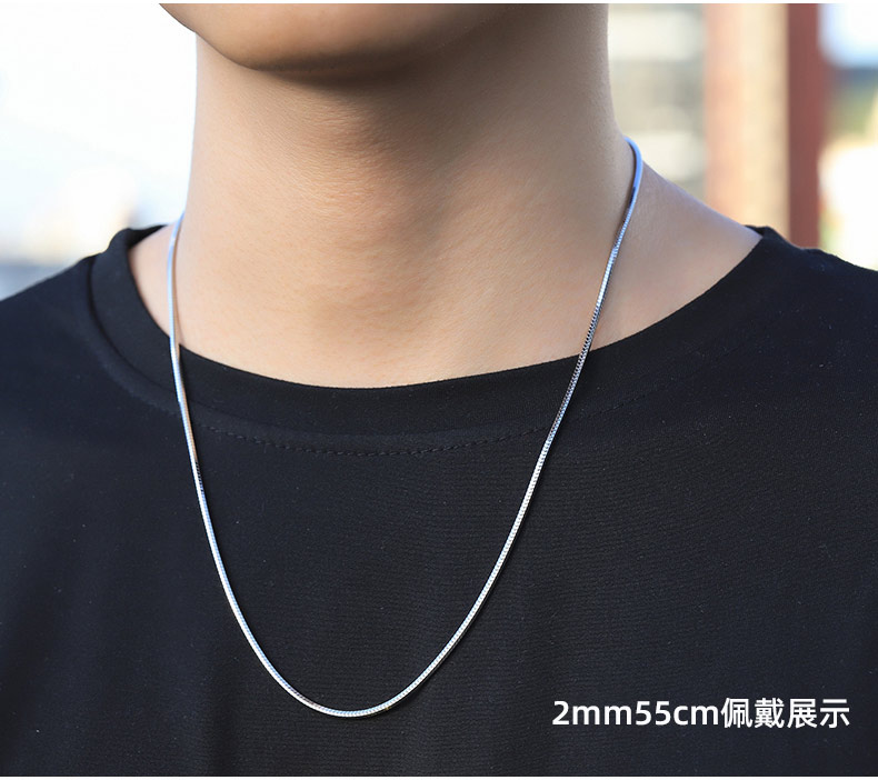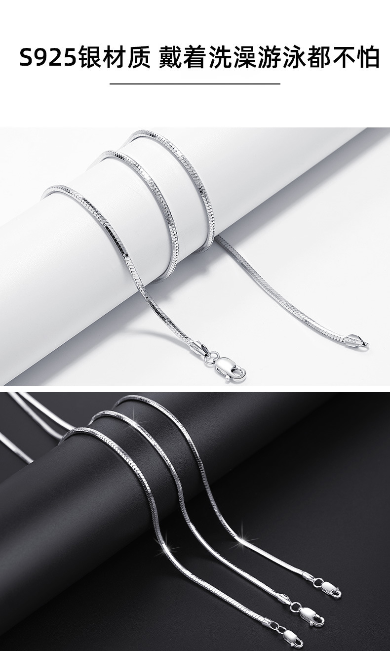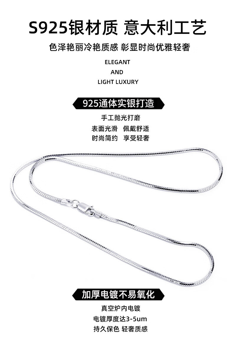 Rose Teddys925 silver necklace men's trendy brand versatile sterling silver snake bone chain men's fashion thin clavicle chain women's and boys' silver jewelry thick 2.0mm long 45cm S925 silver plated platinum