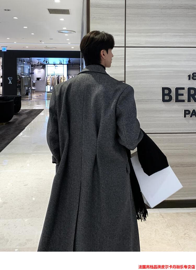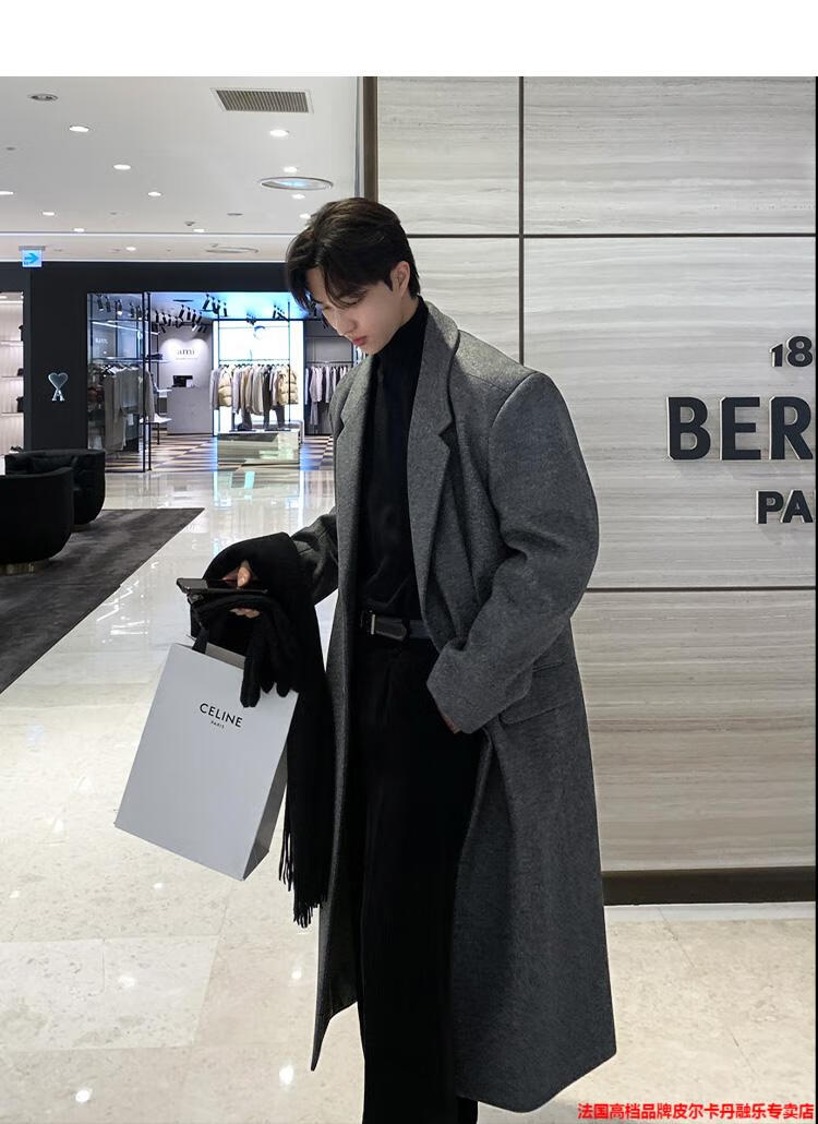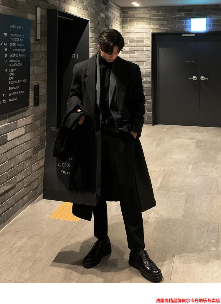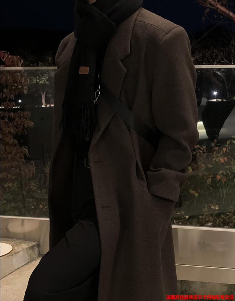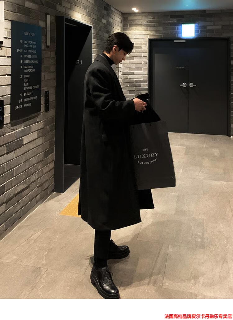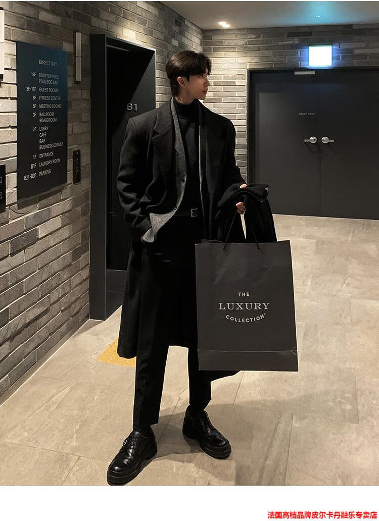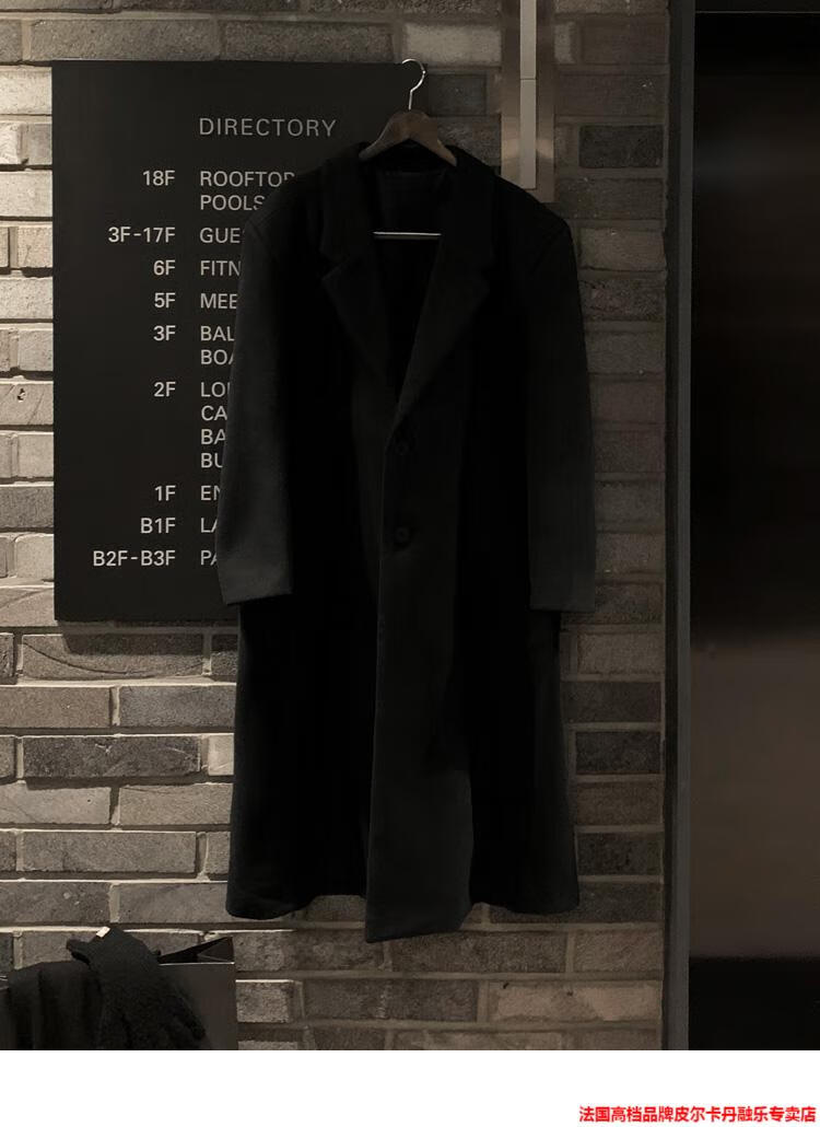 Pierre Cardin Spring and Autumn Korean Maillard Woolen Coat Men's Mid-Length Shoulder-Pad Windbreaker Over-the-Knee Loose Woolen Coat Brown (Single Lined) M
