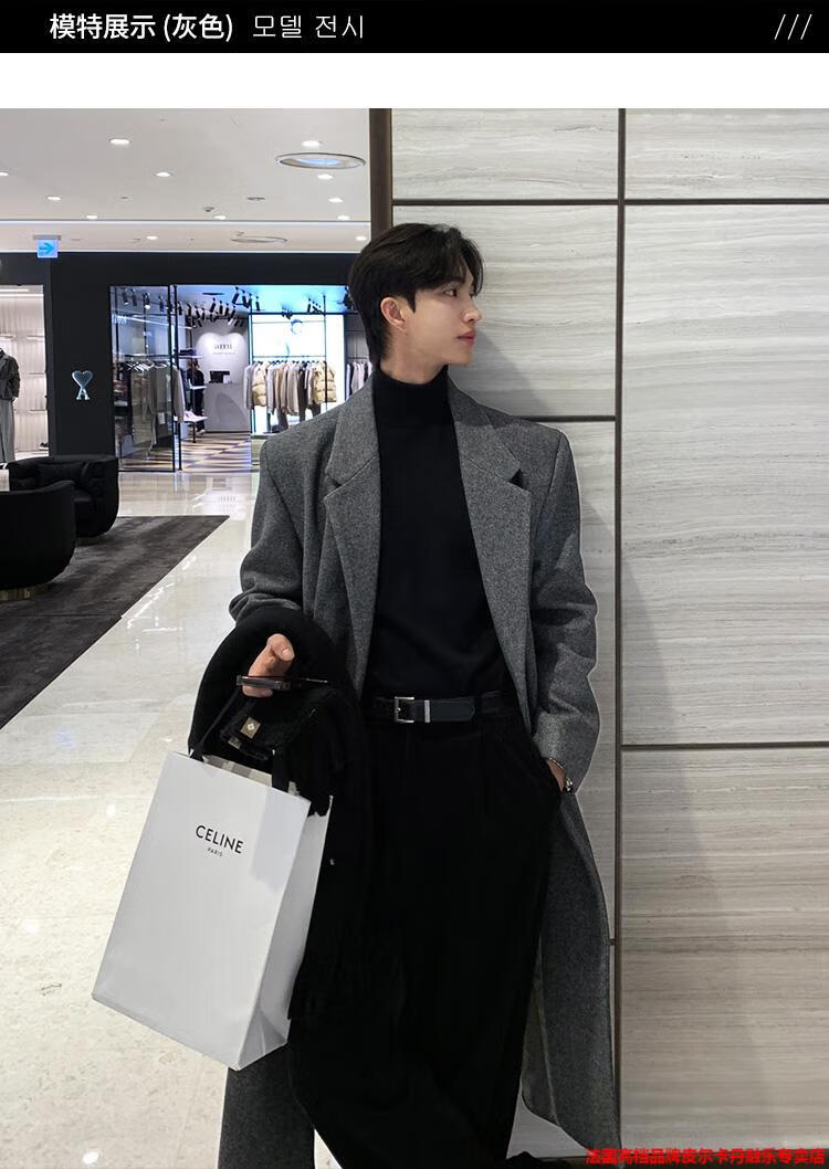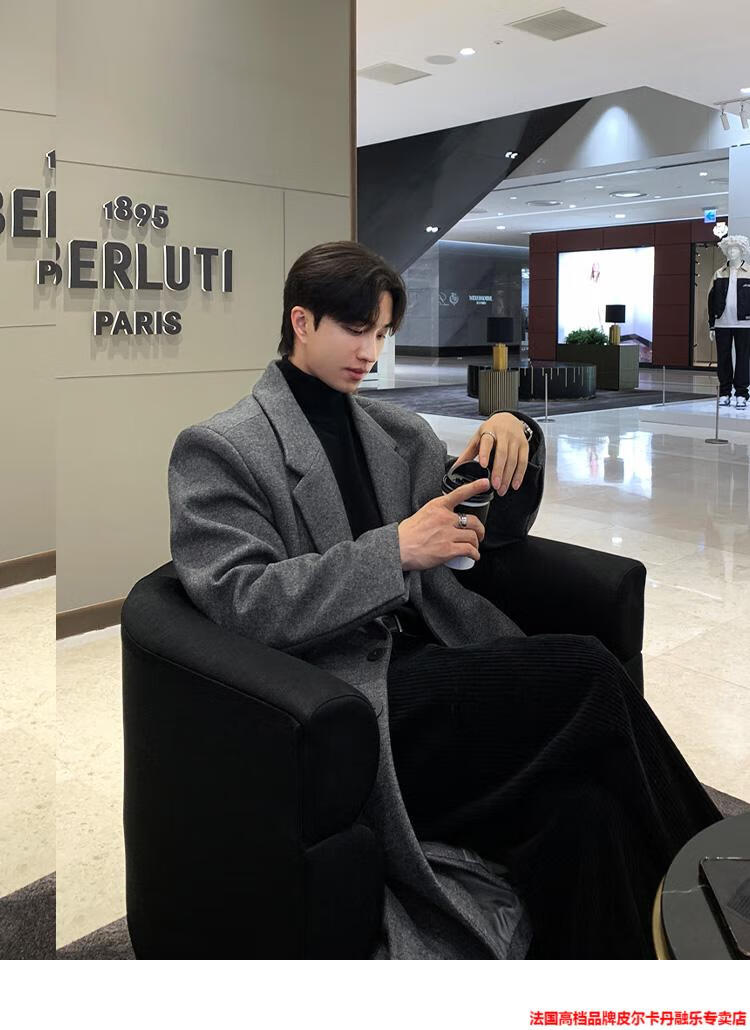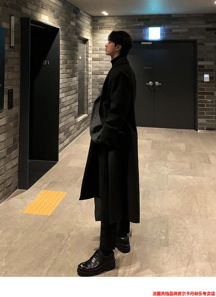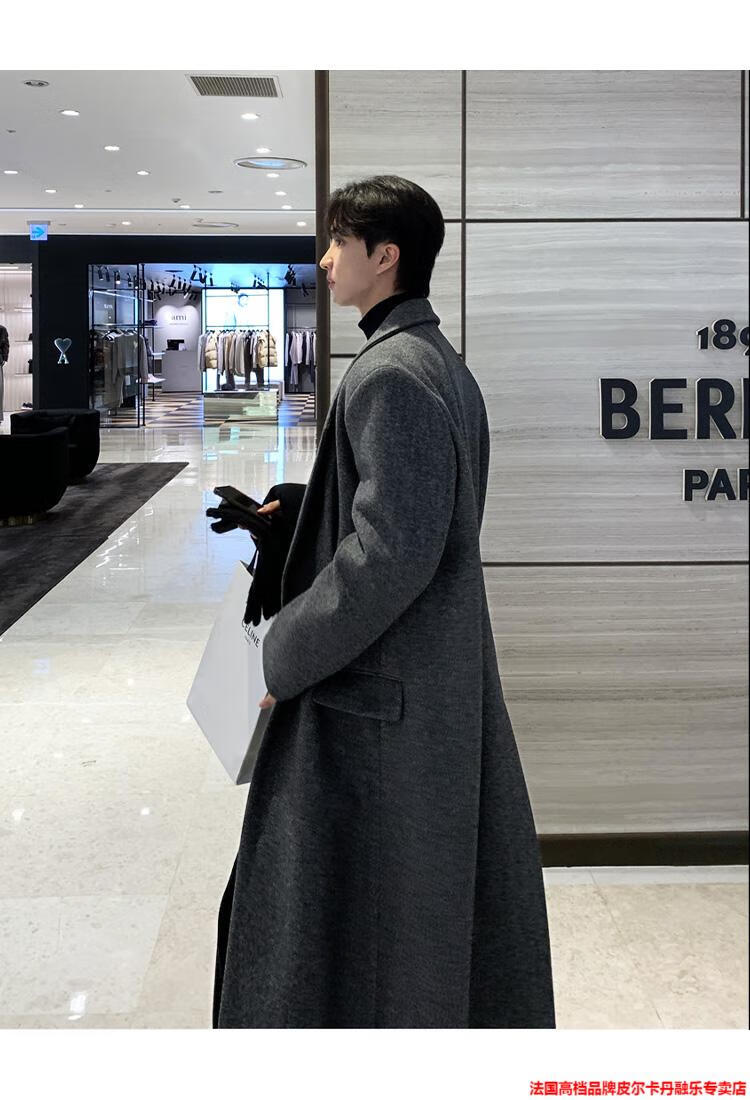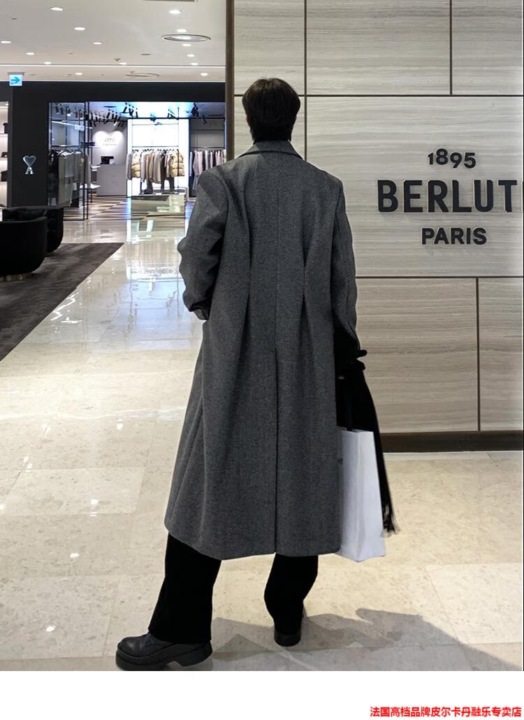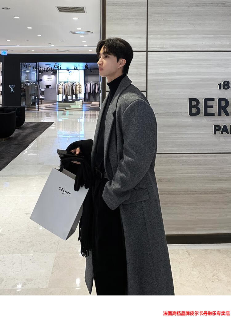 Pierre Cardin Spring and Autumn Korean Maillard Woolen Coat Men's Mid-Length Shoulder-Pad Windbreaker Over-the-Knee Loose Woolen Coat Brown (Single Lined) M