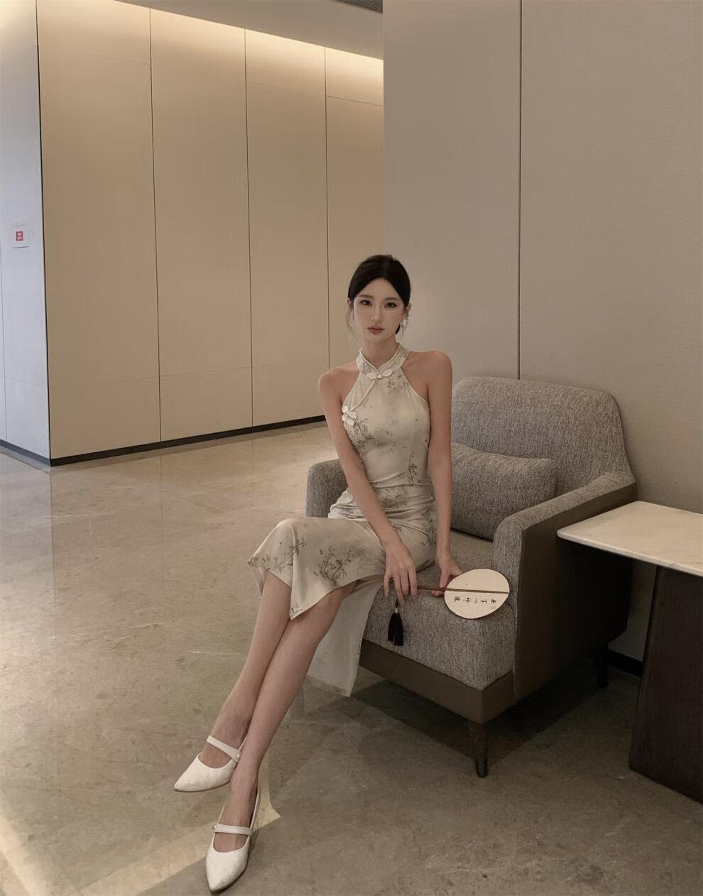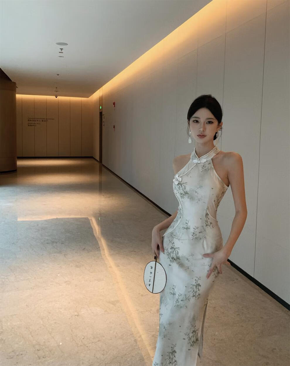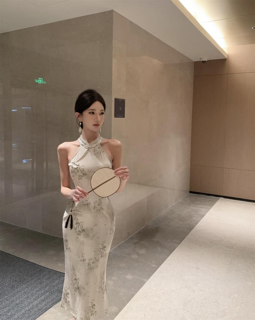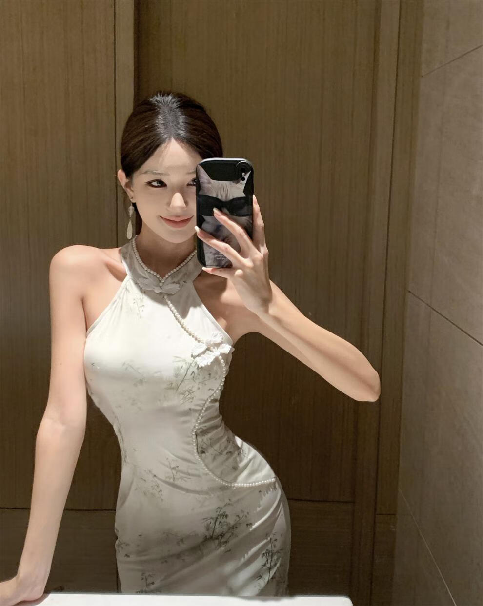 Spring Man (TANHUANGREN) new retro design improved cheongsam beaded halterneck slim hip dress for ladies Picture color M