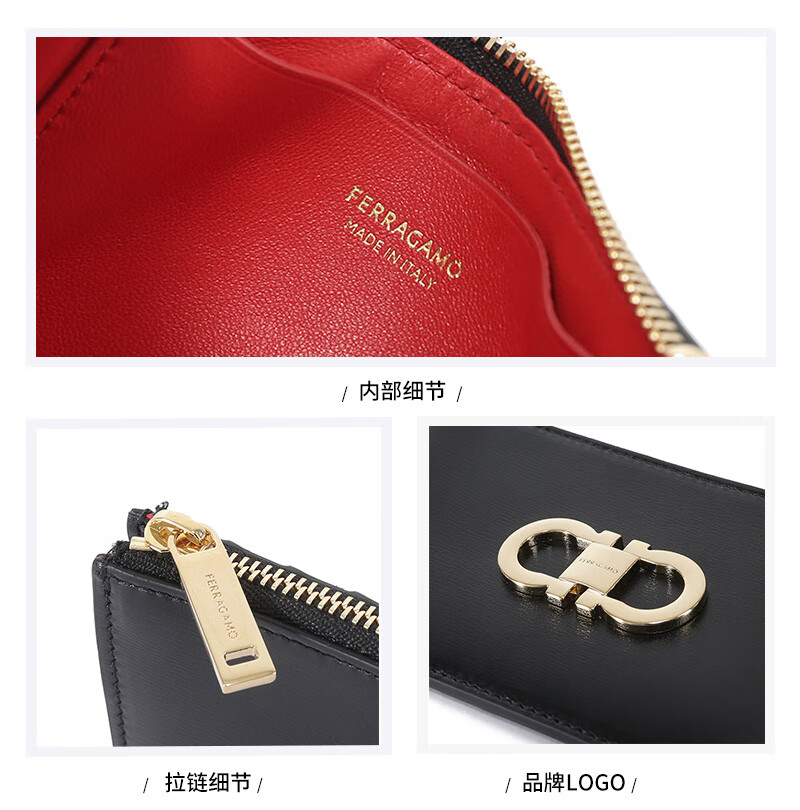 Second-hand 99 new unused Ferragamo women's bag women's leather Gancini credit card bag card holder 220629 0770767 black