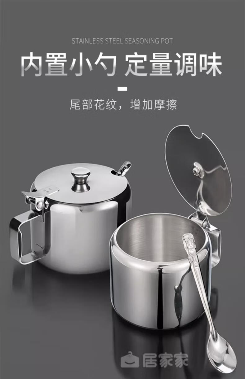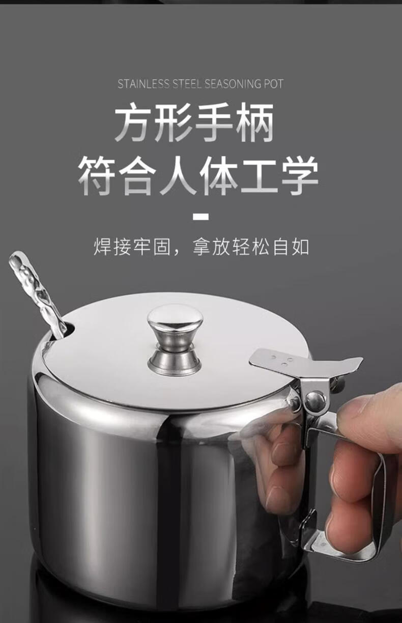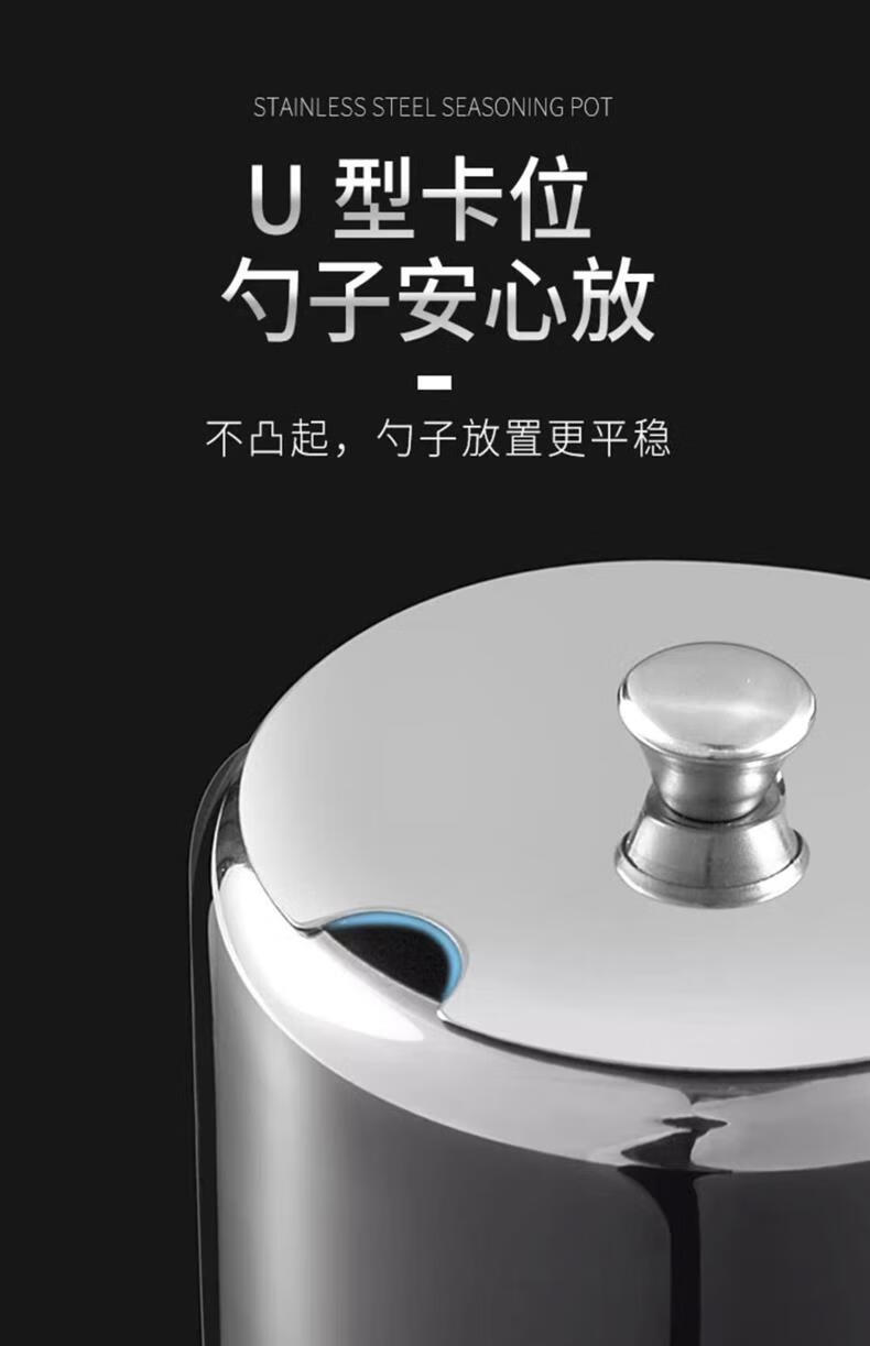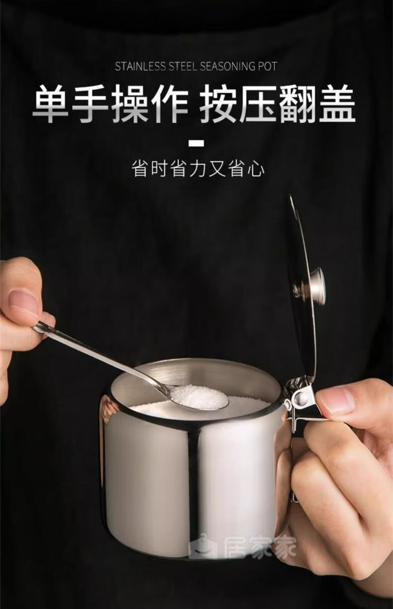 Stainless steel flip lid with handle chili jar seasoning jar household seasoning box with spoon MSG jar salt shaker with lid large 9.5cm chili jar 1 pack
