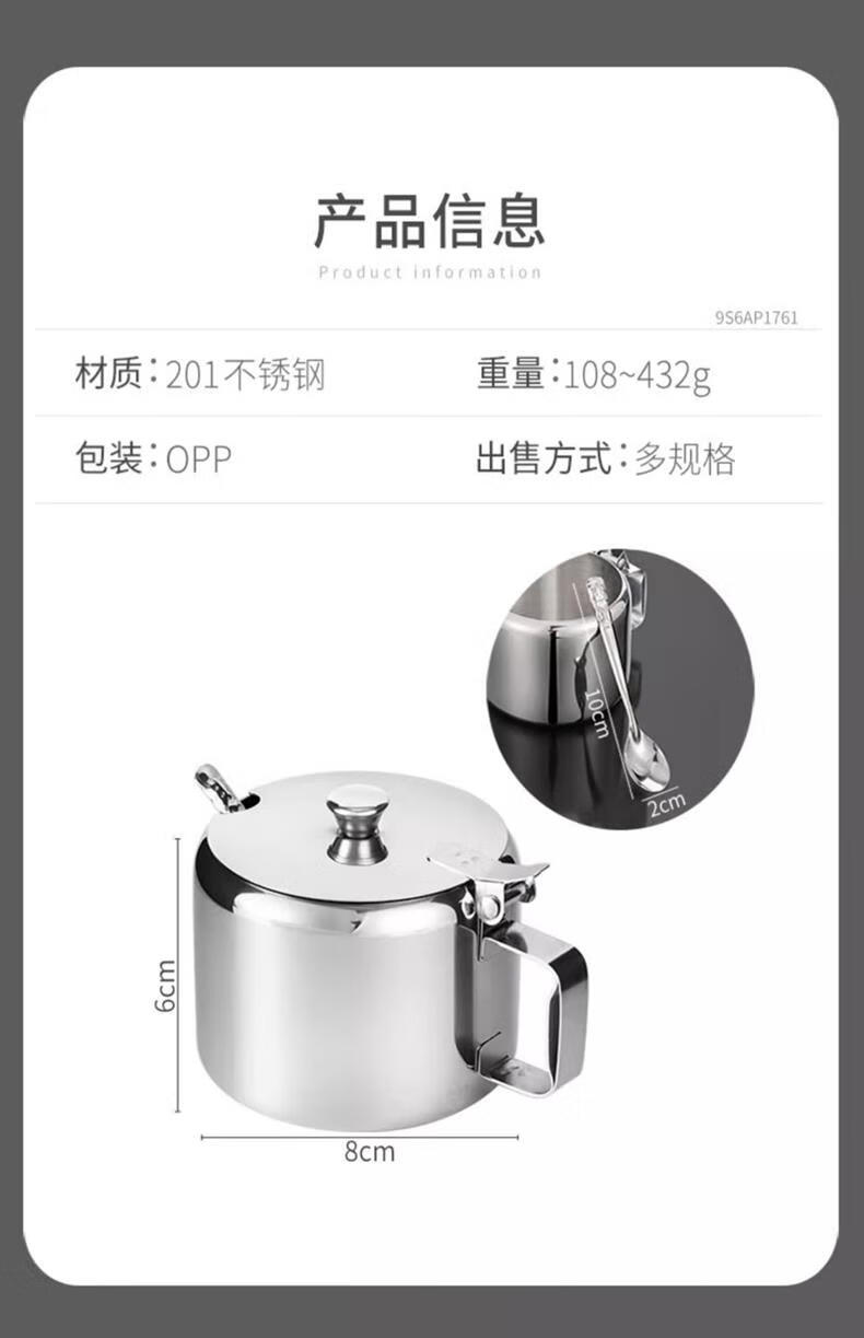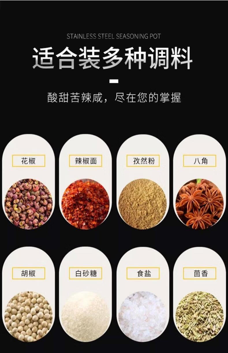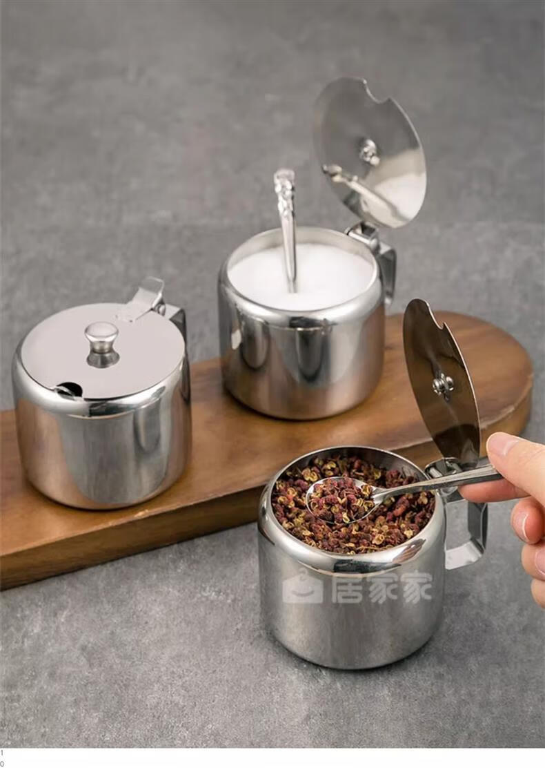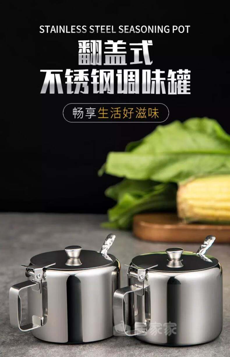 Stainless steel flip lid with handle chili jar seasoning jar household seasoning box with spoon MSG jar salt shaker with lid large 9.5cm chili jar 1 pack