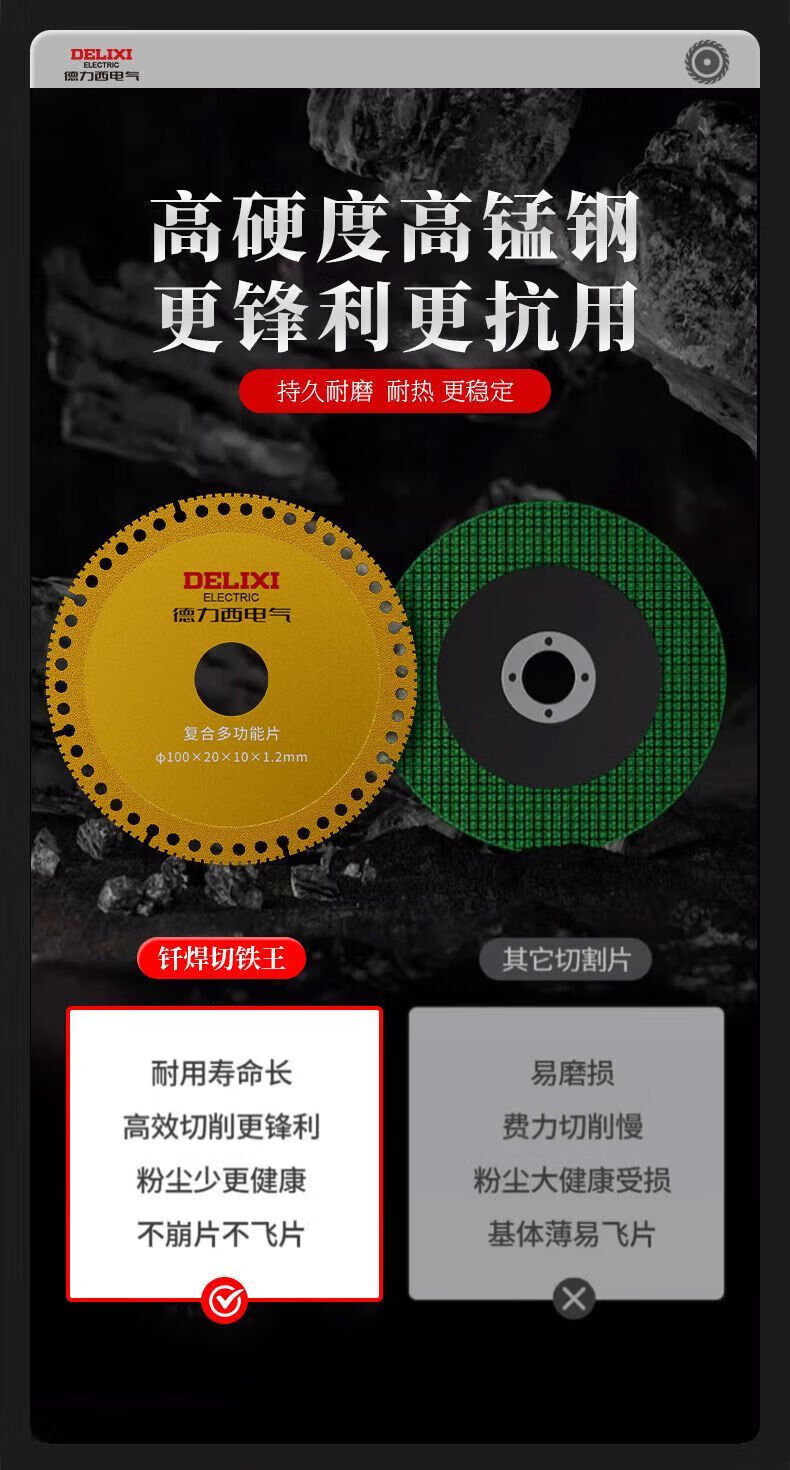 Delixi cutting blade, cutting iron king angle grinder cutting blade, stainless steel, metal, cast iron, stone, diamond grinding wheel, grinding saw blade, industrial grade, cutting iron king 100 type, 1 piece