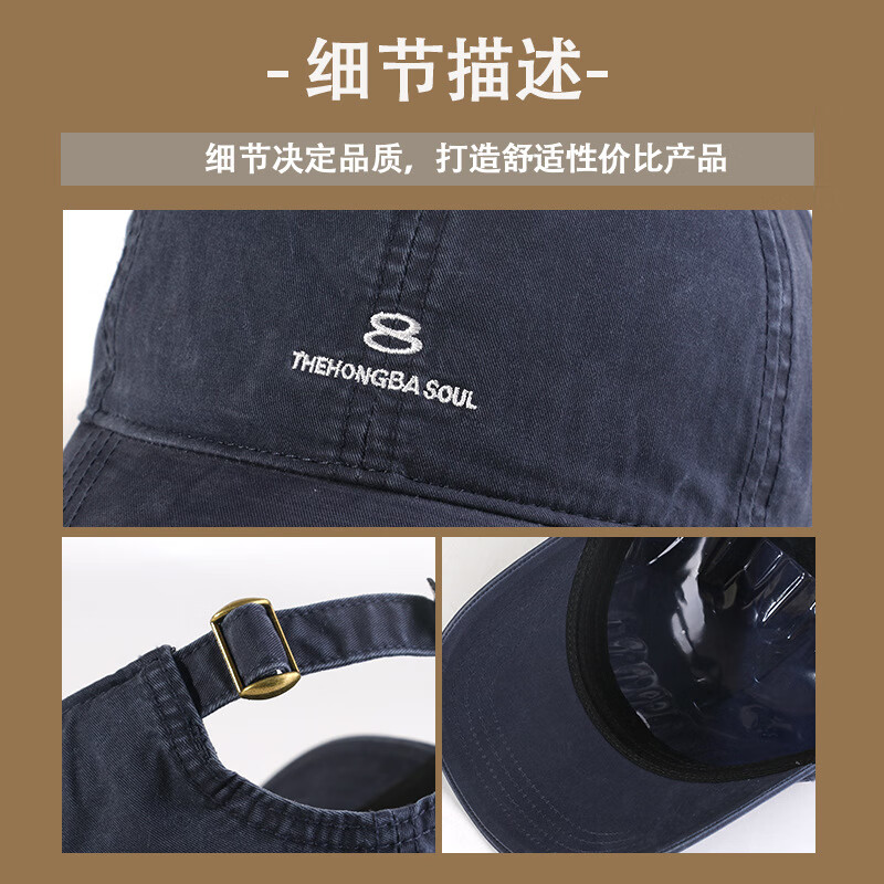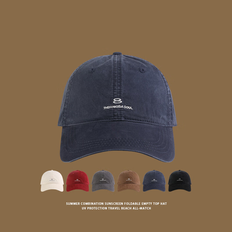 Youthful high-end baseball hat for men, trendy brand peaked cap, soft top sun hat for women, outdoor leisure sports fishing hat, men's hat, black, one size fits all, 54-60cm