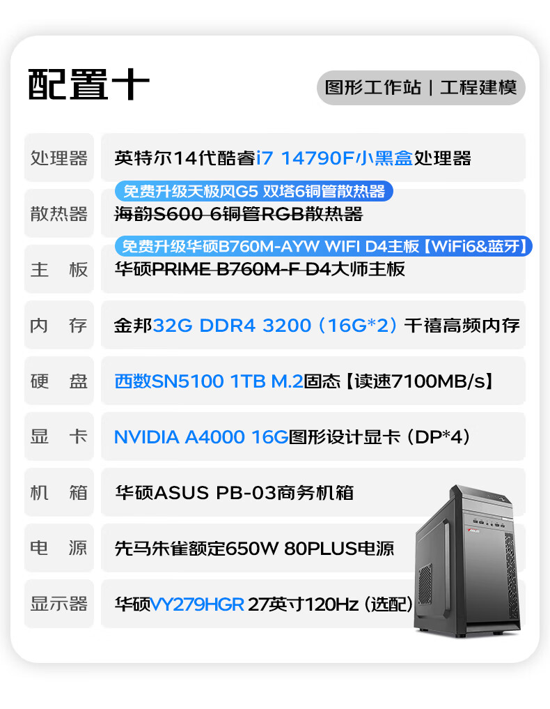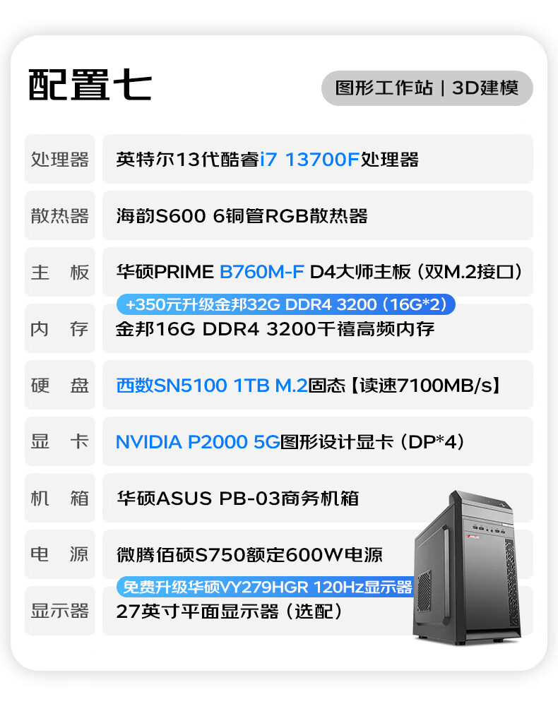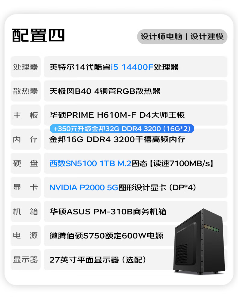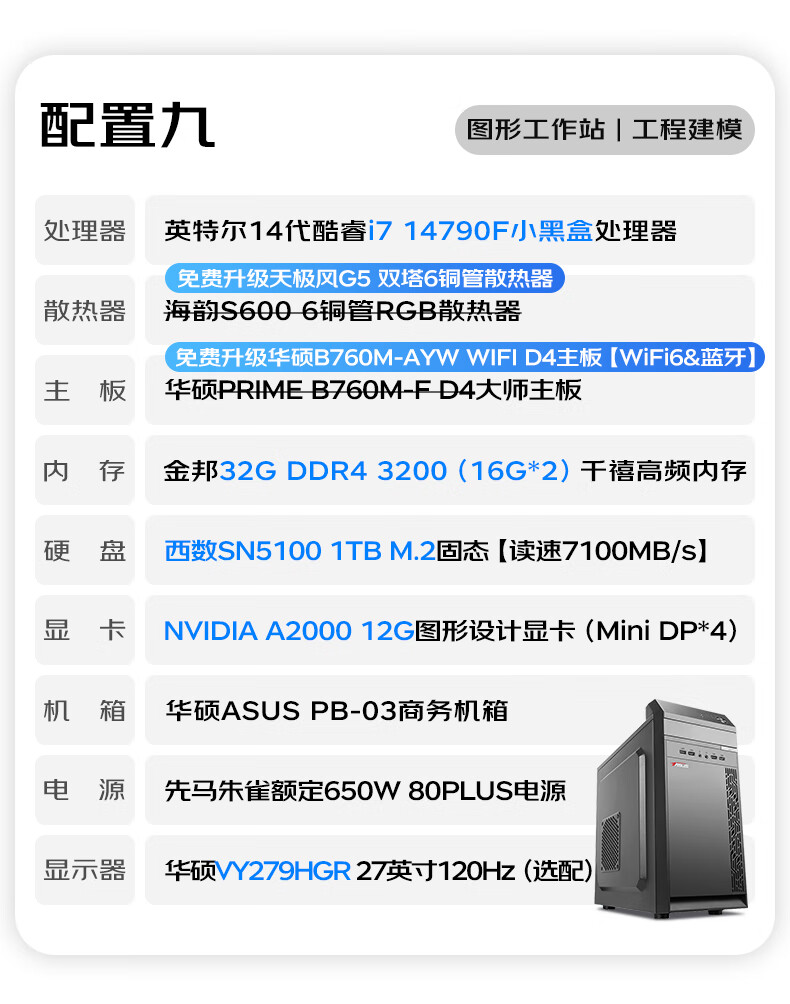 ASUS graphics workstation i5/i7/P2000/A2000/A4000 designer video editing 3D modeling rendering CAD drawing desktop assembly computer host DIY complete machine with 9th 14th generation i7/A2000 12G/32G/1TB single host