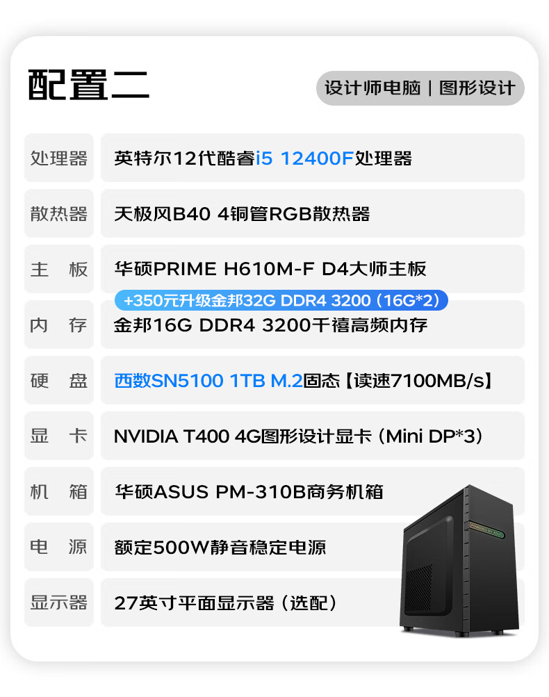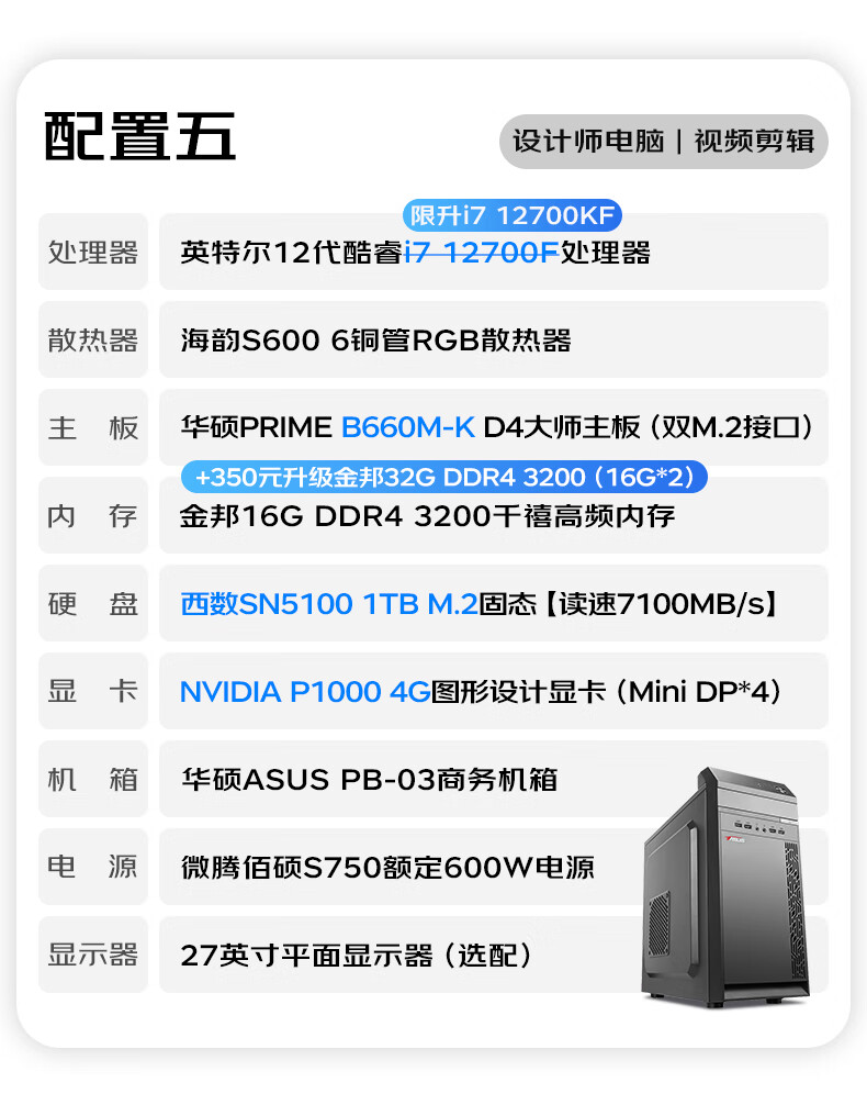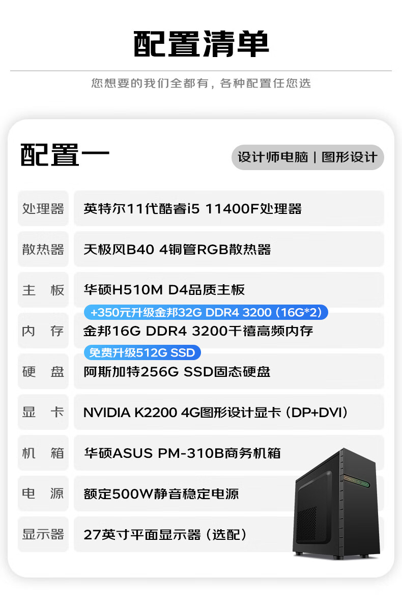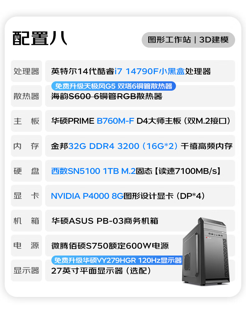 ASUS graphics workstation i5/i7/P2000/A2000/A4000 designer video editing 3D modeling rendering CAD drawing desktop assembly computer host DIY complete machine with 9th 14th generation i7/A2000 12G/32G/1TB single host