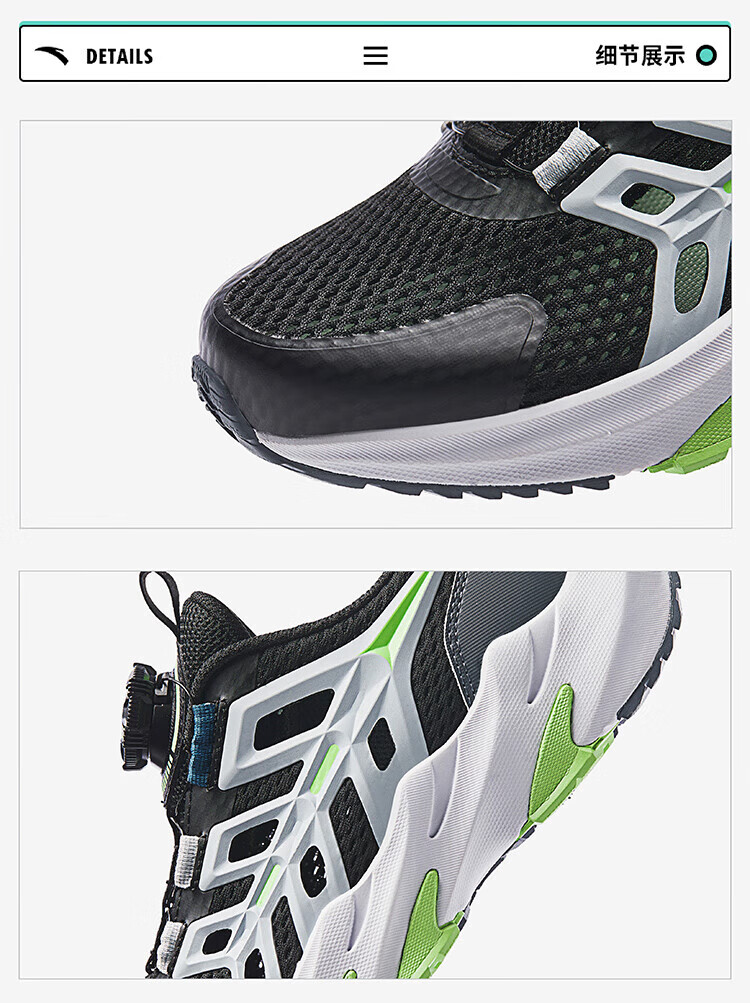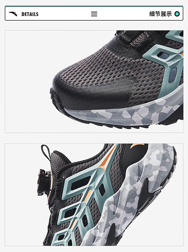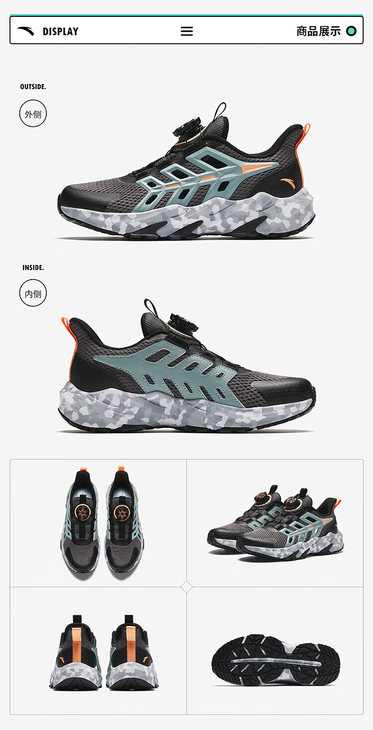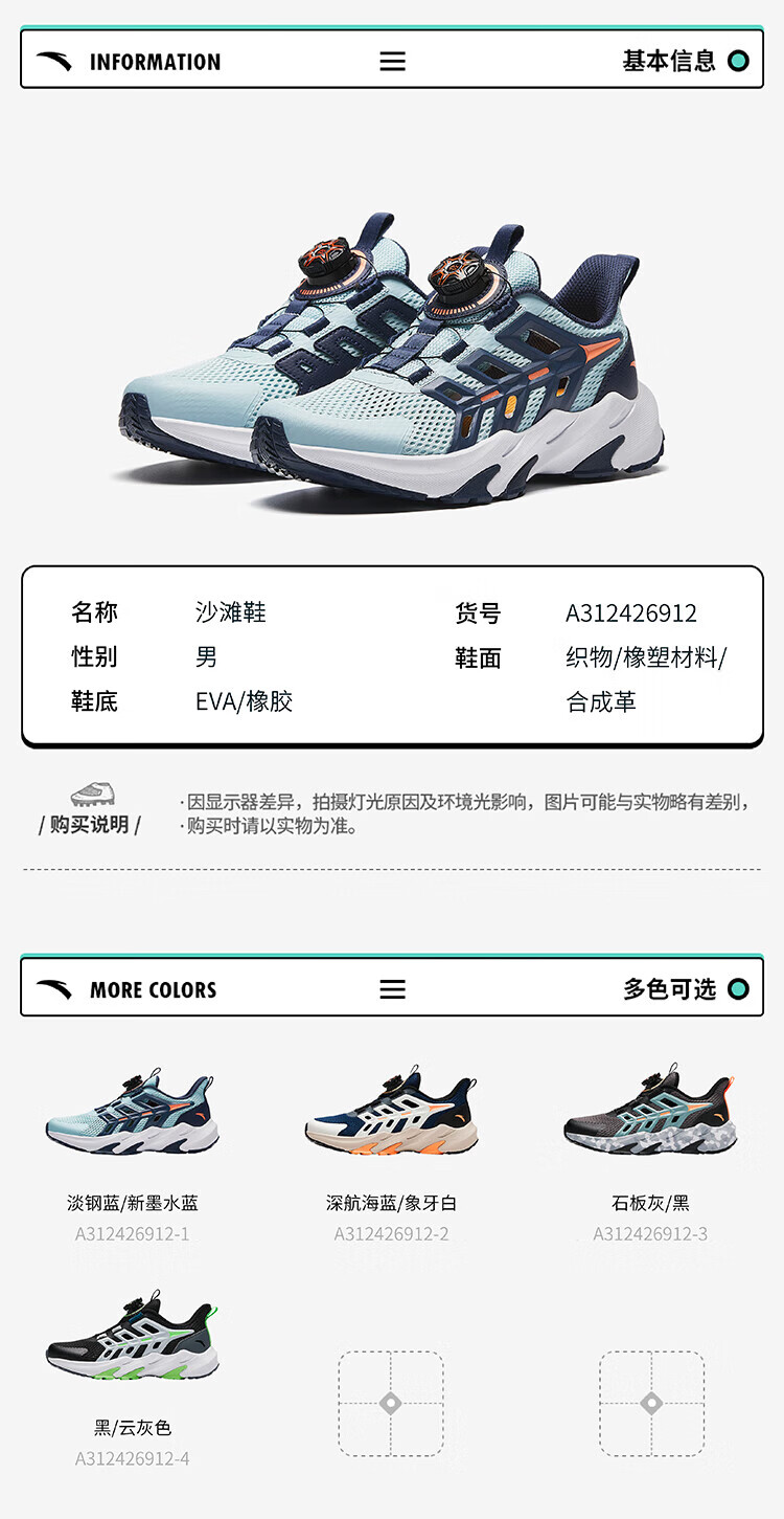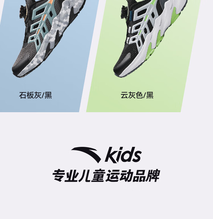 ANTA Children's Sandals Universal Big Children's Shoes 2025 Summer New Product Knob Buckle Mesh Breathable Small Warship Frame Shoes Beach Black/Cloud Gray-4 35