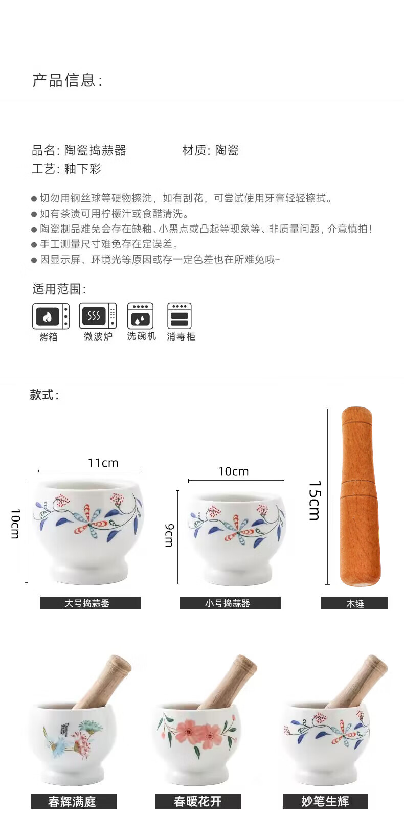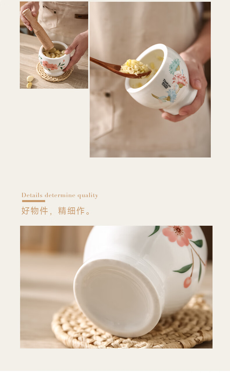 Yishan German imported high-quality ceramic garlic pounder household manual old-fashioned garlic mortar peeling garlic artifact stone mortar garlic pound spring warm flowers blooming red flowers large garlic pounder