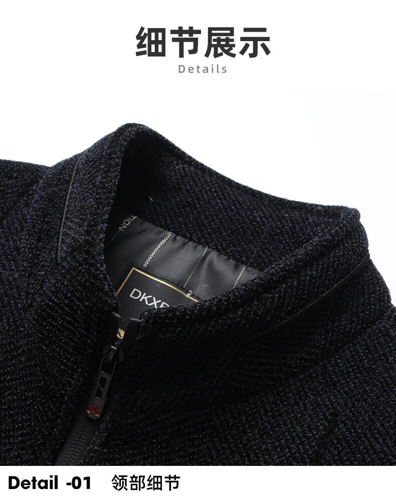 Chenille Men's Jacket Men's Jacket 2025 Spring Middle-aged Business Casual Top Dad's Stand Collar R Label Black Spring and Autumn Style BD3064 2XL /185 140-155Jin Jin is equal to 0.5 kg