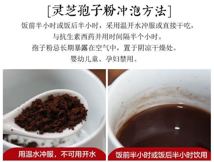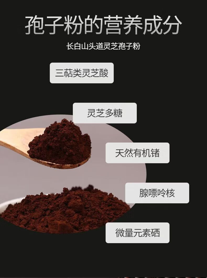Changbai Mountain Ganoderma lucidum Sporenpulver Sporenpulver kann zur Behandlung von körperlicher Schwäche und Appetit nach einer Krankheit eingesetzt werden. Insgesamt 4 Flaschen à 500 g.