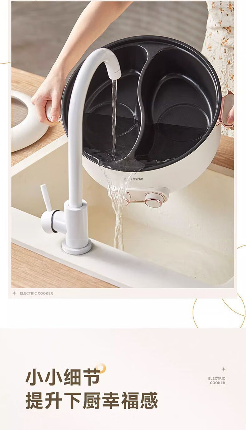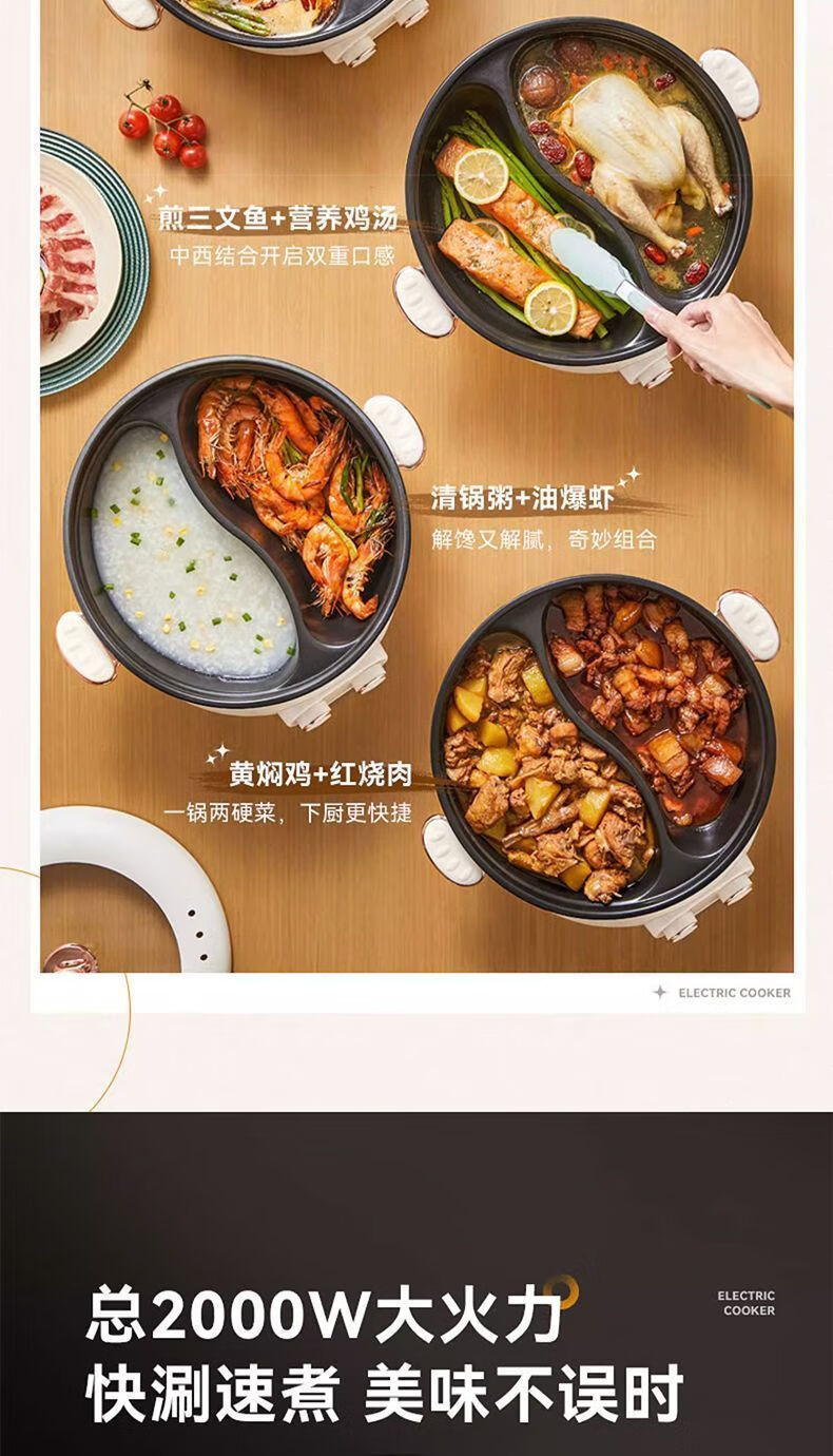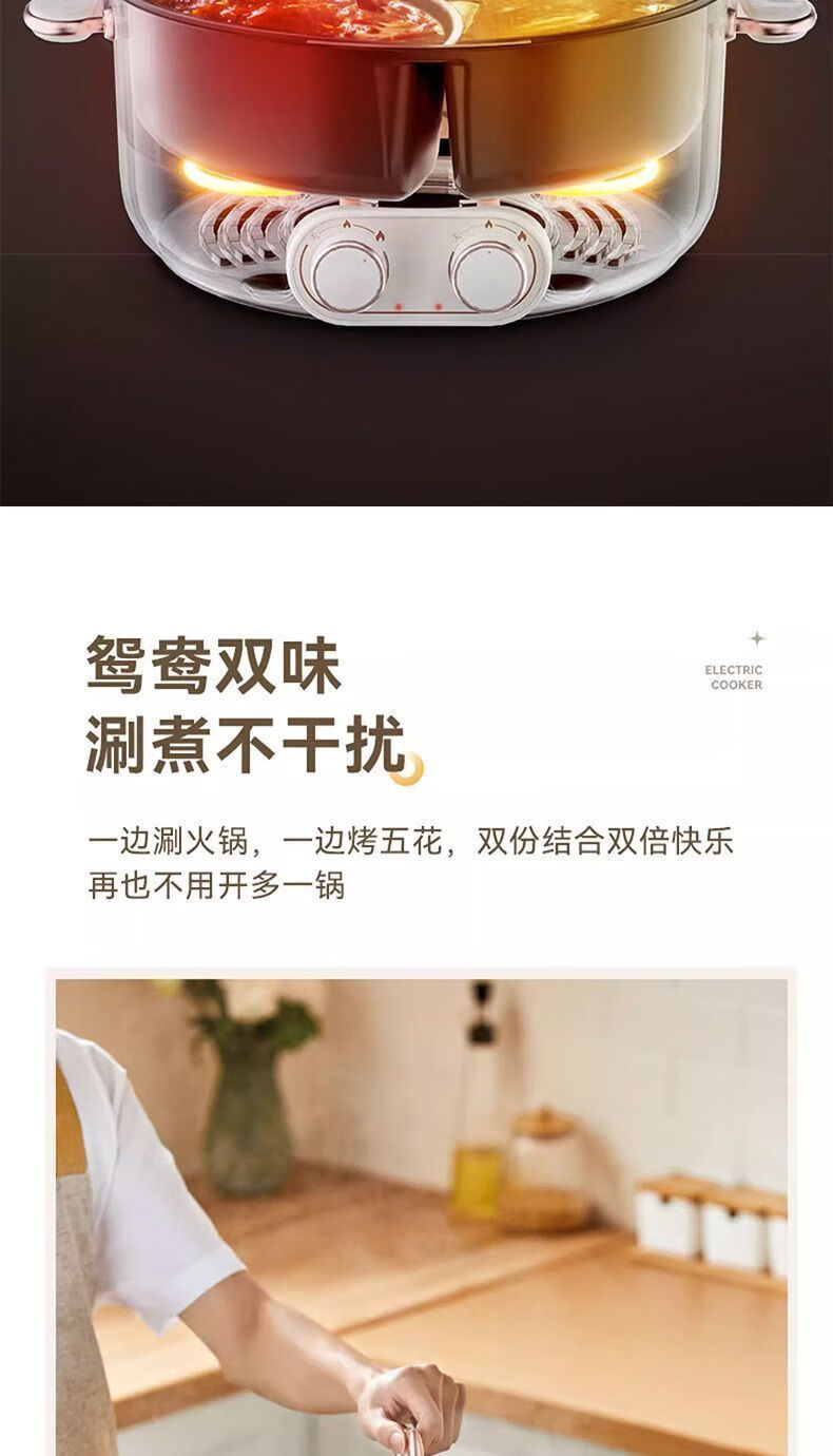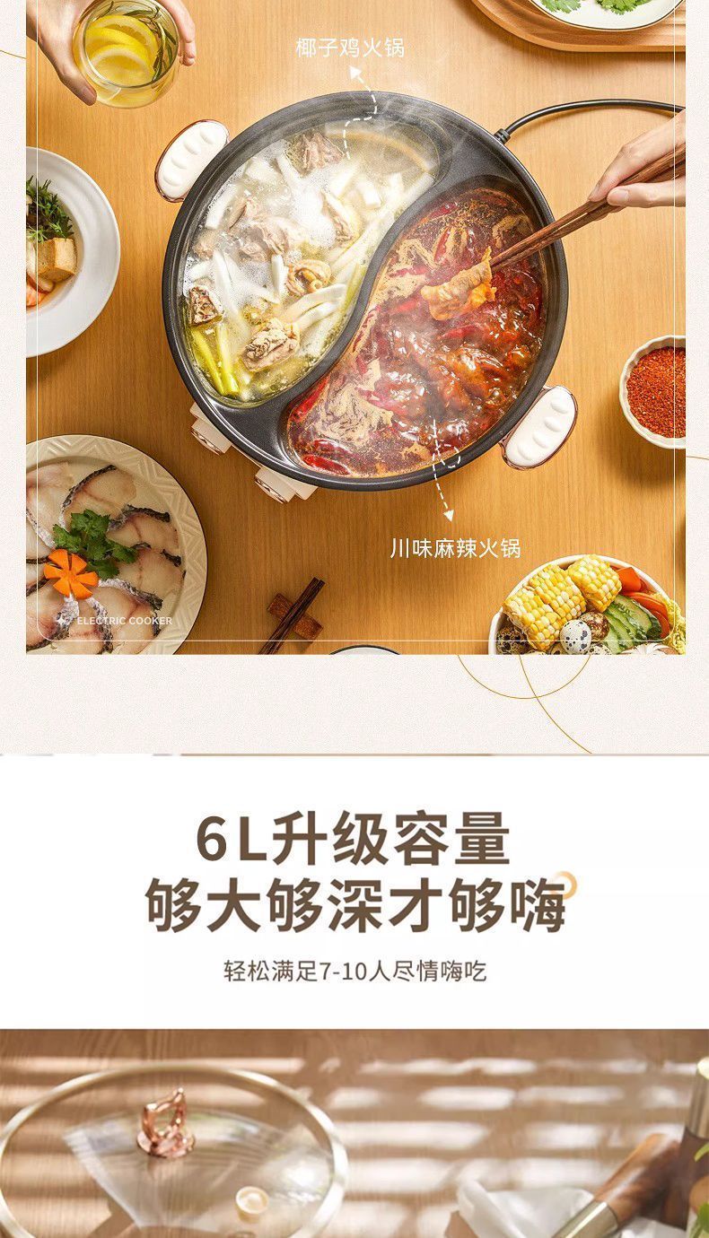 Jiuyang Jiaren electric hot pot household multi-functional mandarin duck hot pot large-capacity steaming pot dual-control electric cooking pot frying pan all-in-one electric wok Today's special offer (high power electric pot) 26cm 5L extra large size non-burning single flavor