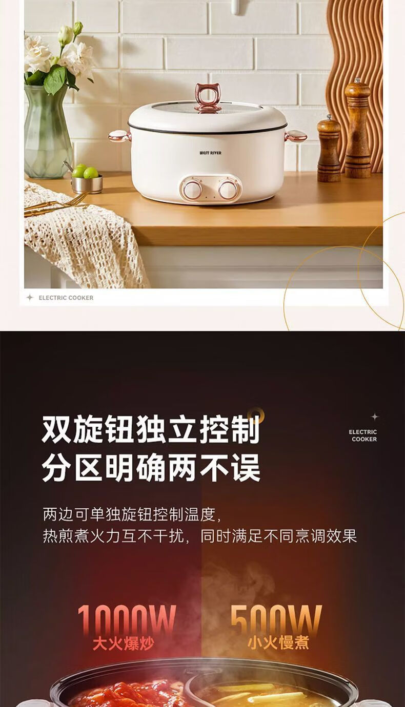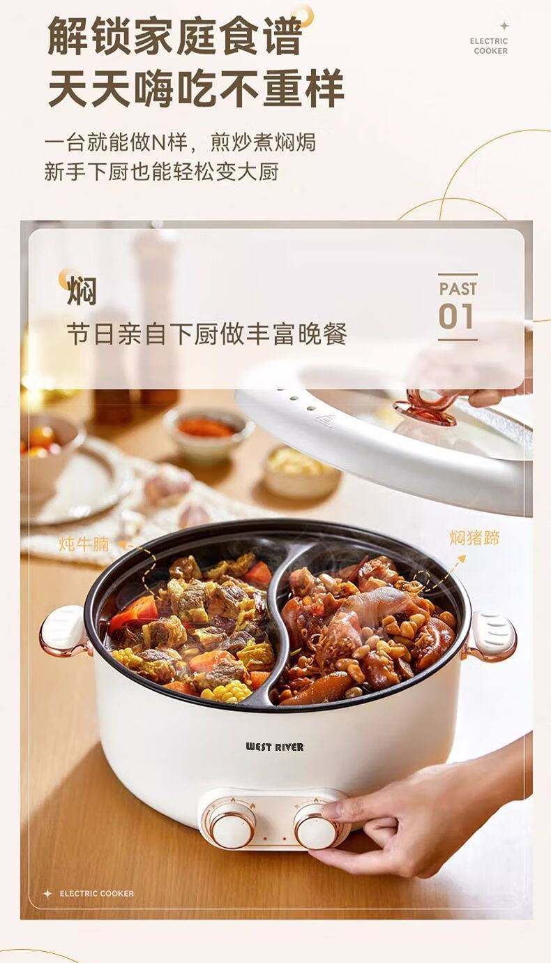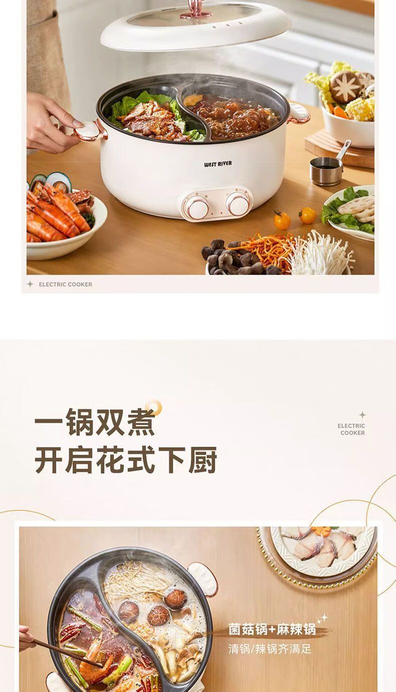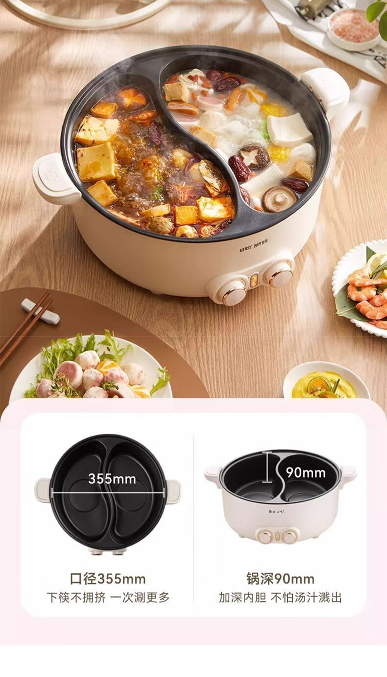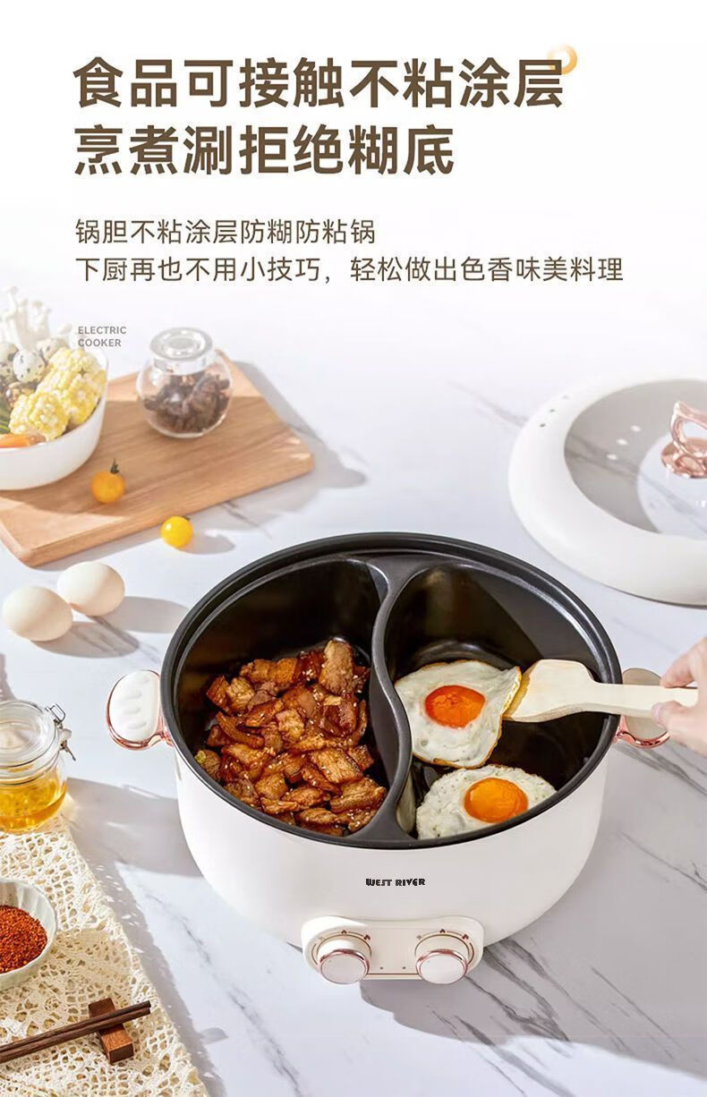 Jiuyang Jiaren electric hot pot household multi-functional mandarin duck hot pot large-capacity steaming pot dual-control electric cooking pot frying pan all-in-one electric wok Today's special offer (high power electric pot) 26cm 5L extra large size non-burning single flavor