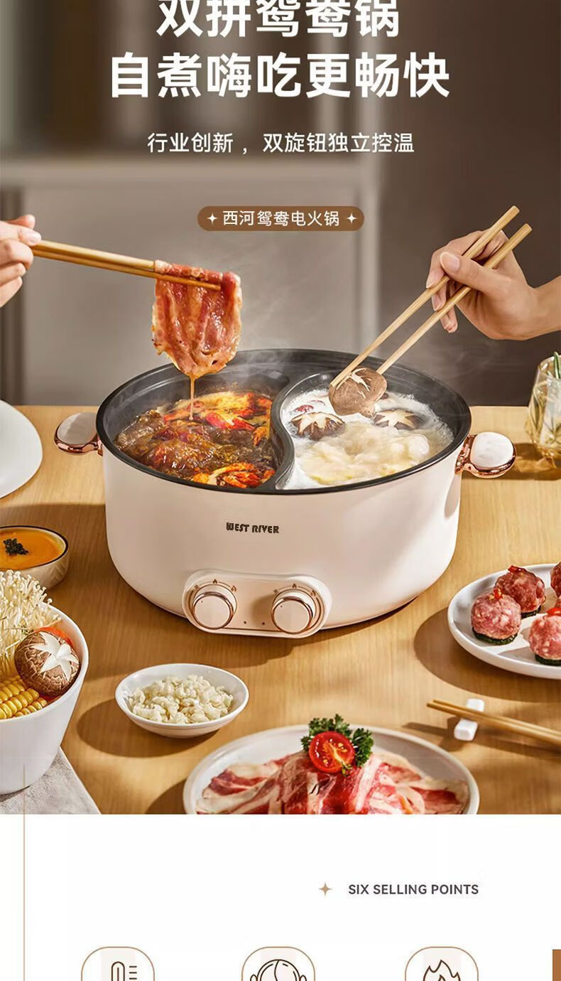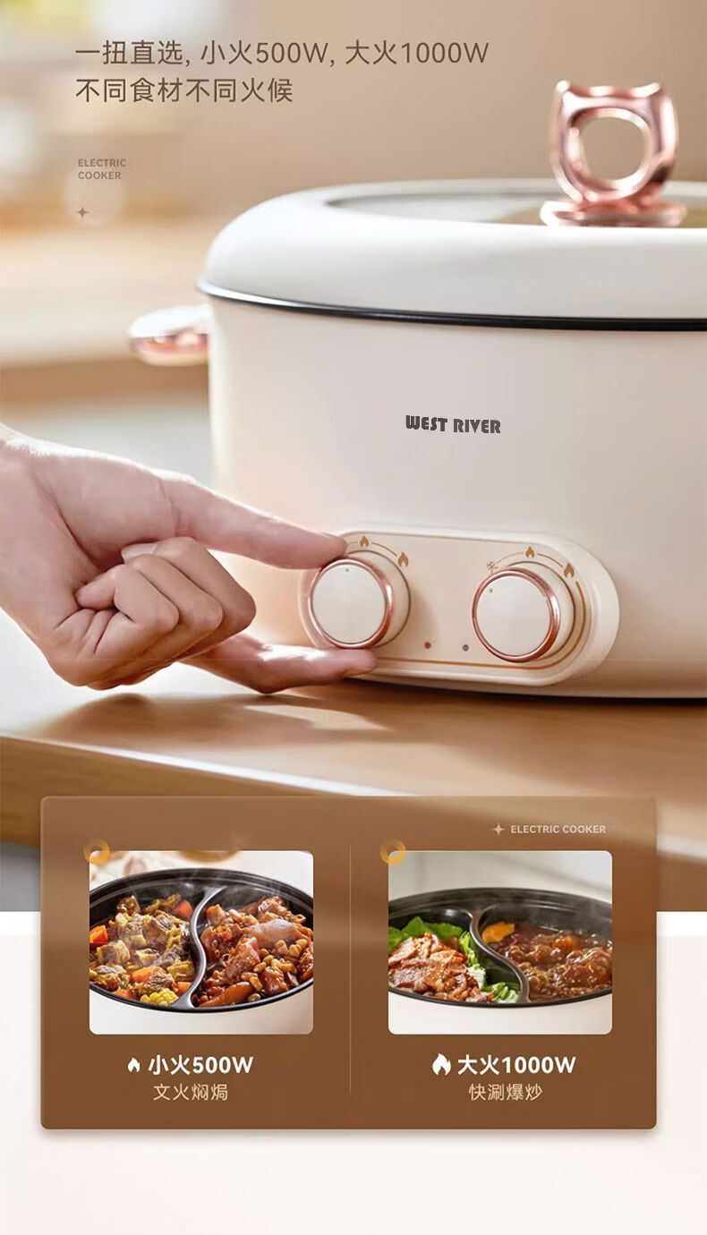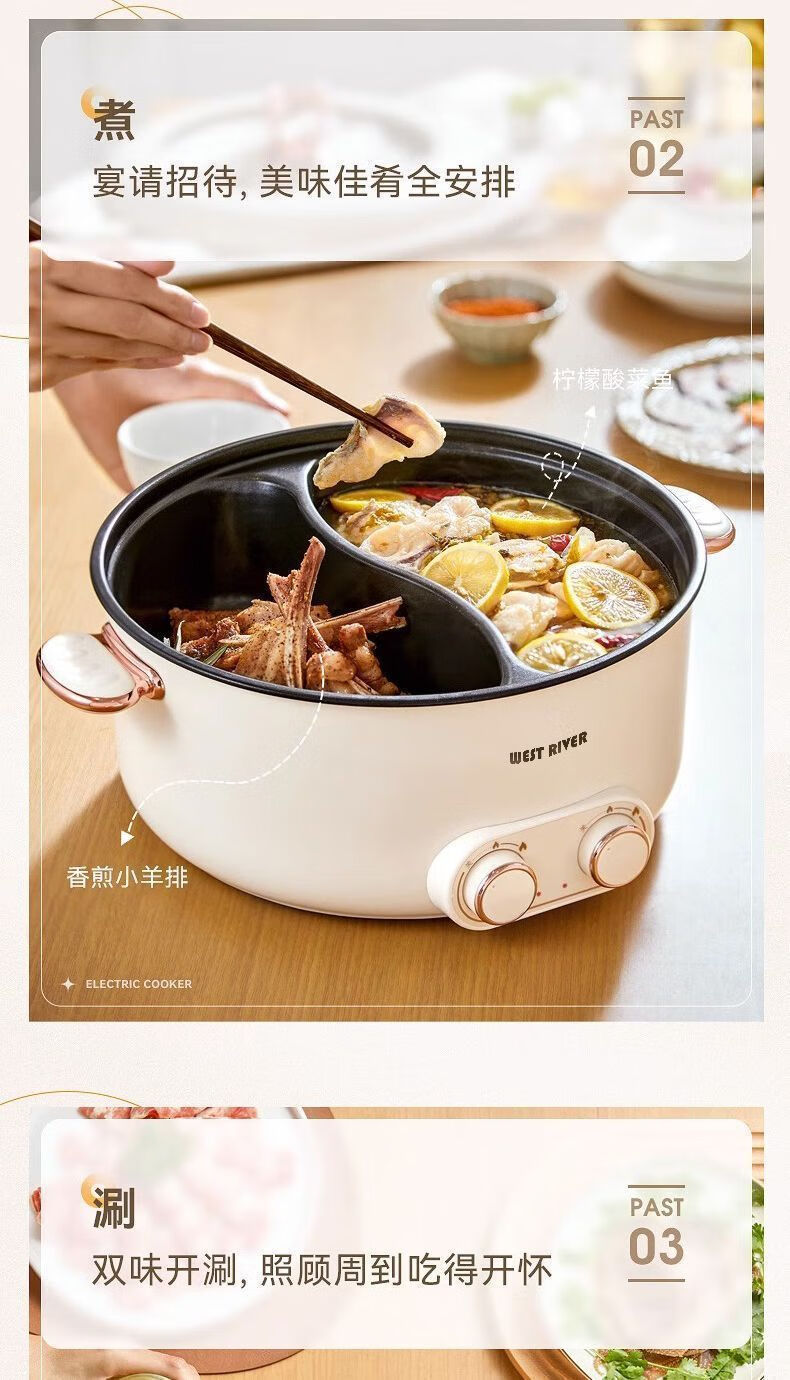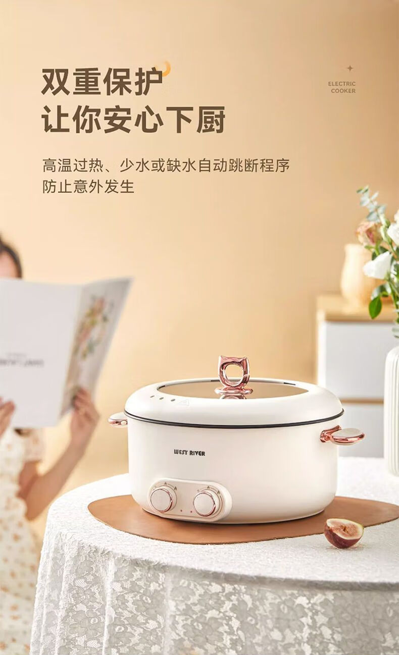 Jiuyang Jiaren electric hot pot household multi-functional mandarin duck hot pot large-capacity steaming pot dual-control electric cooking pot frying pan all-in-one electric wok Today's special offer (high power electric pot) 26cm 5L extra large size non-burning single flavor