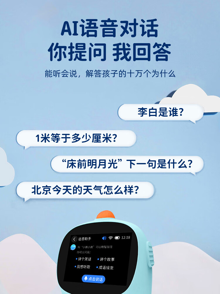 POLARIS 2025 New Children's Smart Alarm Clock Time Manager Student Learning Special Electronic Clock AI Smart Alarm Clock Blue
