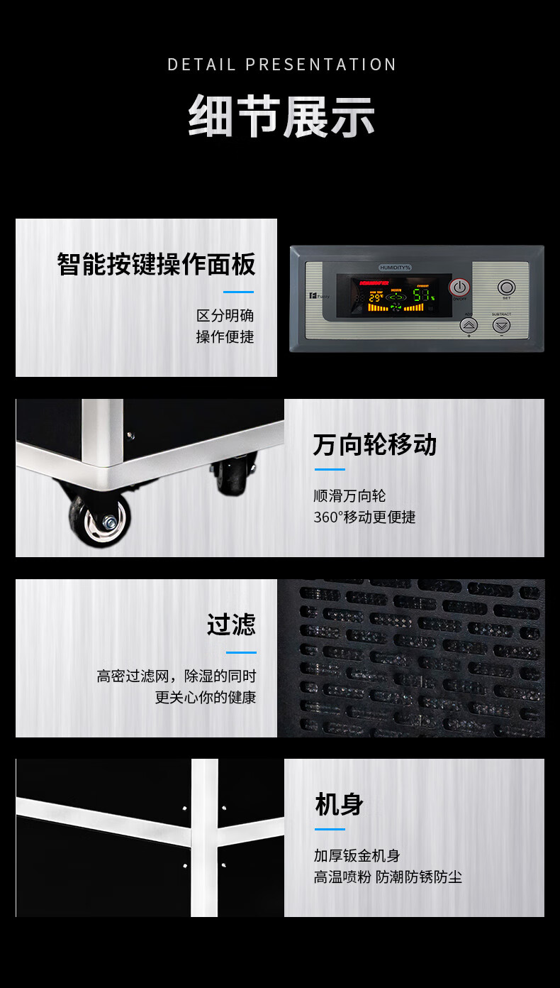 High-power dehumidifier with high efficiency dehumidification suitable for 300-1000 warehouse/basement/underground parking lot/factory workshop dehumidification equipment AY-15S|360L/D