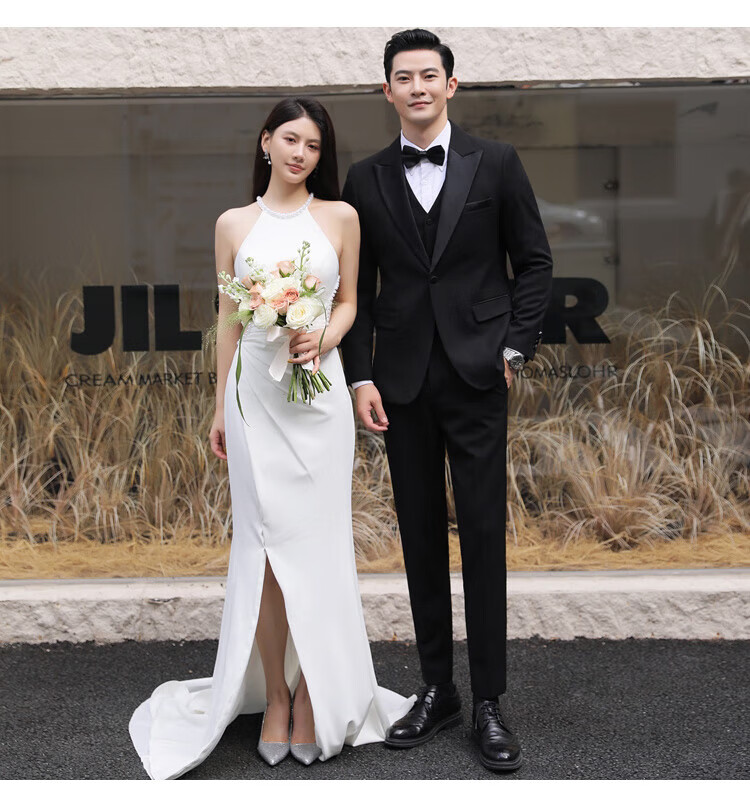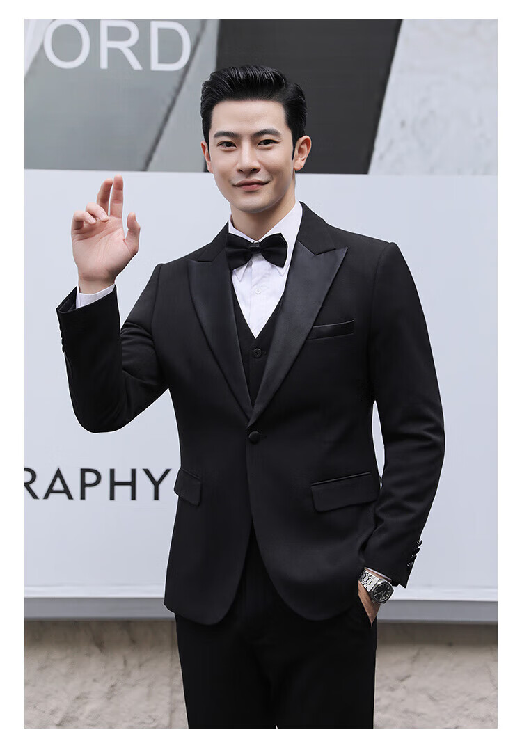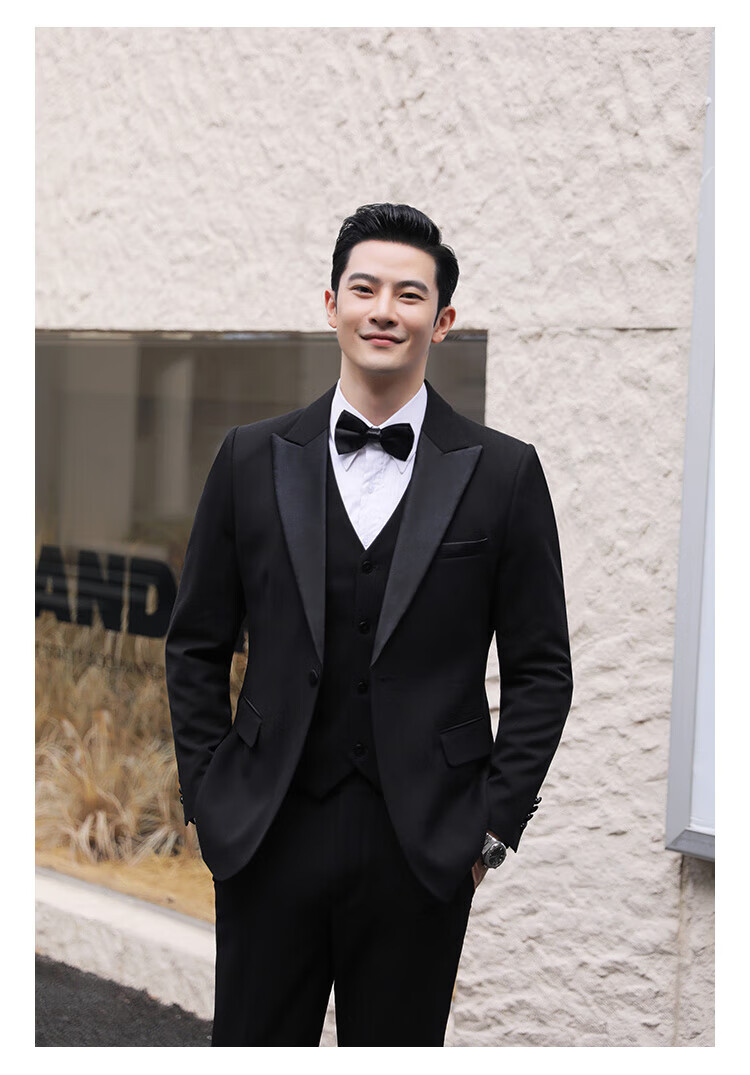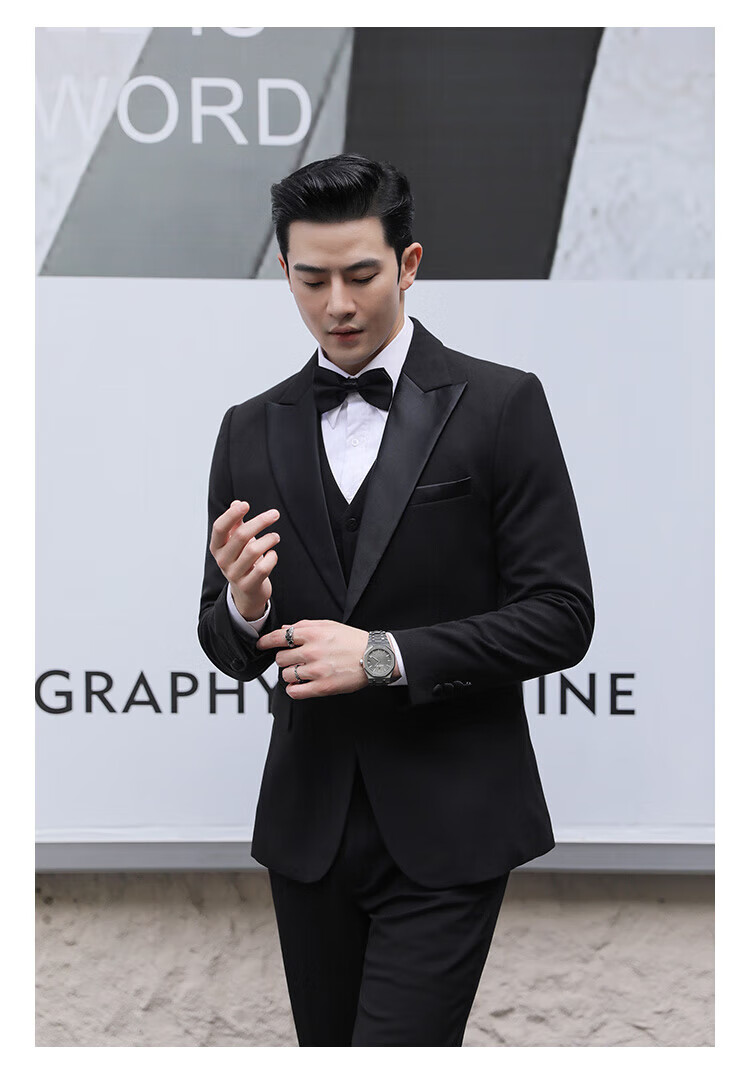 ROMON Groom Wedding Suit Men's Three-piece Korean Slim Tuxedo Dress Suit Business Professional Formal Black Suit Top + Vest + Pants + Shirt Gift Pack XL -48 120-135 Jin Jin equals 0.5 kg