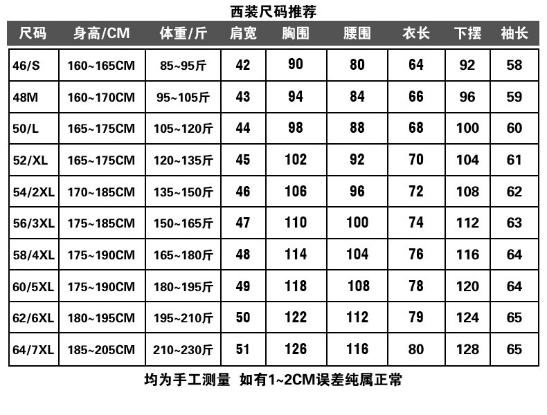 China (cm) 160-165/84-86 165-170 / 88-90 167-172 / 92-96 168-173 / 98-102 170-176 / 106-110