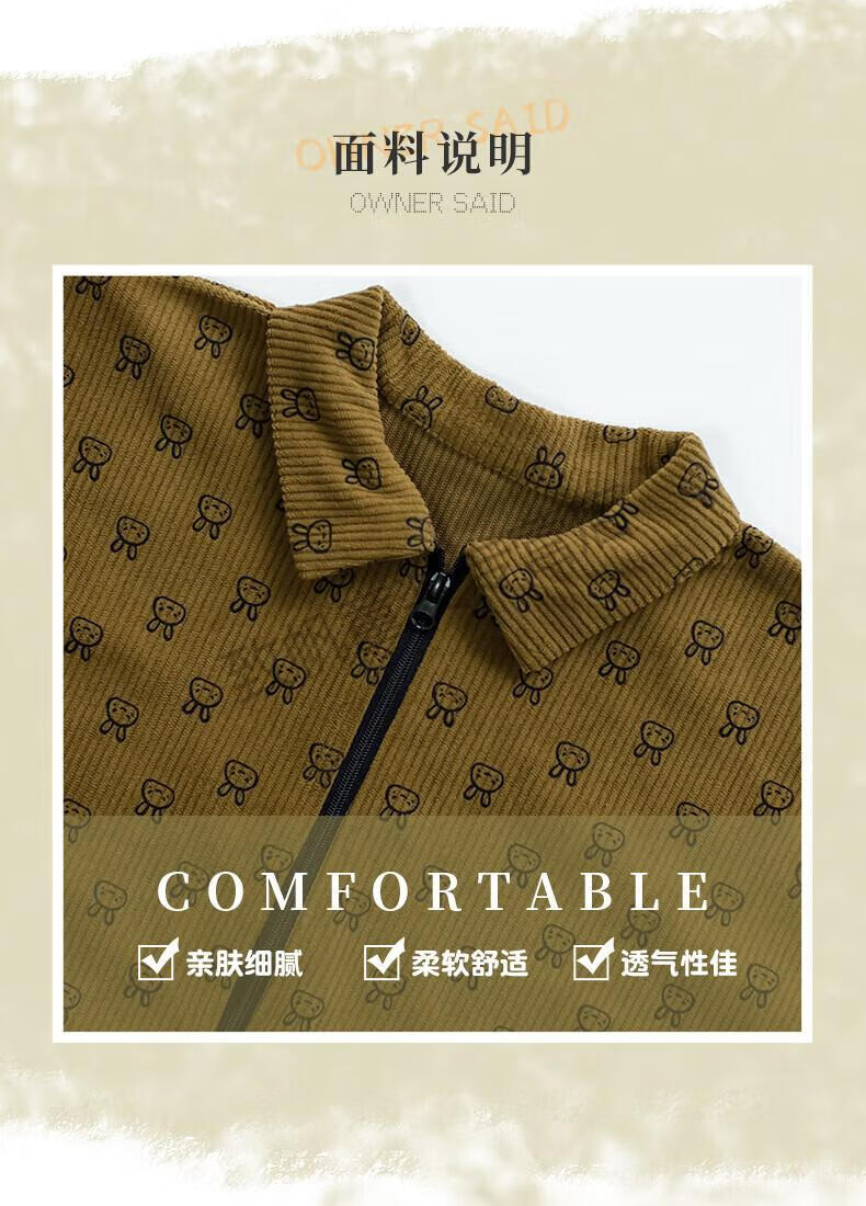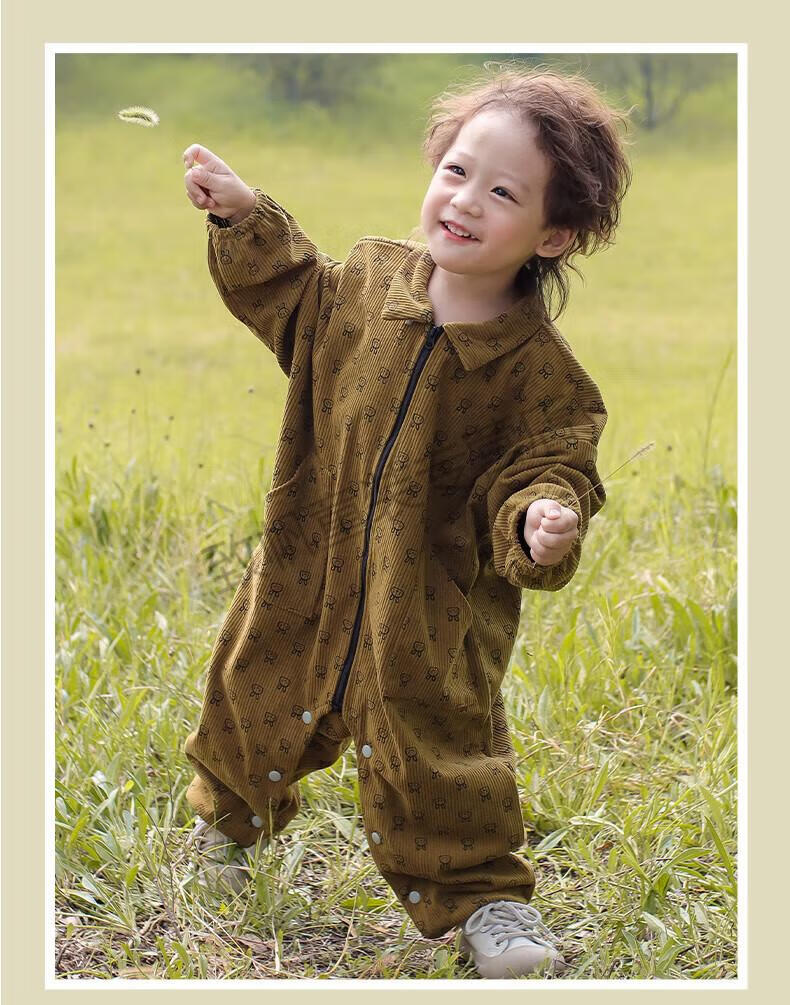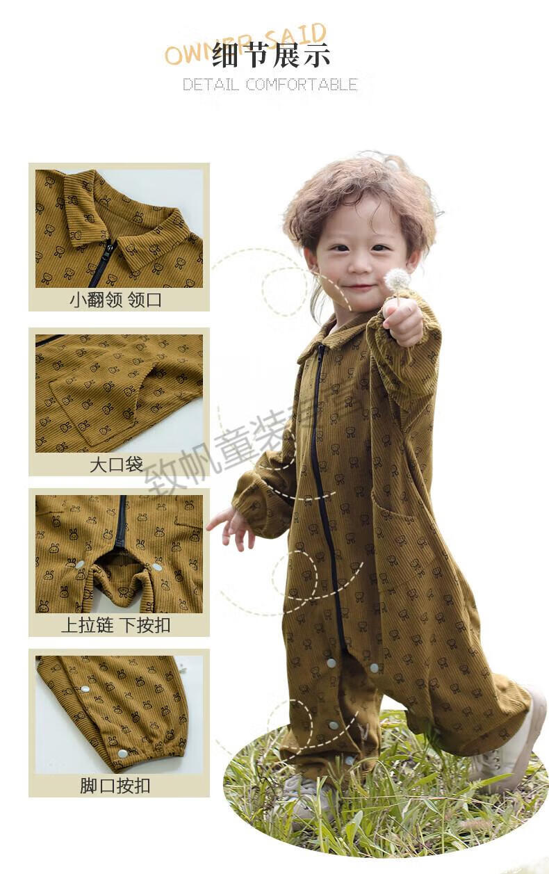 G.duck baby crawling suit corduroy outdoor anti-dirty children's full body one-piece coverall spring, autumn and winter baby crawling suit for going out dark yellow bunny 76cm 73 size (within height)