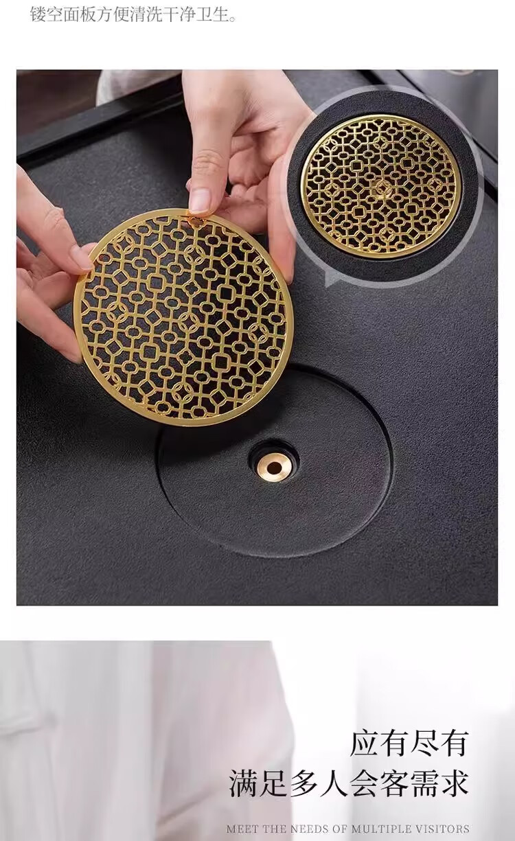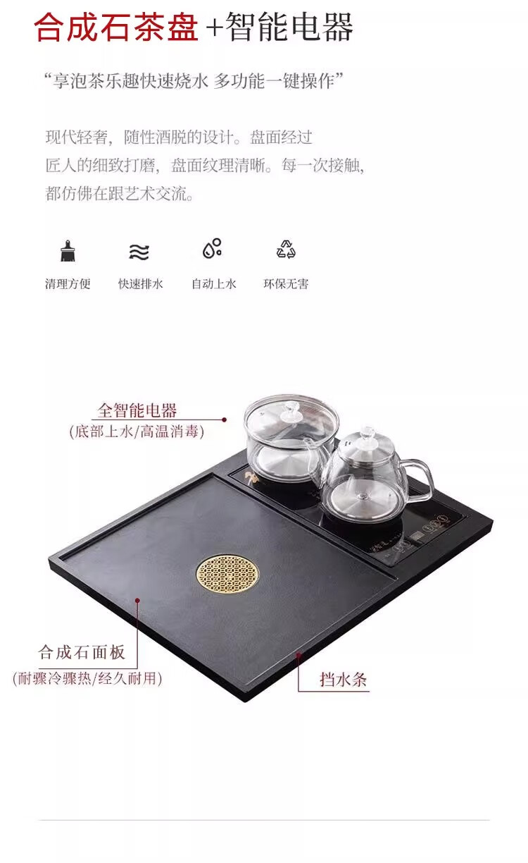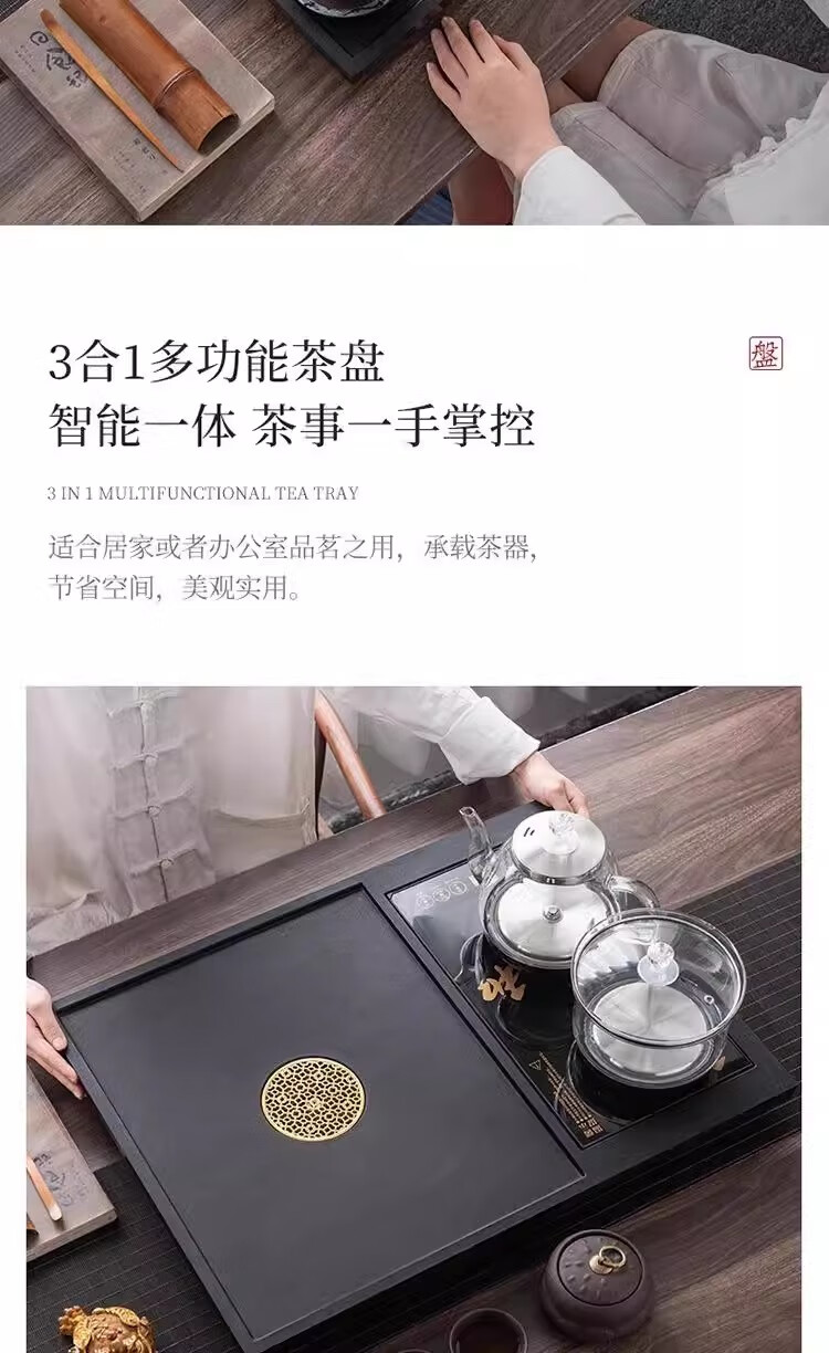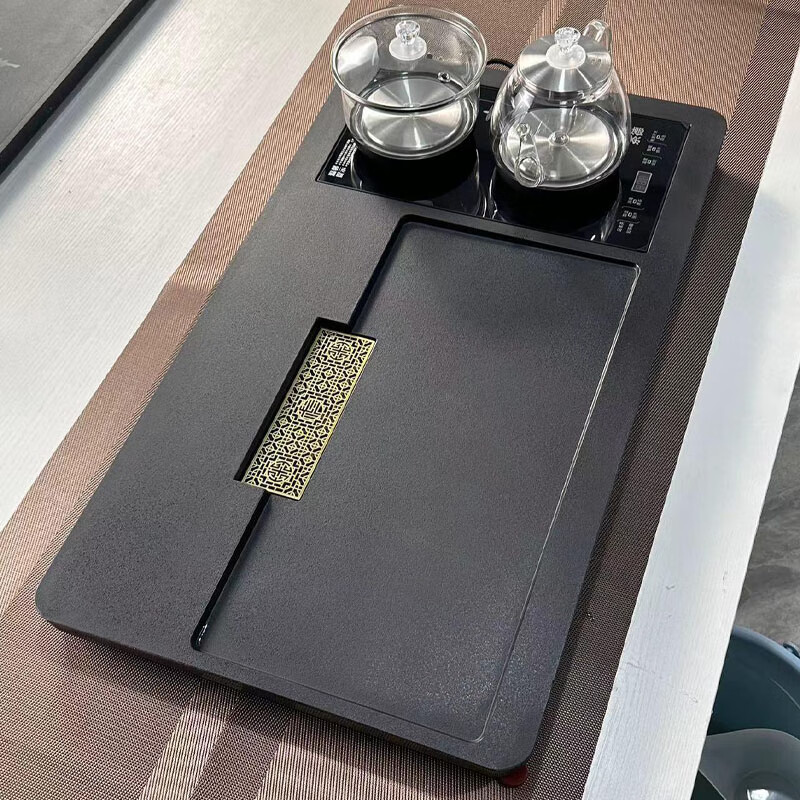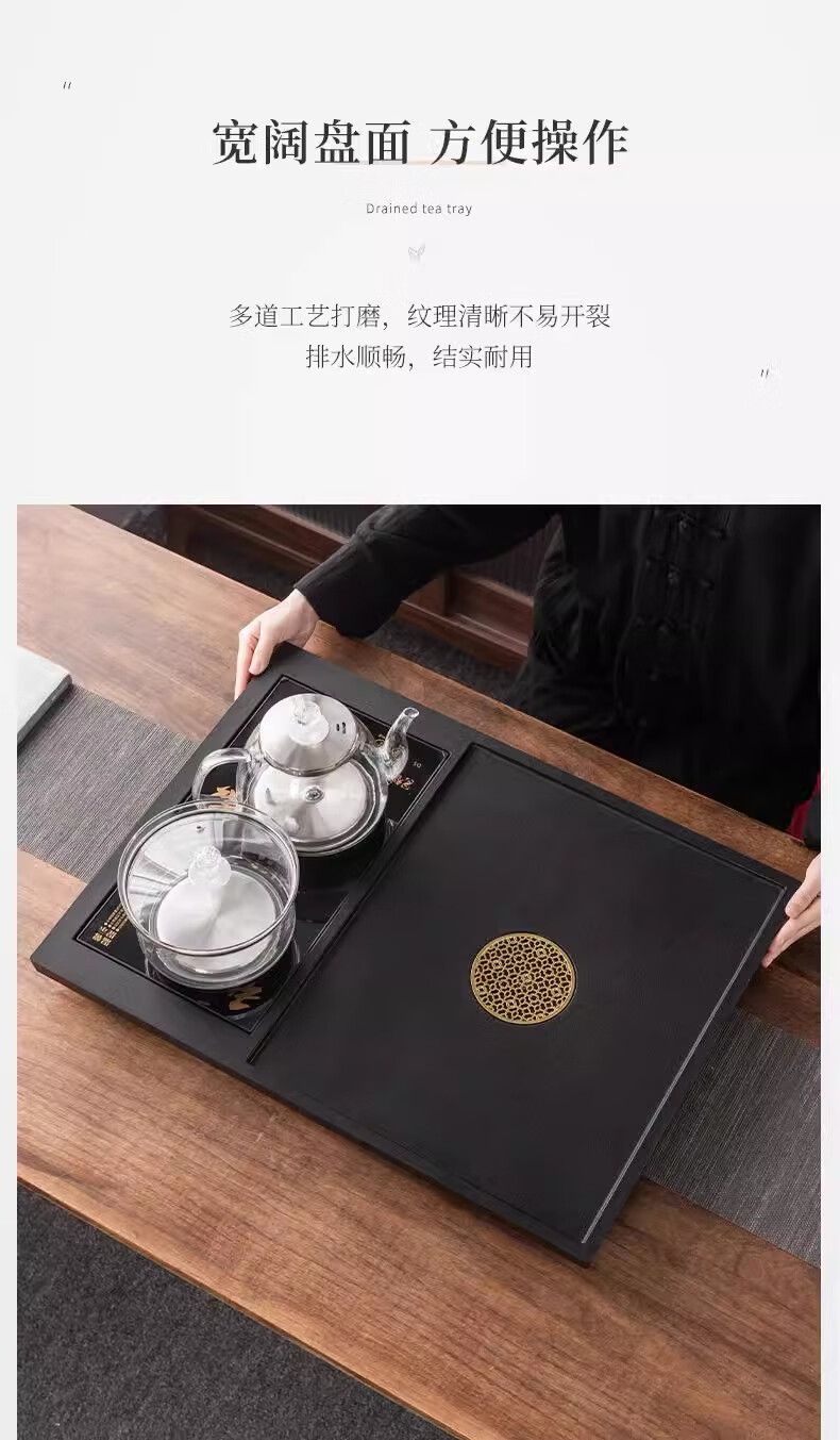 Synthetic black gold stone tea tray, household tea table, kettle, one-piece office fully automatic set, one-piece stone tea tray, 80*45 length + bottom water glass furnace (one piece)