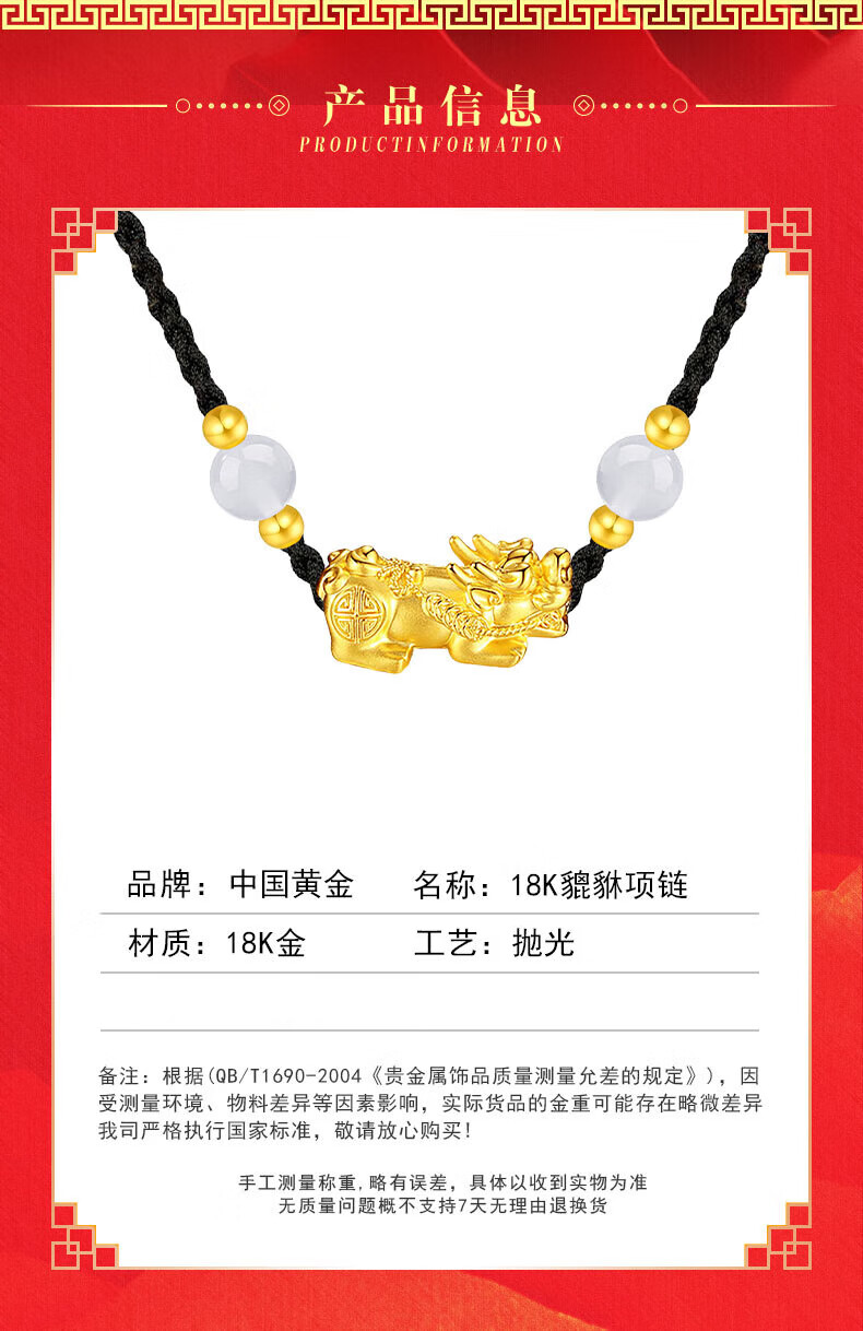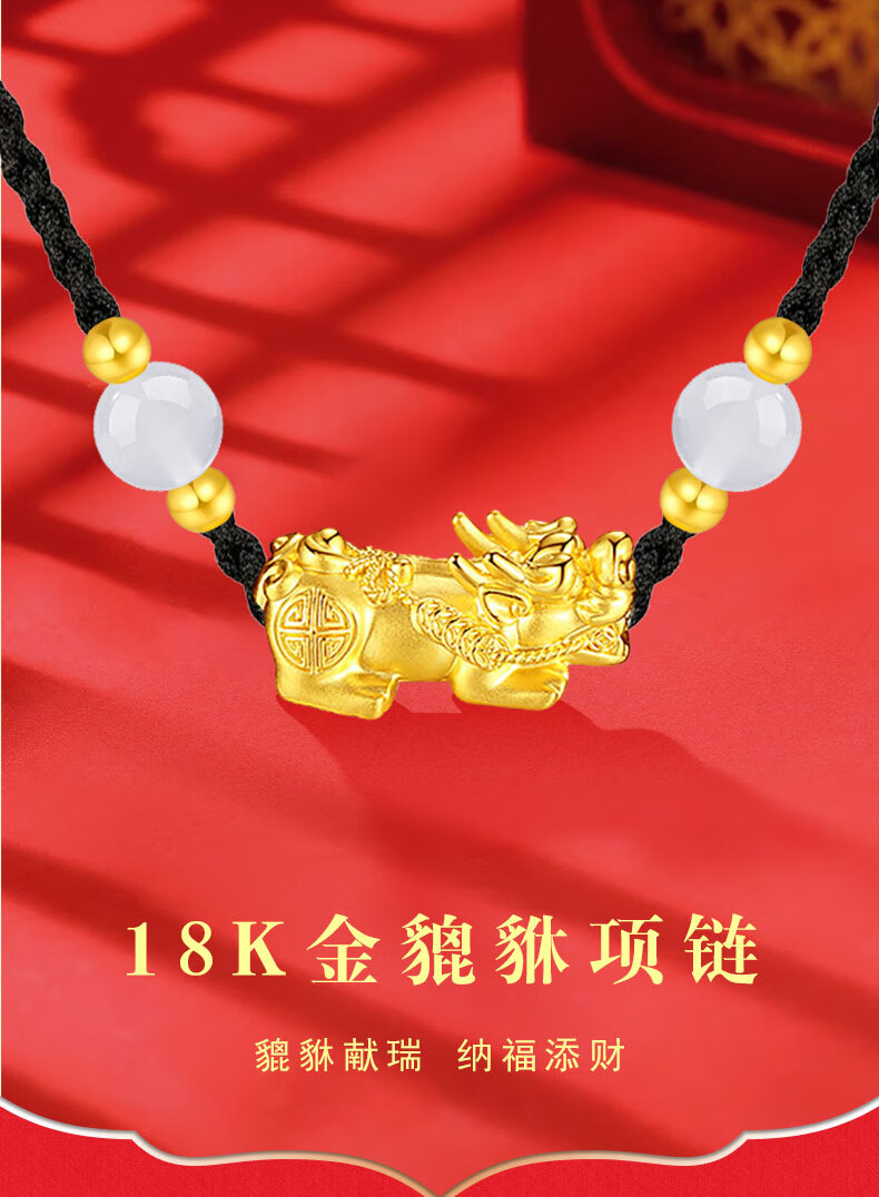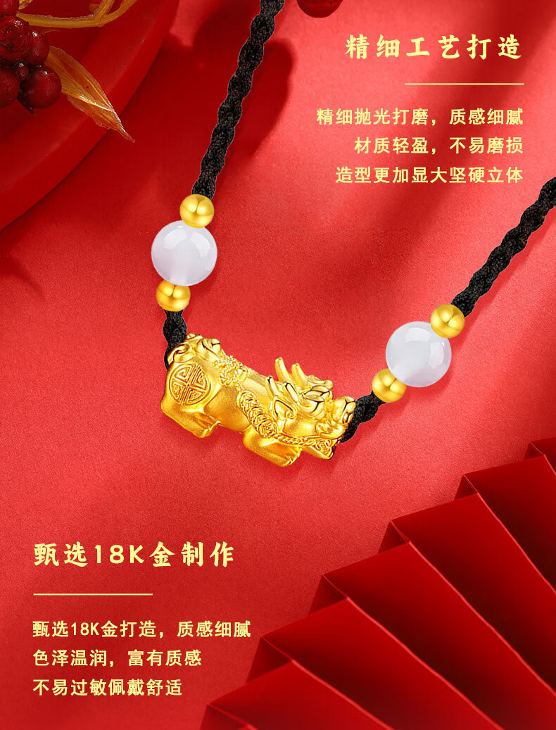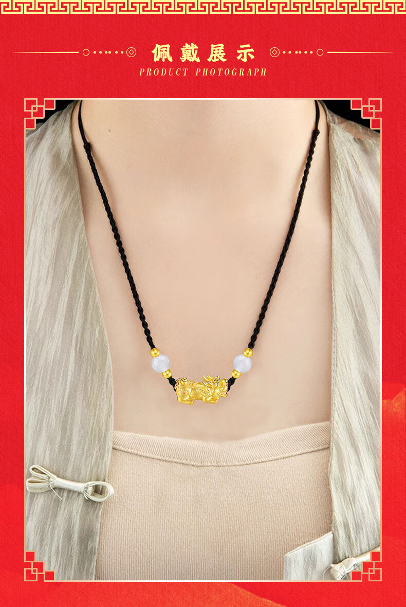 CHINA GOLD 18K gold necklace for women, three-dimensional and versatile, classic Pixiu pendant, Valentine's Day birthday gift for girlfriend and lover, 18K Pixiu necklace, black rope