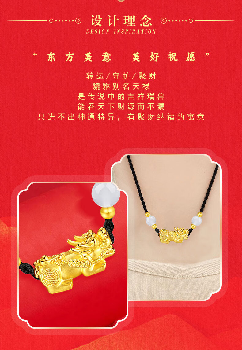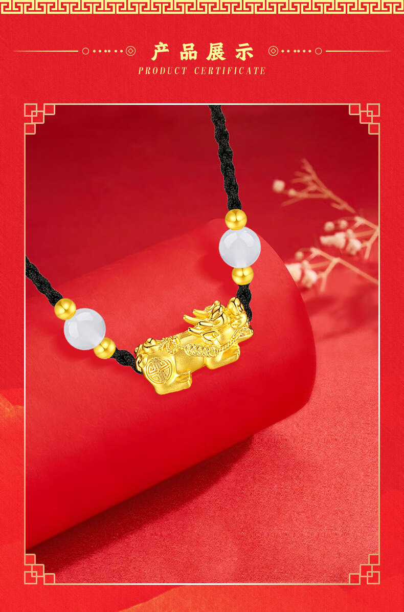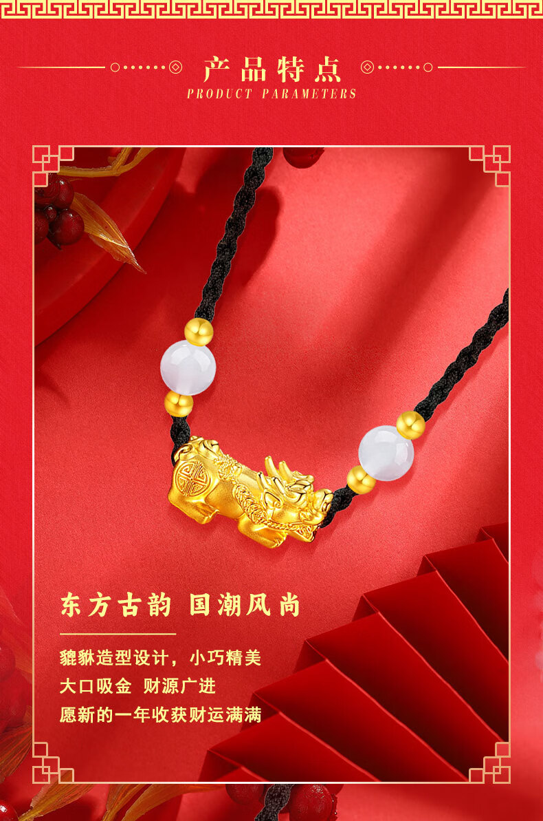 CHINA GOLD 18K gold necklace for women, three-dimensional and versatile, classic Pixiu pendant, Valentine's Day birthday gift for girlfriend and lover, 18K Pixiu necklace, black rope