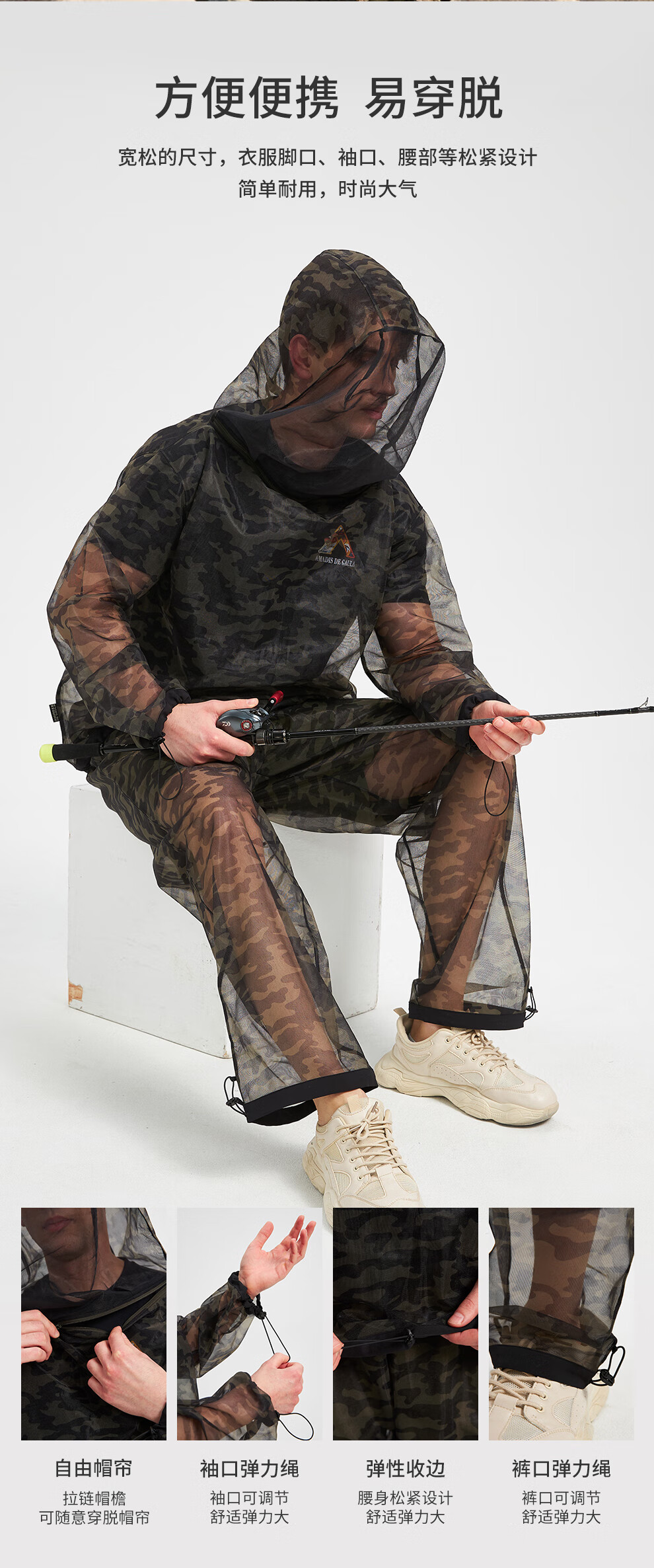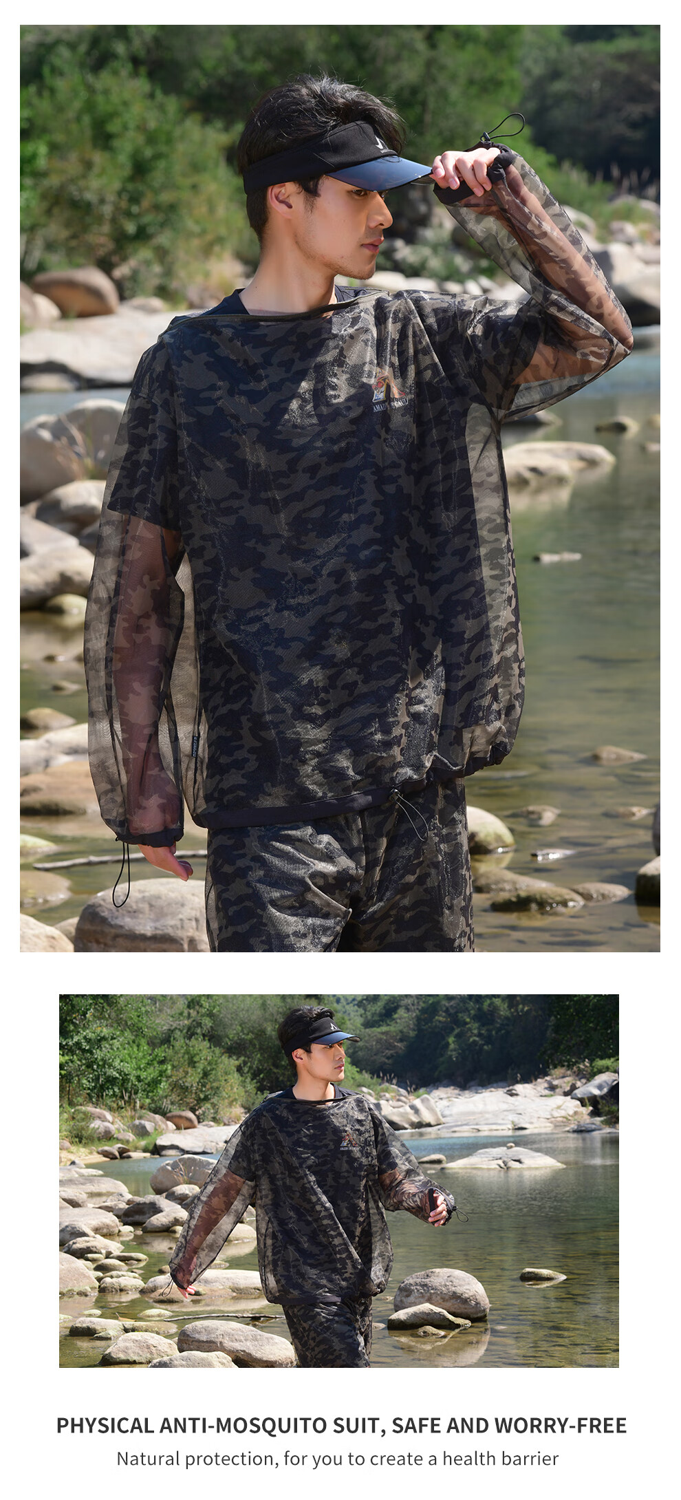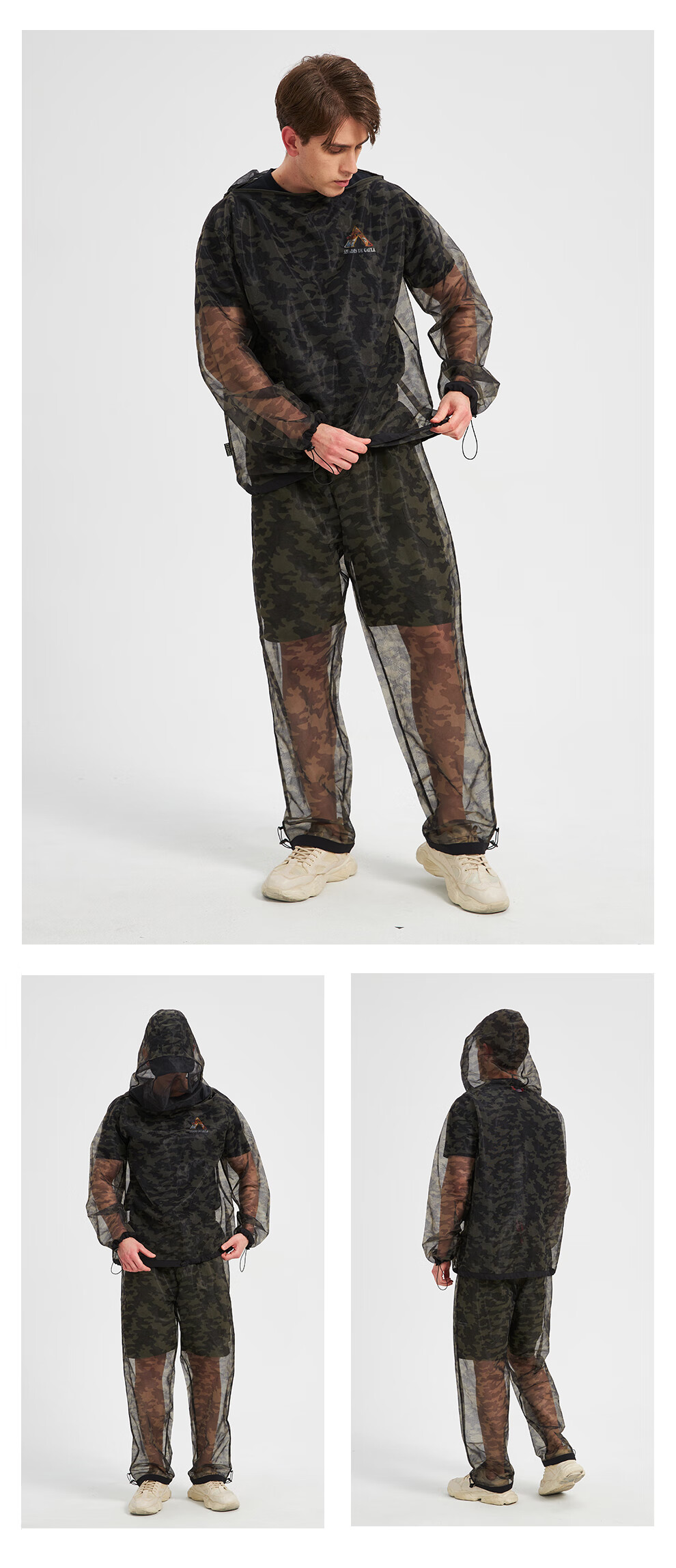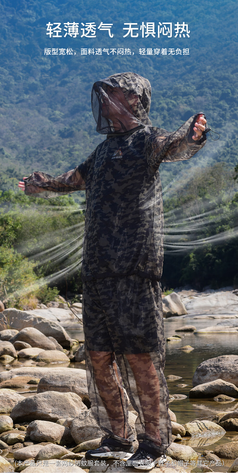 He Jian Gong mesh anti-mosquito suit for men's summer night fishing hollow quick-drying breathable pants hooded insect-proof suit green camouflage (physical anti-mosquito) M