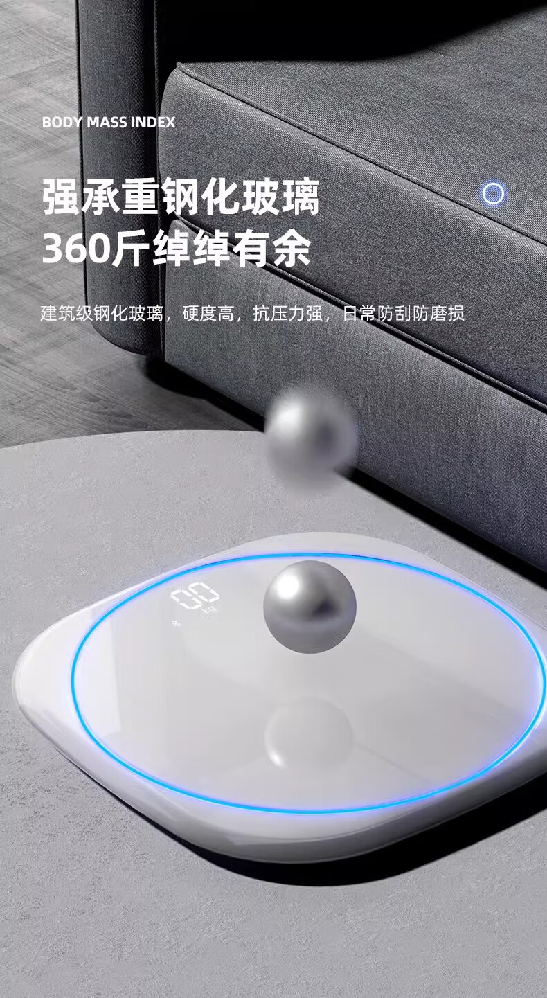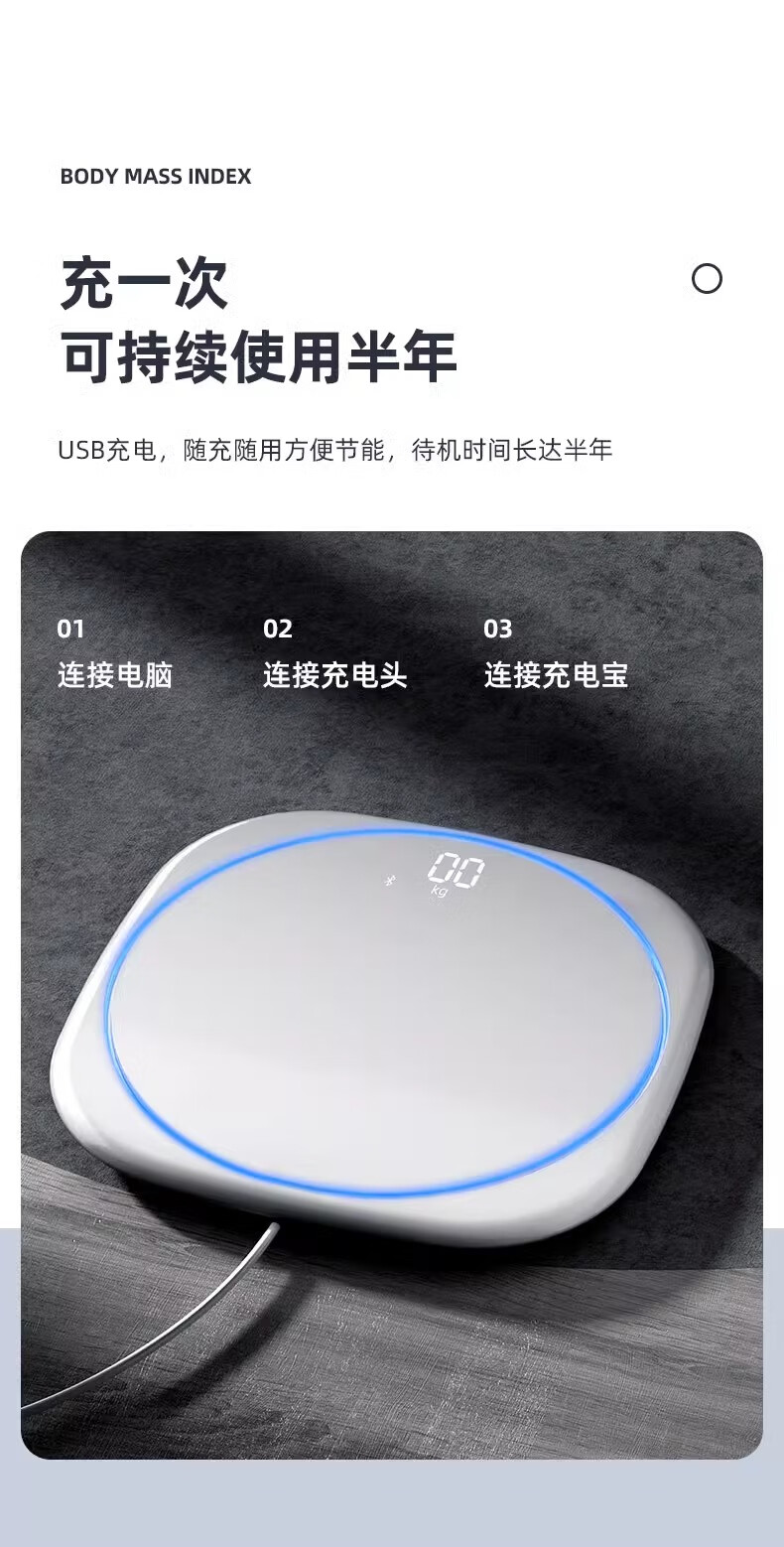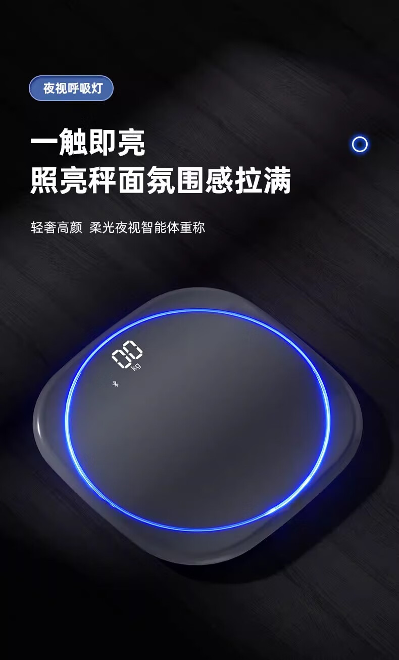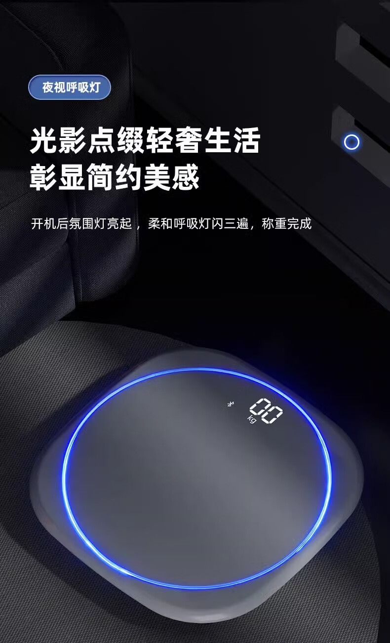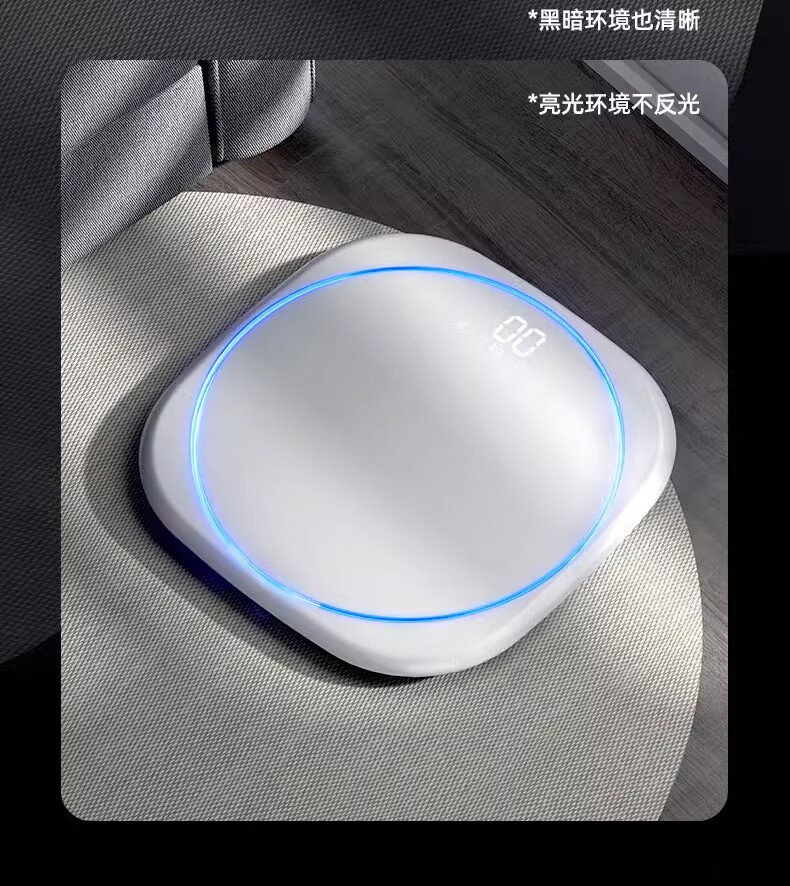 Body weight scale, household small high-precision electronic scale, rechargeable weight loss, human body weight scale, home scale with ambient light, super beautiful weight scale, pearl white - advanced invisible screen weight scale, rechargeable version - with ring light