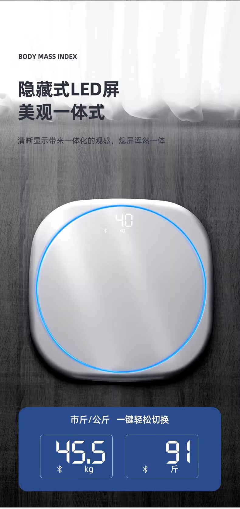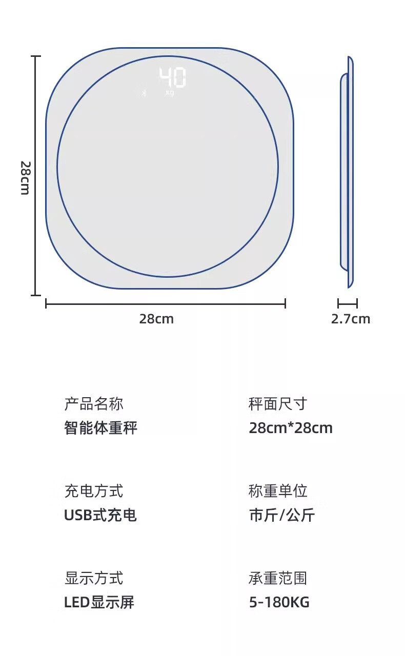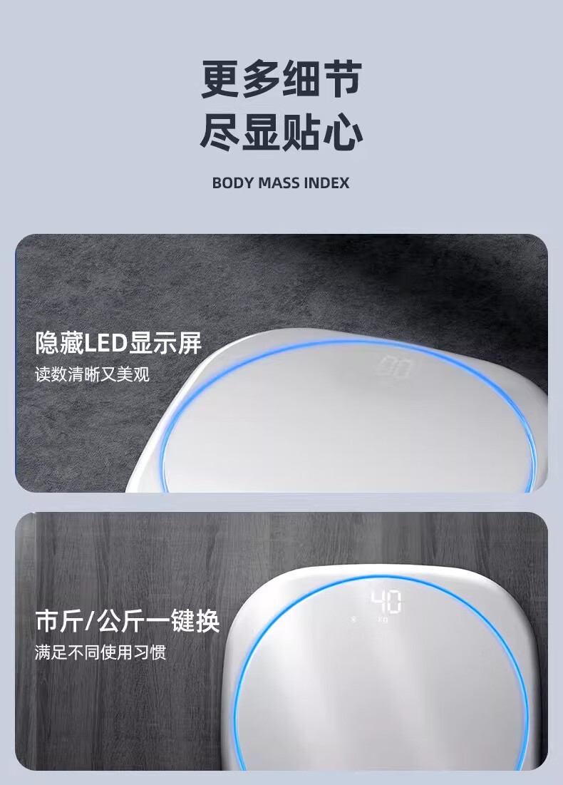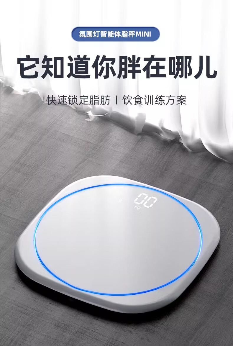 Body weight scale, household small high-precision electronic scale, rechargeable weight loss, human body weight scale, home scale with ambient light, super beautiful weight scale, pearl white - advanced invisible screen weight scale, rechargeable version - with ring light