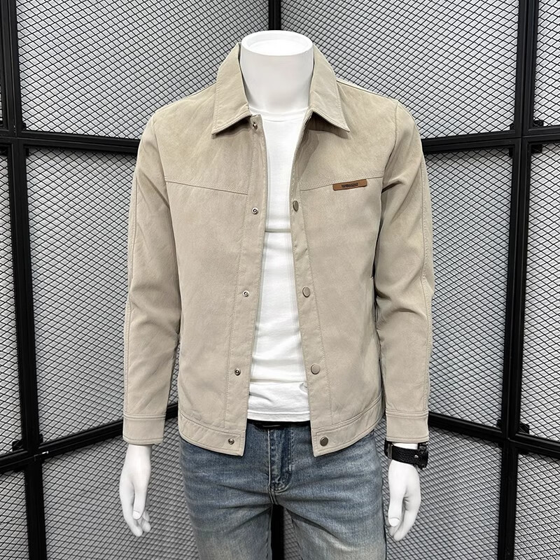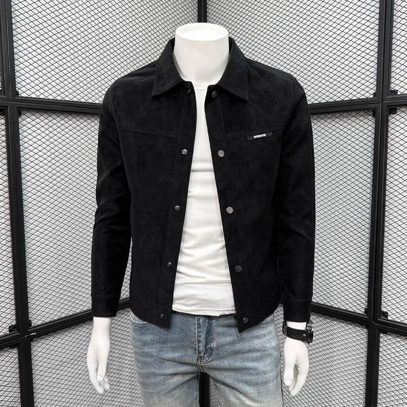ROMON 2025 new spring and autumn jacket men's handsome trendy lapel imitation suede autumn top men's trendy jacket black M (recommended 90-110Jin Jin equals 0.5 kg)