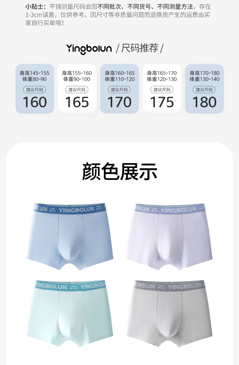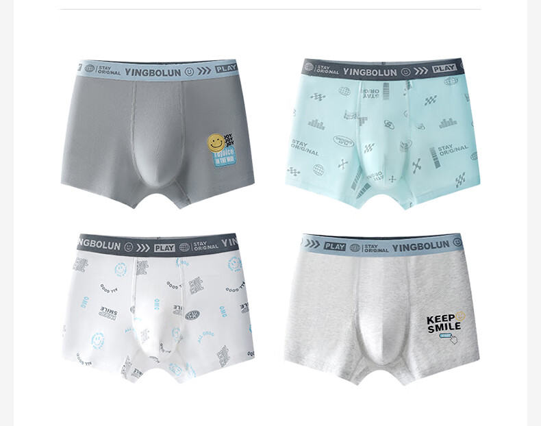 Yingbolun youth underwear male development period student pure cotton boxer briefs boxer briefs junior high school students older children's shorts 10801 underwear 4 pairs 170