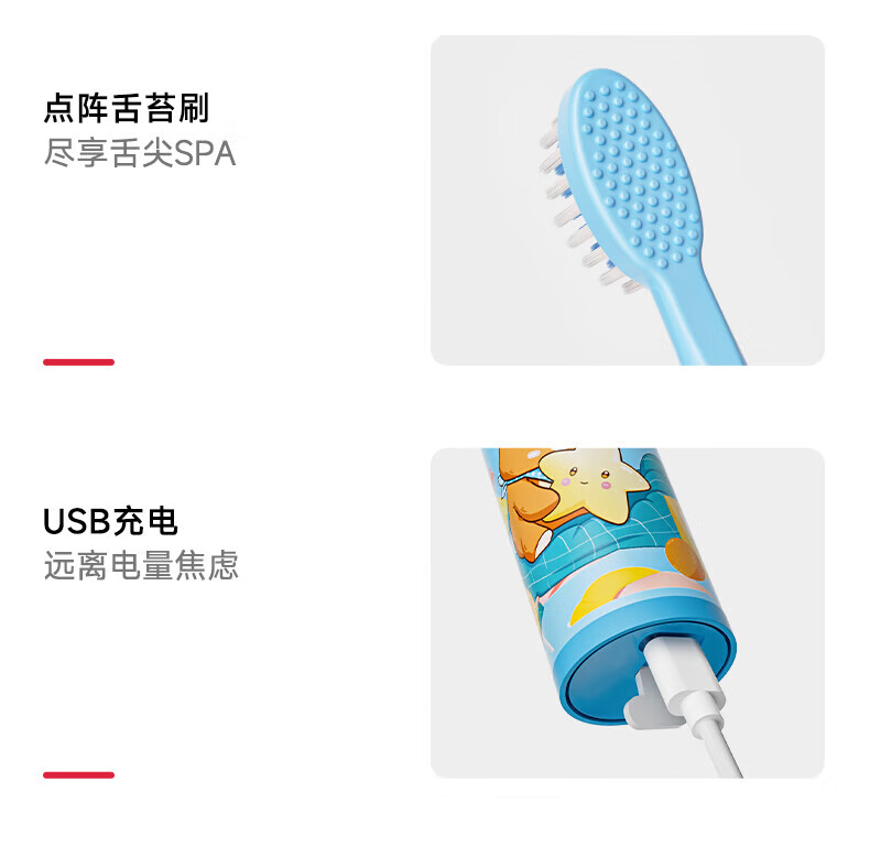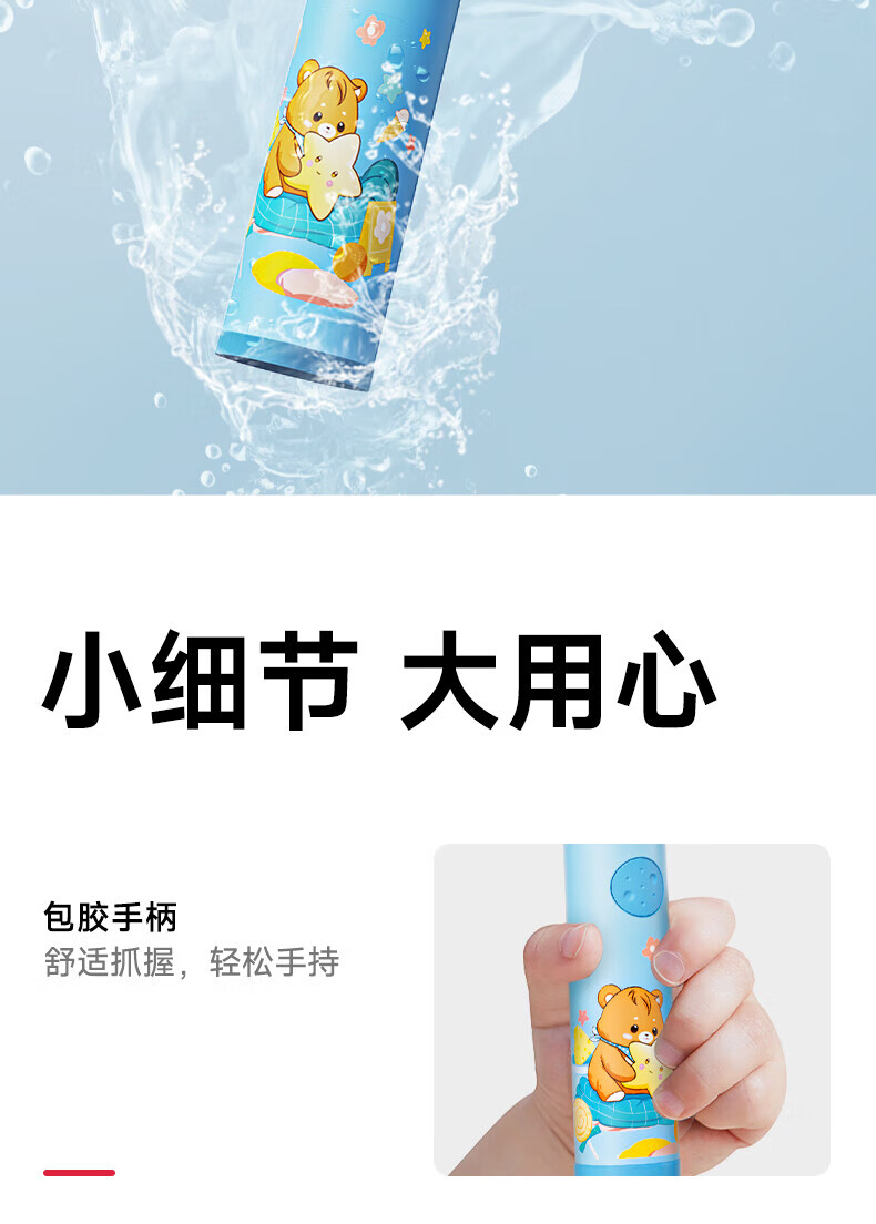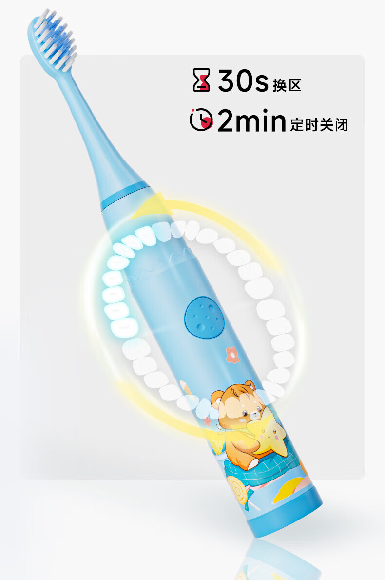 Xiaomi Wolf Sonic Children's Electric Toothbrush 3-6-12-15 Years Old Home Rechargeable Full Body Washable Fine Soft Bristle Brush Head Toothbrush Extra Long Life Deep Cleaning Gum Protection Anti-moth and Stain Removal Rechargeable 3 Brush Heads Mingdong Green 3-12 Years Old