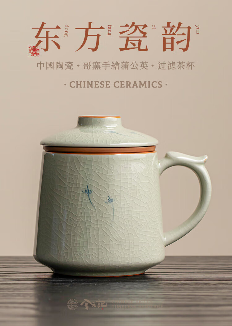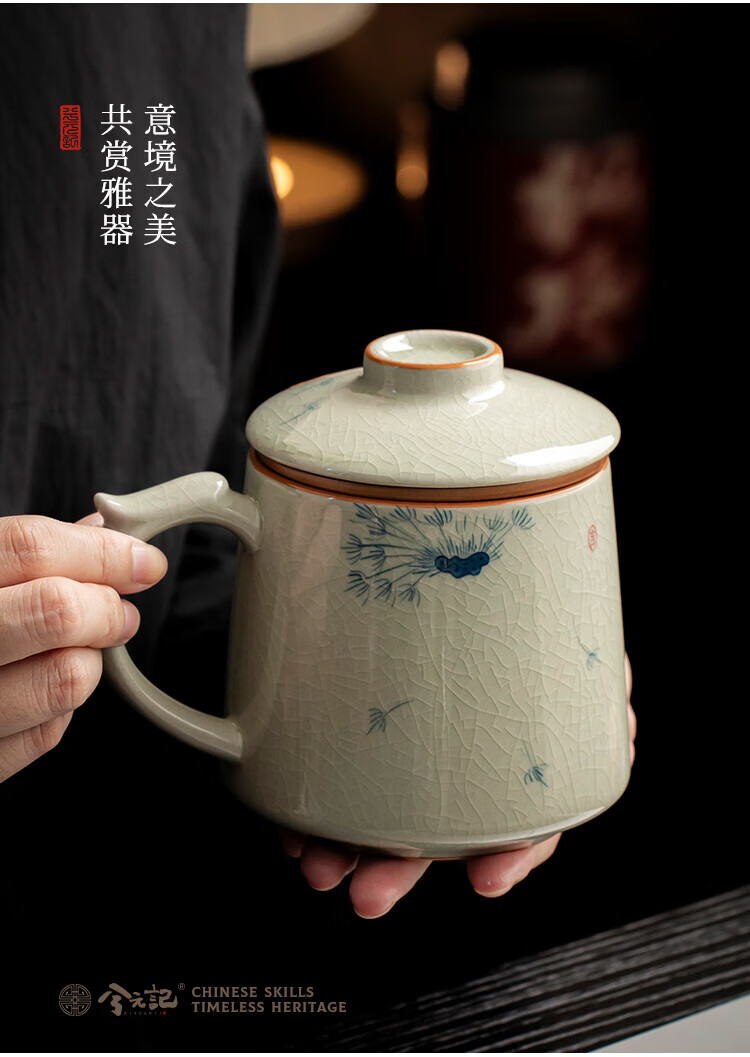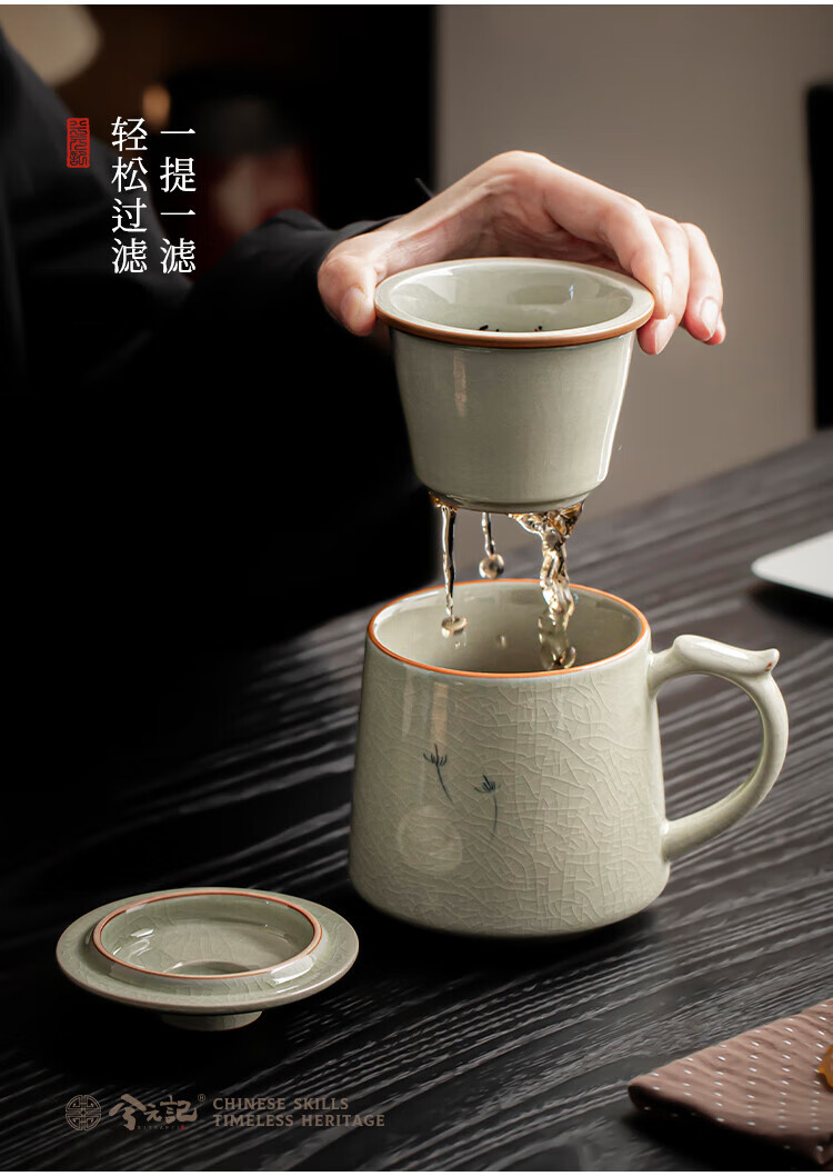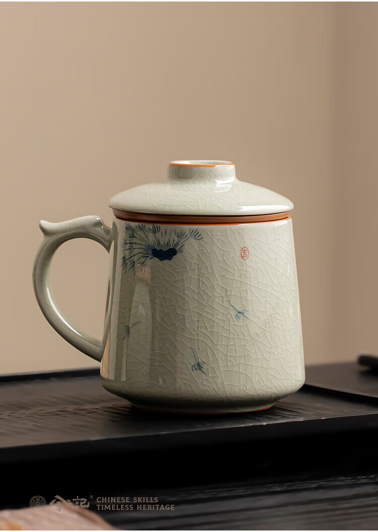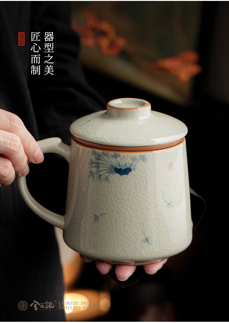 Xiyuanji Ge Kiln hand-painted tea cup ceramic tea separation cup office filter tea cup water cup male and female cup with lid Ge Kiln hand-painted dandelion Qingfeng filter tea cup simple decoration