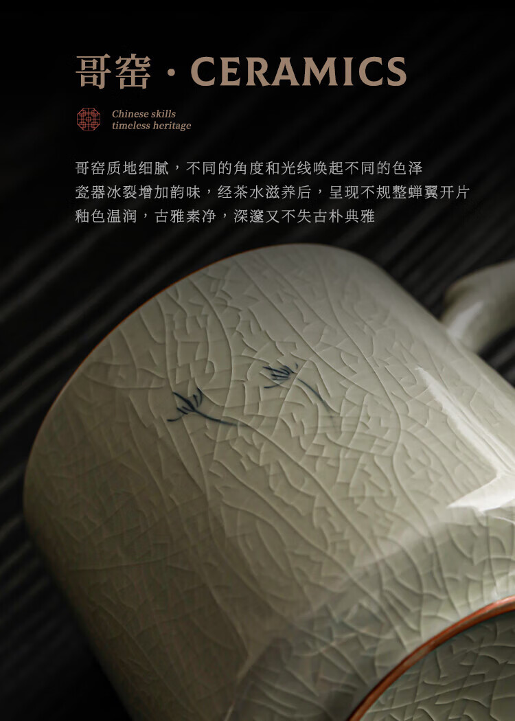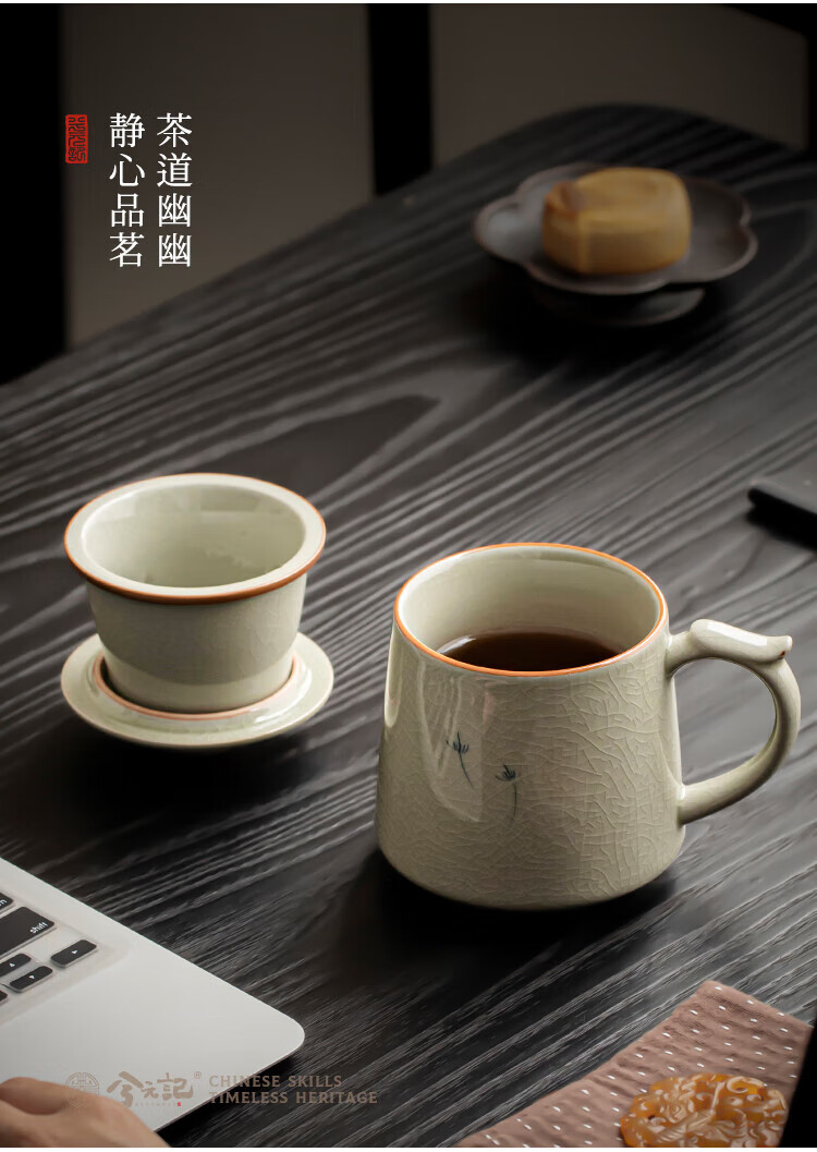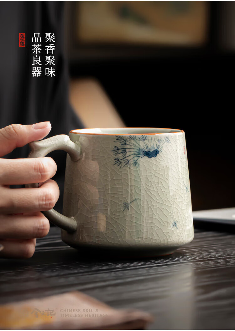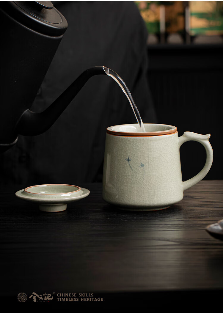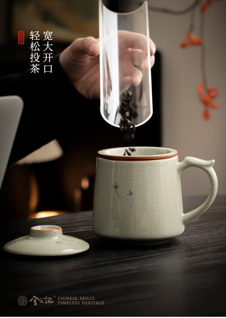 Xiyuanji Ge Kiln hand-painted tea cup ceramic tea separation cup office filter tea cup water cup male and female cup with lid Ge Kiln hand-painted dandelion Qingfeng filter tea cup simple decoration