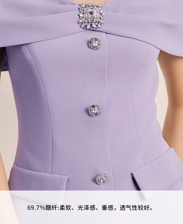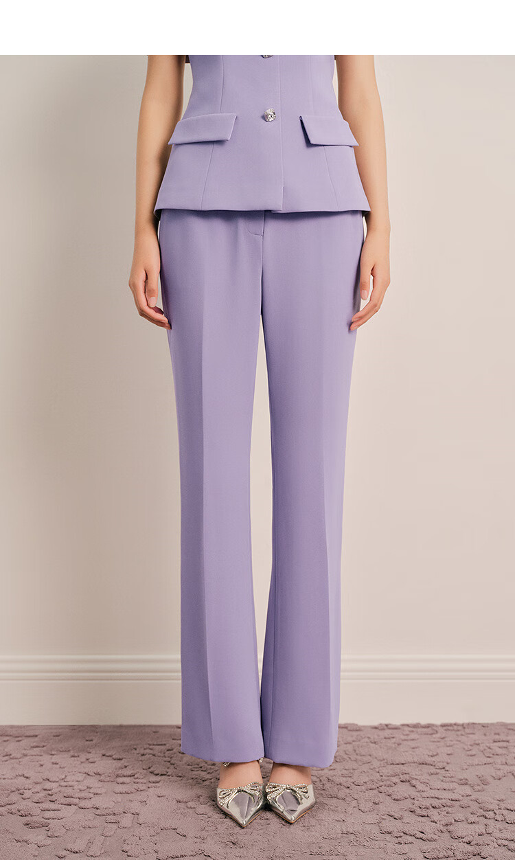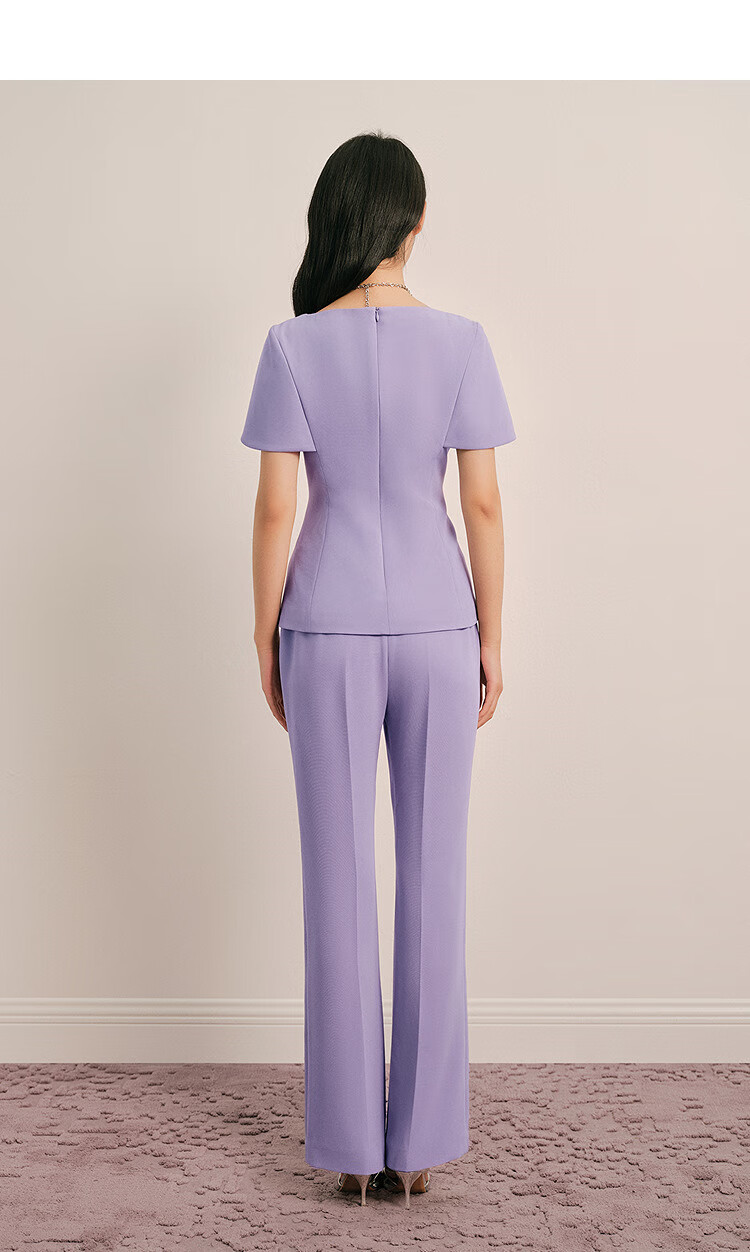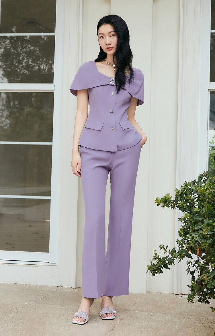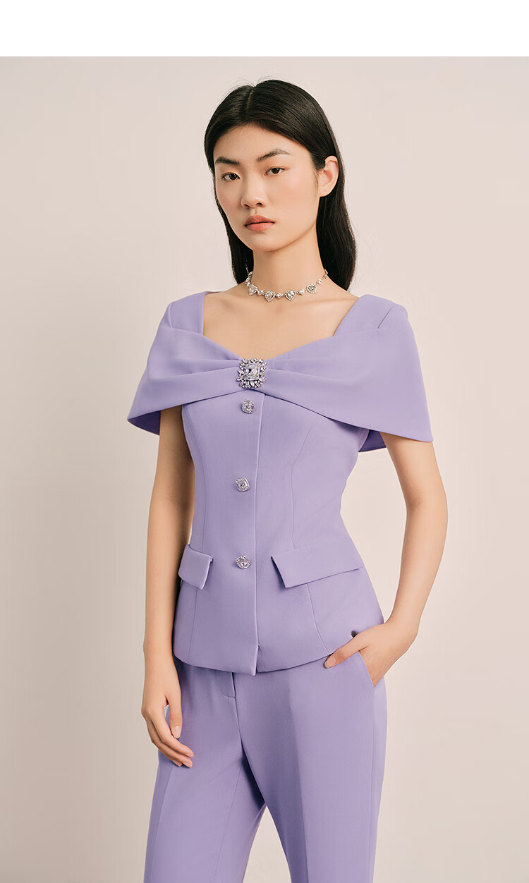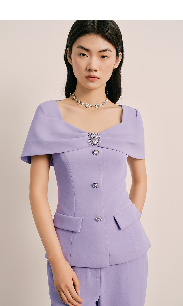 OBBLIGATO Summer Special Sweetheart Neck Diamond Button One-piece Cap Sleeve Design Top Taro Purple Women's Pants S