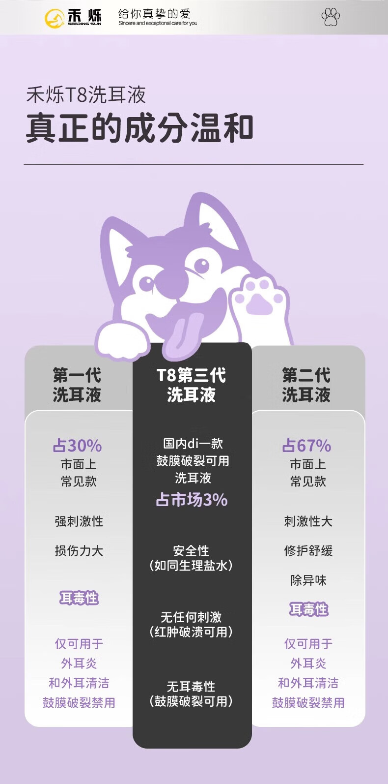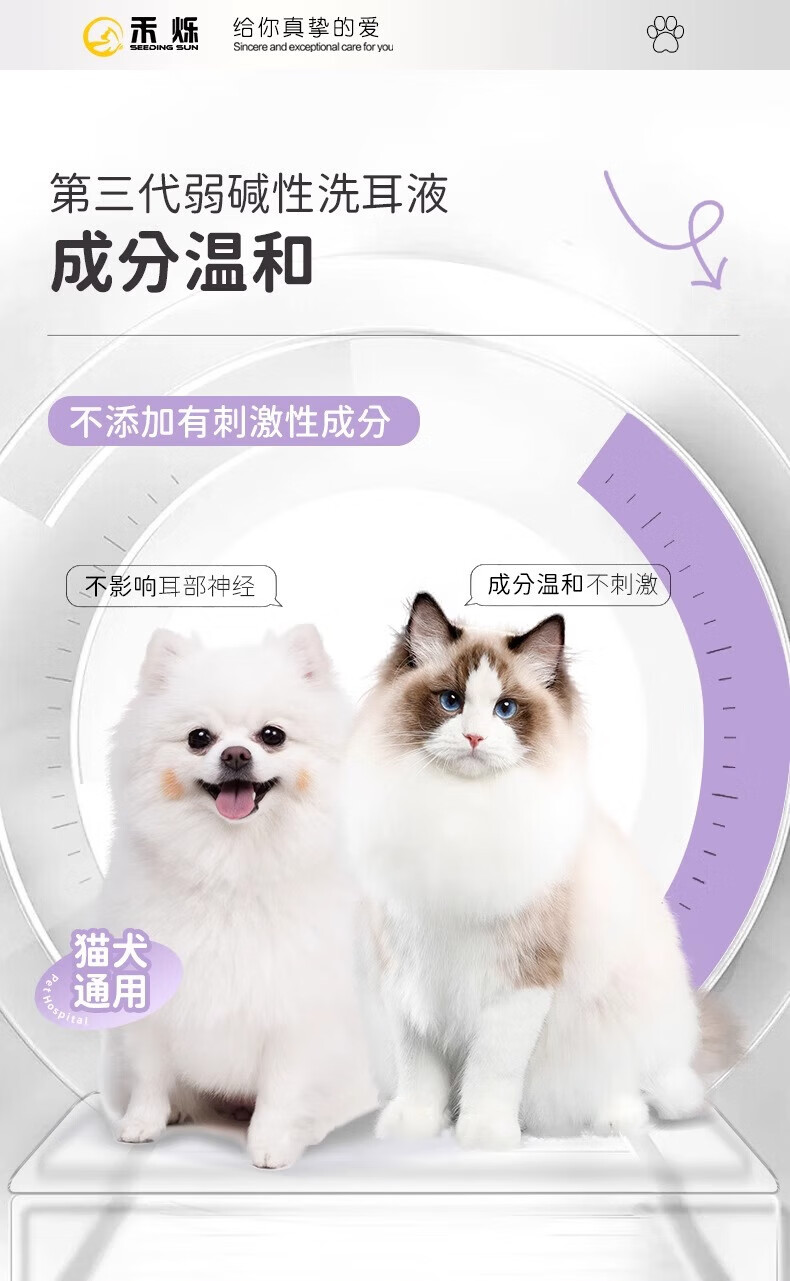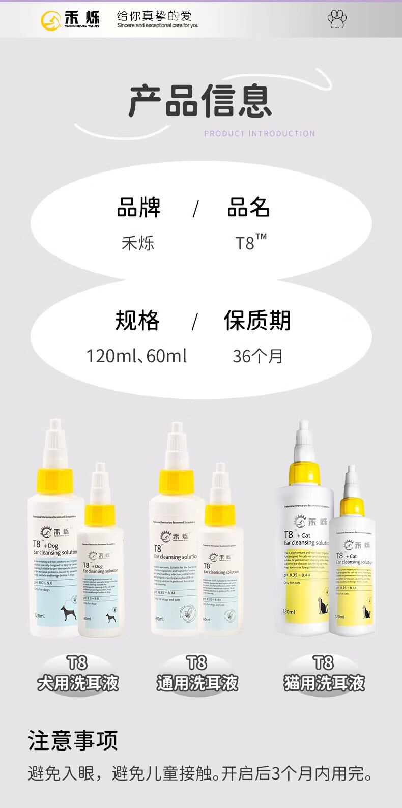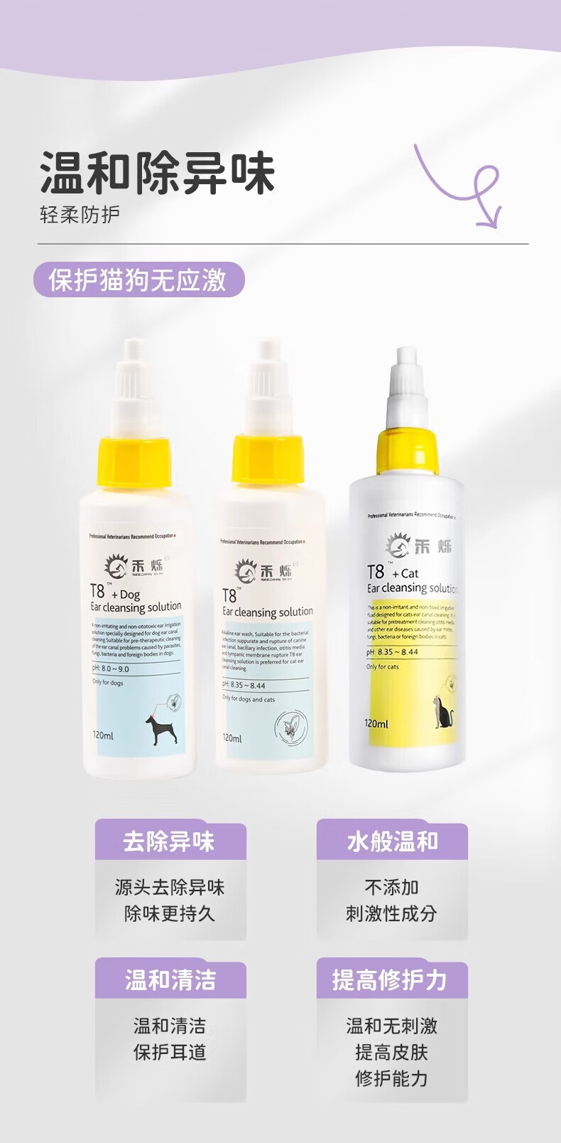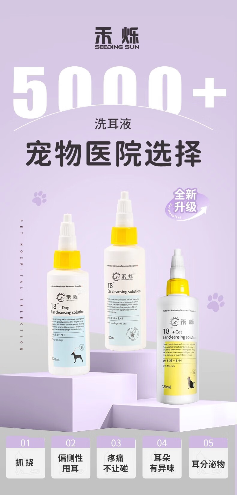 SEEDING SUN Officially Authorized Heshuo T8 Ear Cleansing Liquid Cat and Dog Ear Drops Softening Ears Pet Ear Canal Cleaning Special for Dogs Heshuo T8 120ml