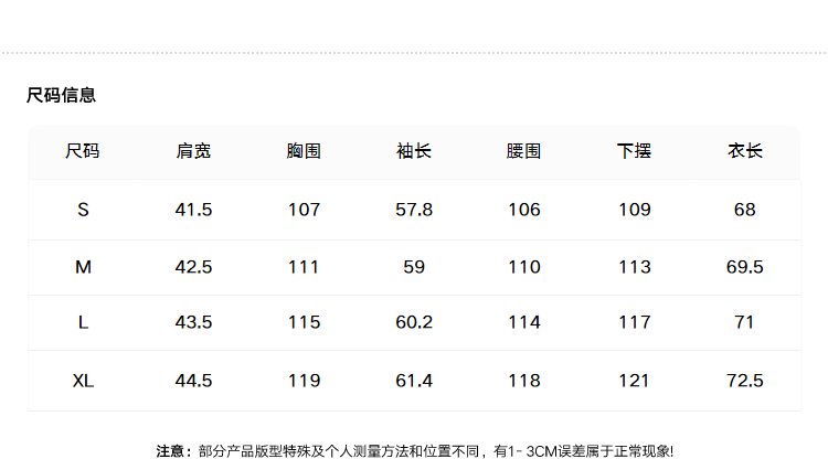 Size (cm) 42 44 46 48 50