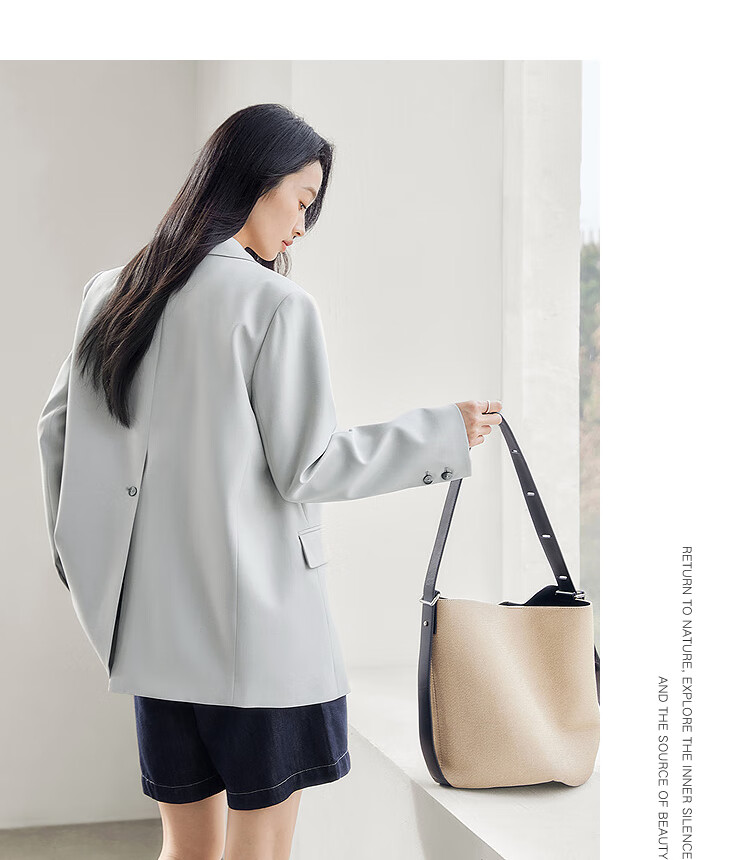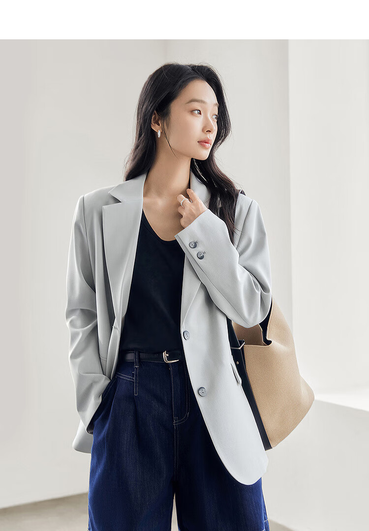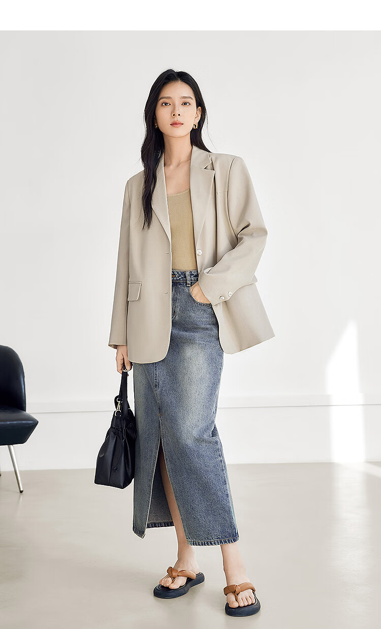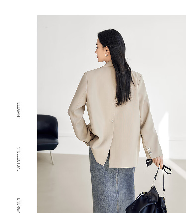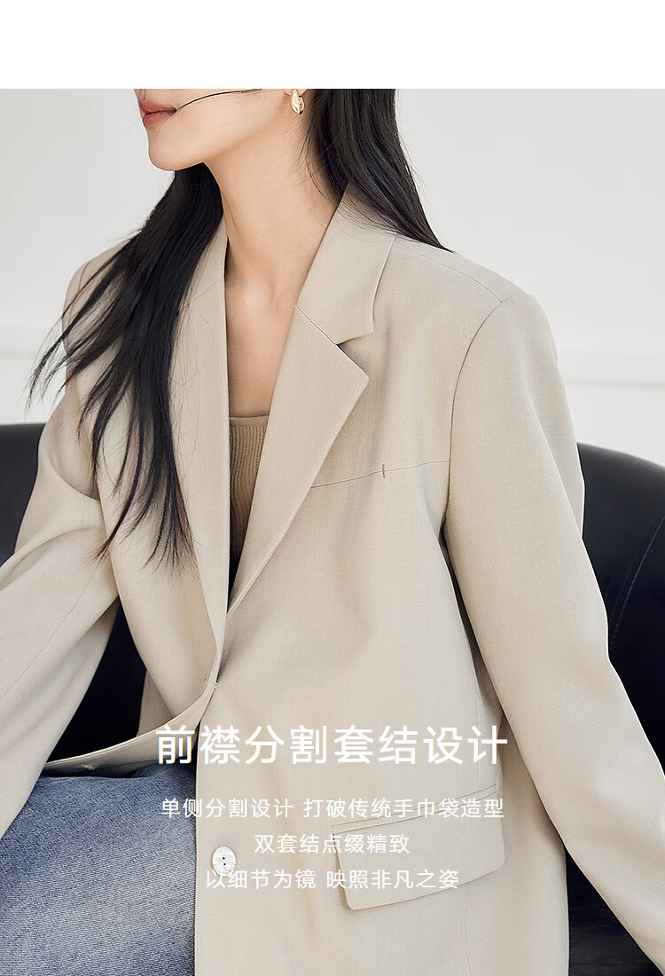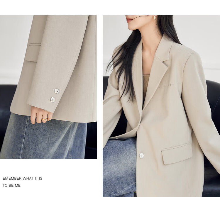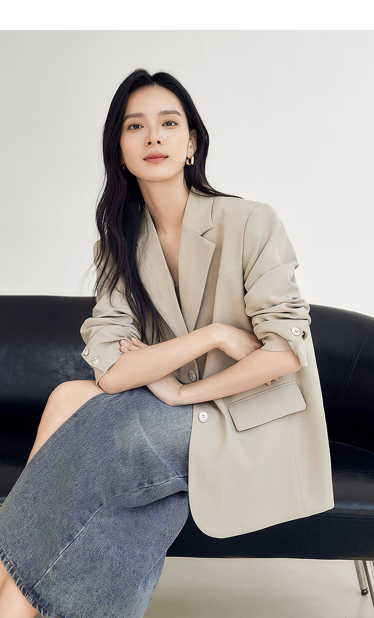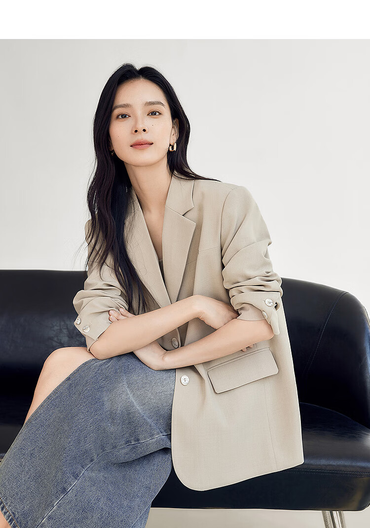 Dialogue (DUIBAI) old money style classic suit jacket for women 2026 spring new style loose H-shaped high-end temperament commuter suit Khaki M
